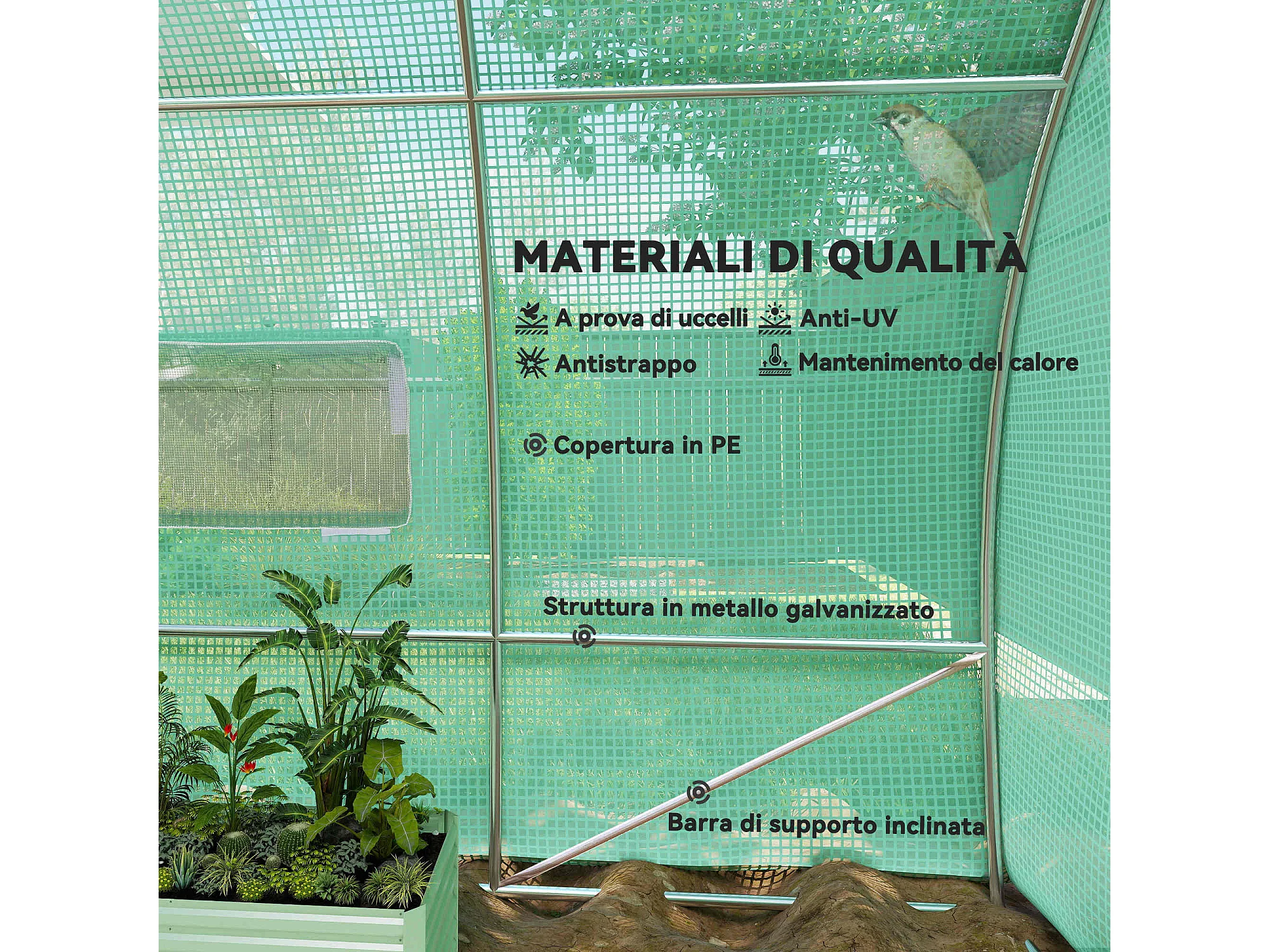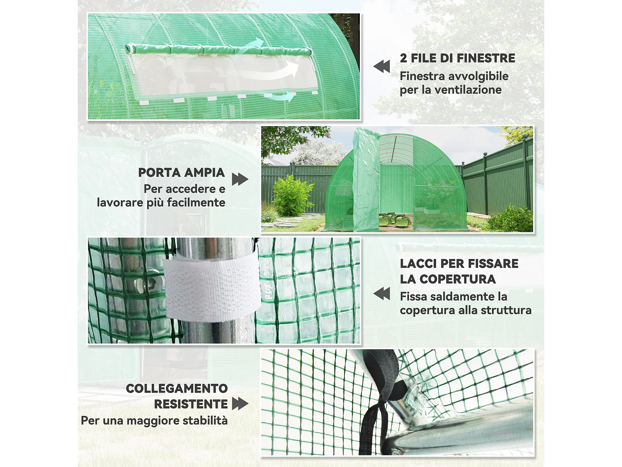 Serra per orto a tunnel 3.5x2x2m 6 finestre e porta con zip