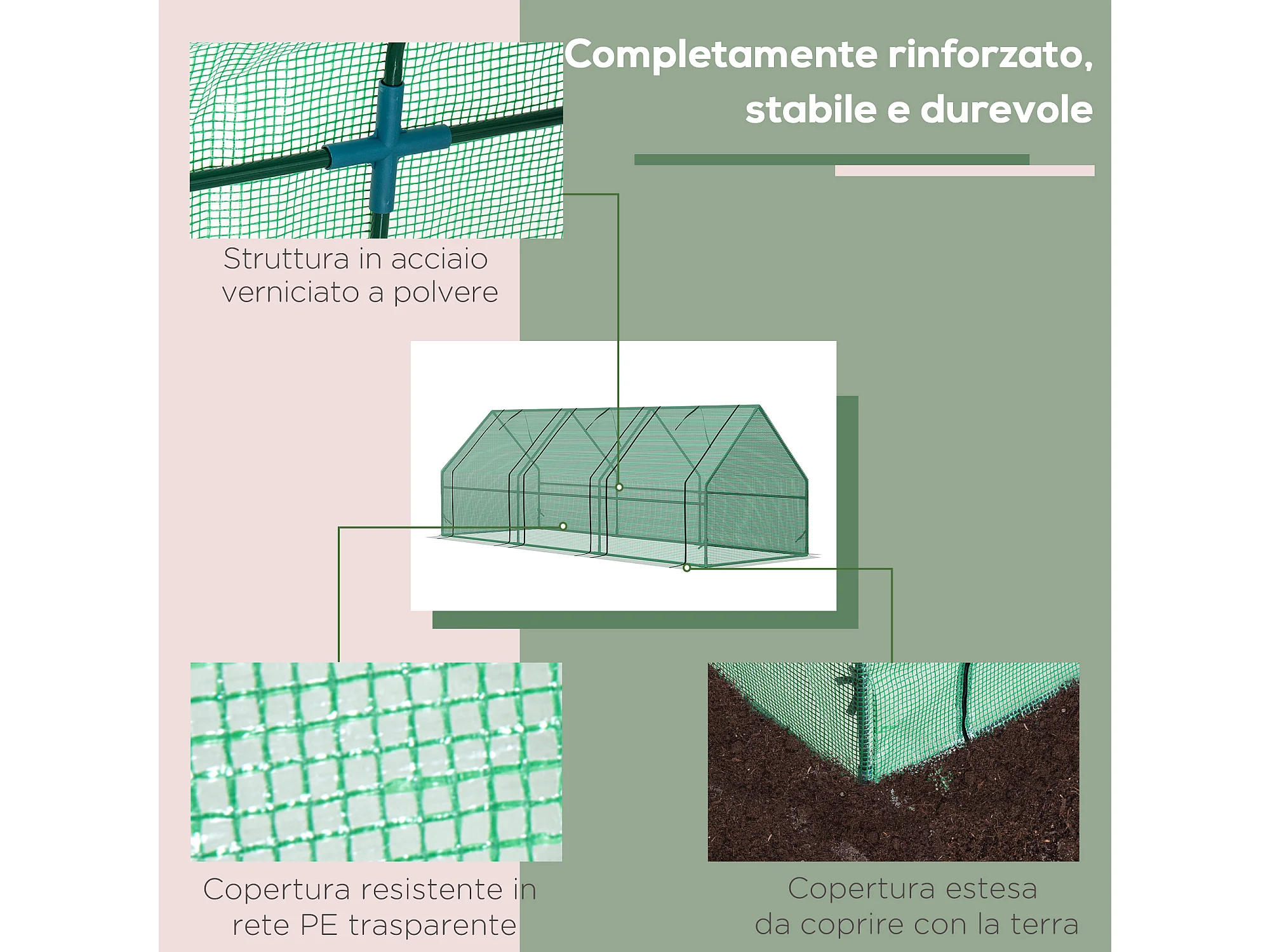 Serra da giardino a tunnel con copertura in plastica pe verde