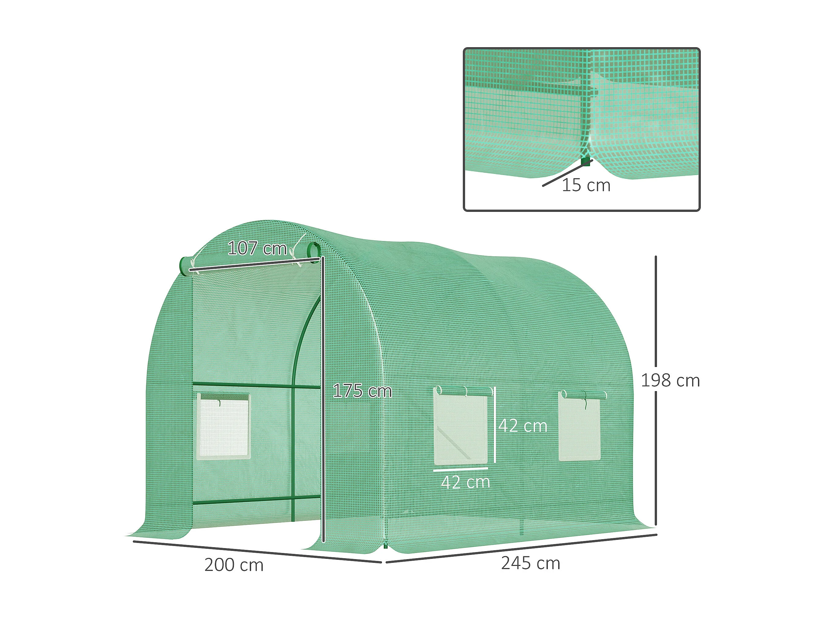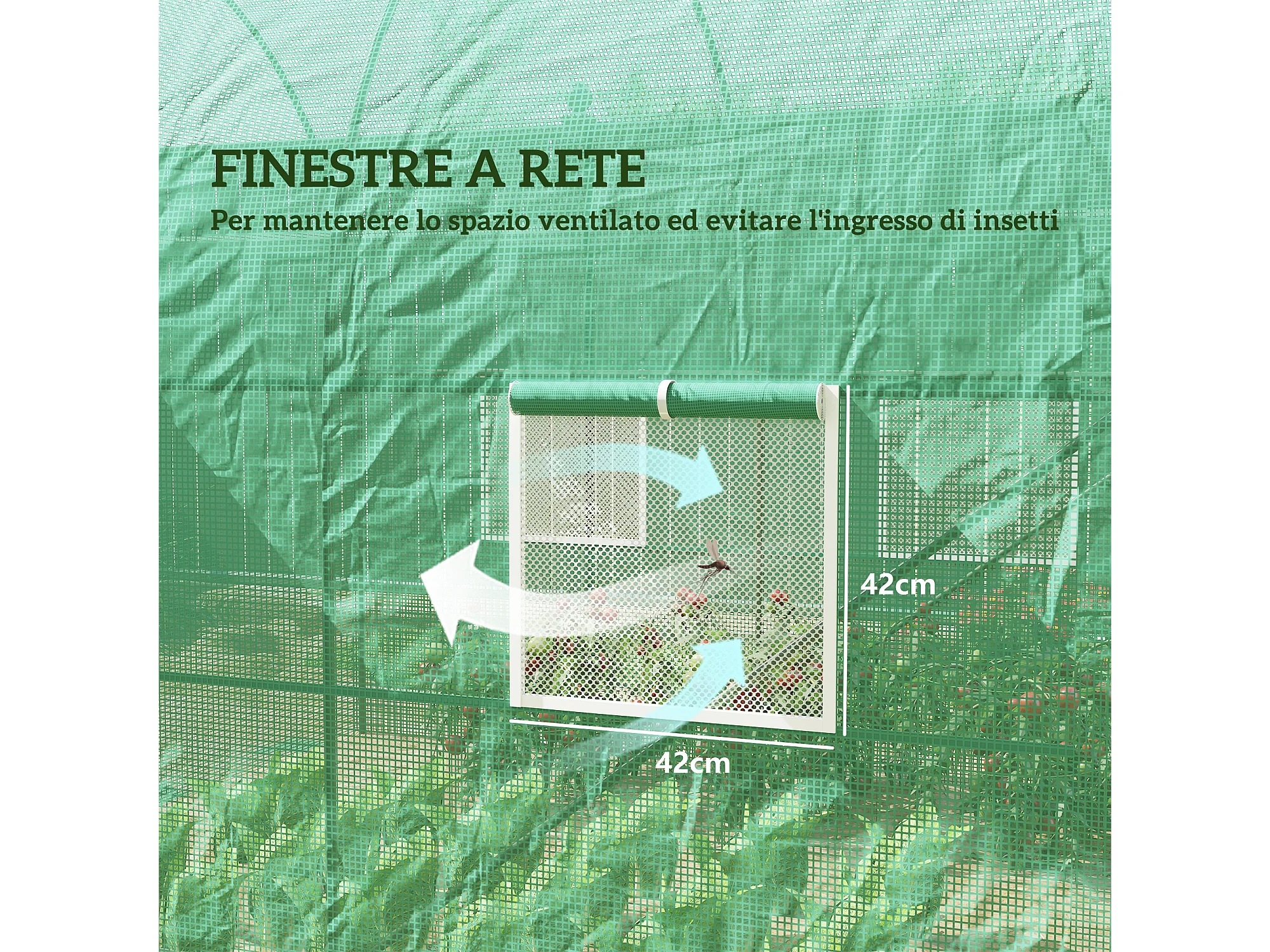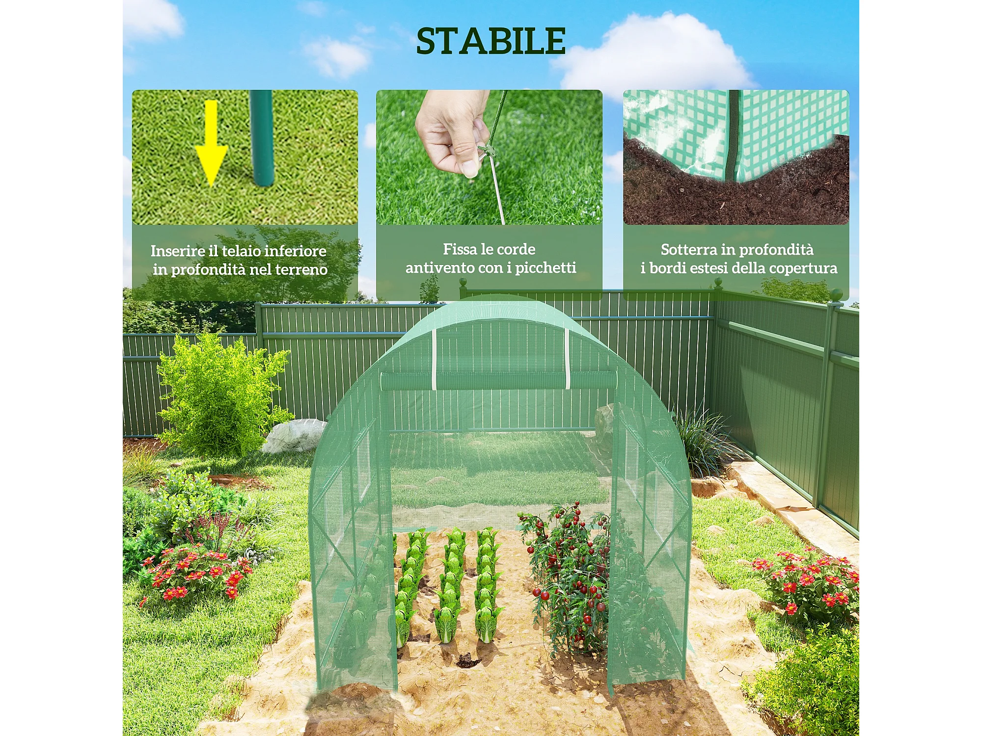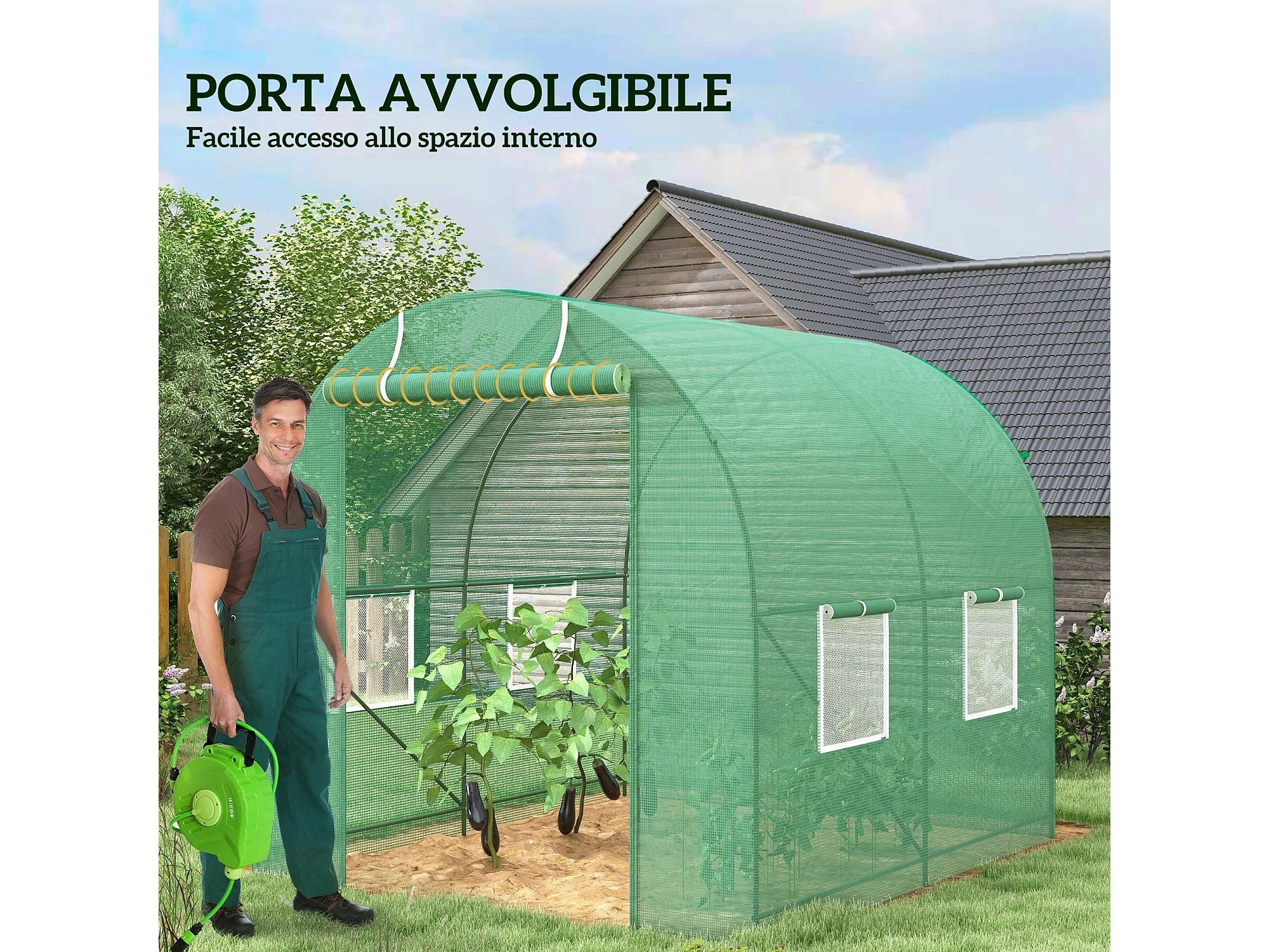 Serra per orto a tunnel 3.5x2x2m 6 finestre e porta con zip
