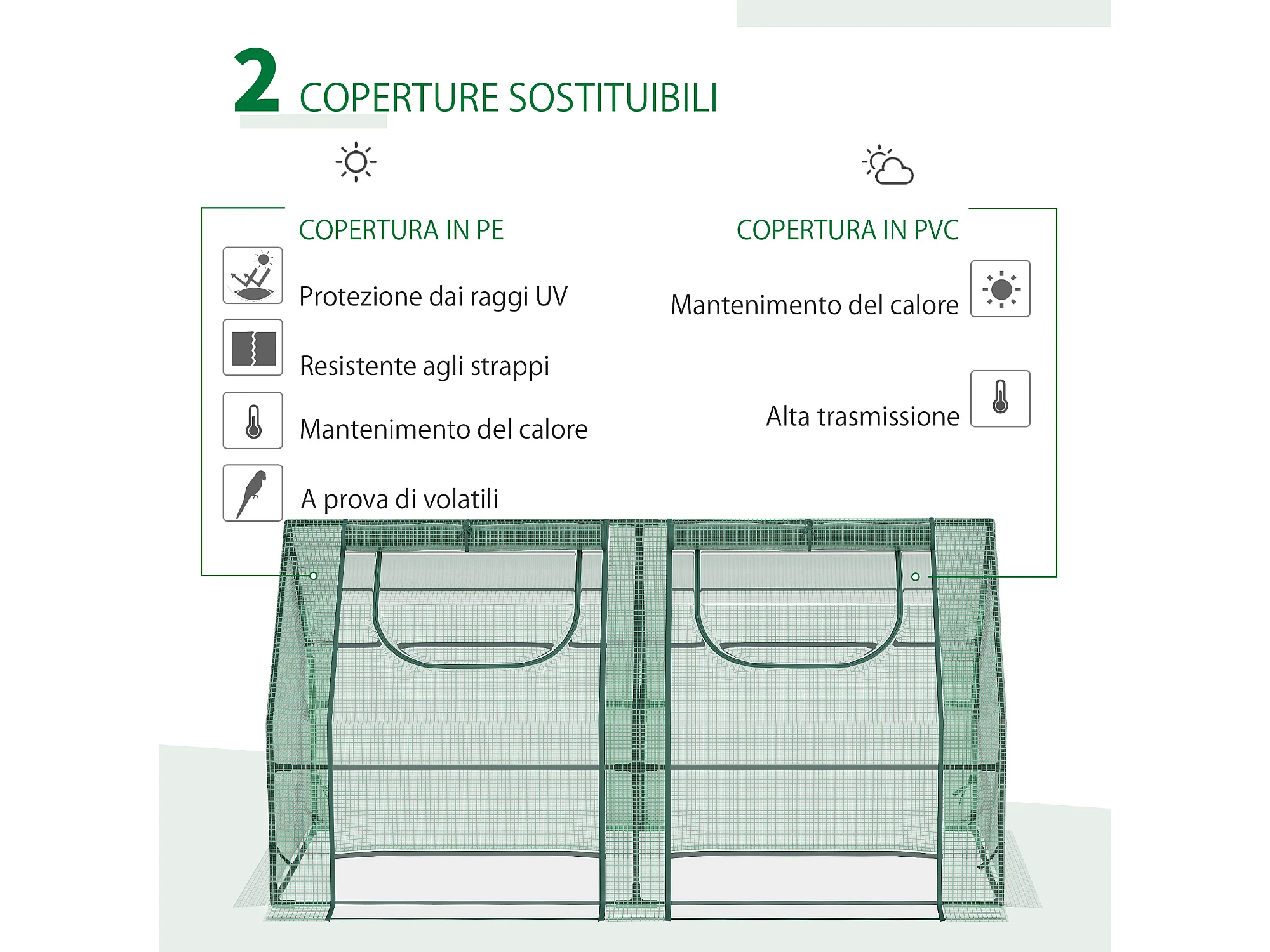 Serra da giardino con 2 coperture in pe e 4 finestre avvolgibili