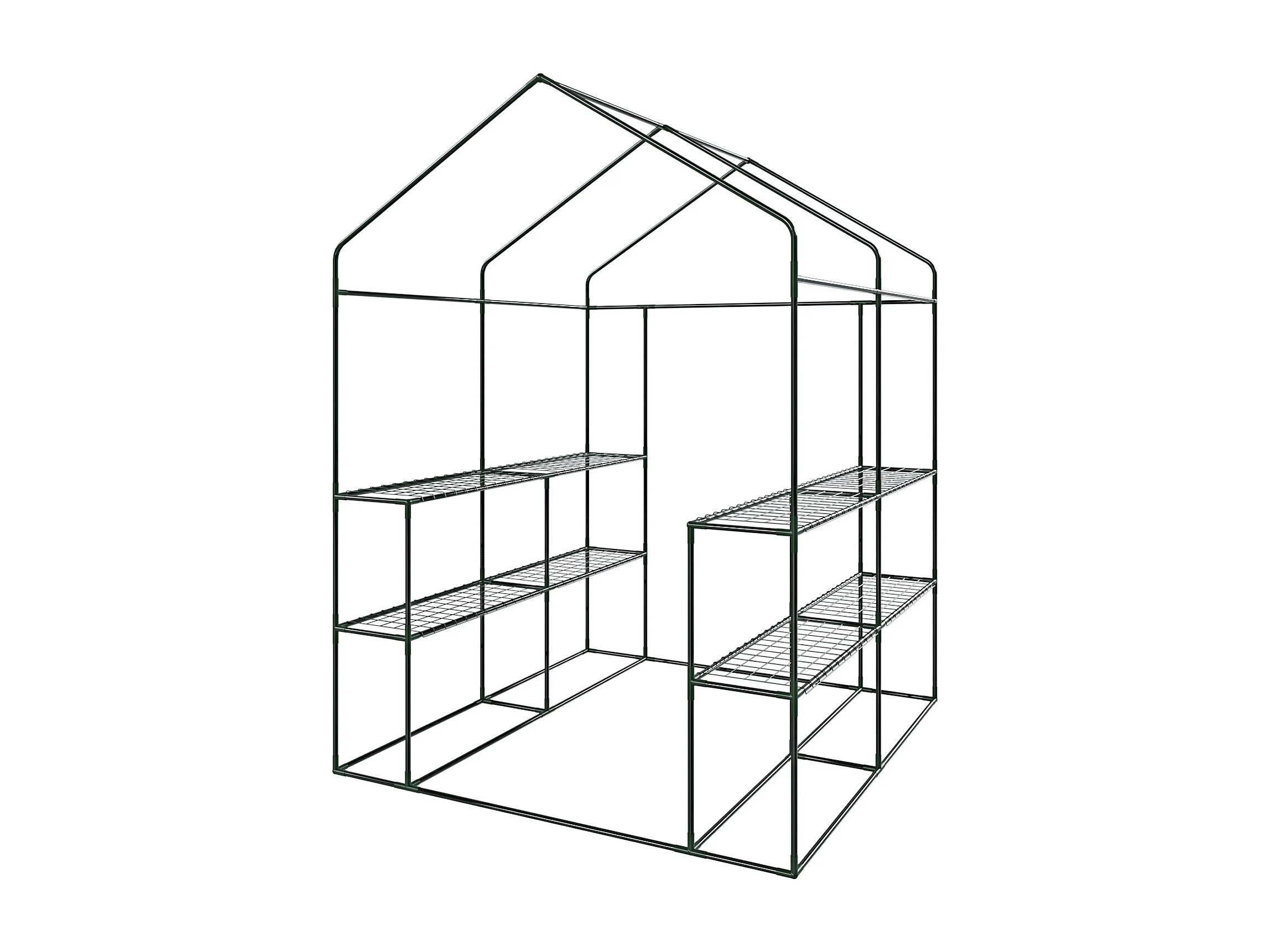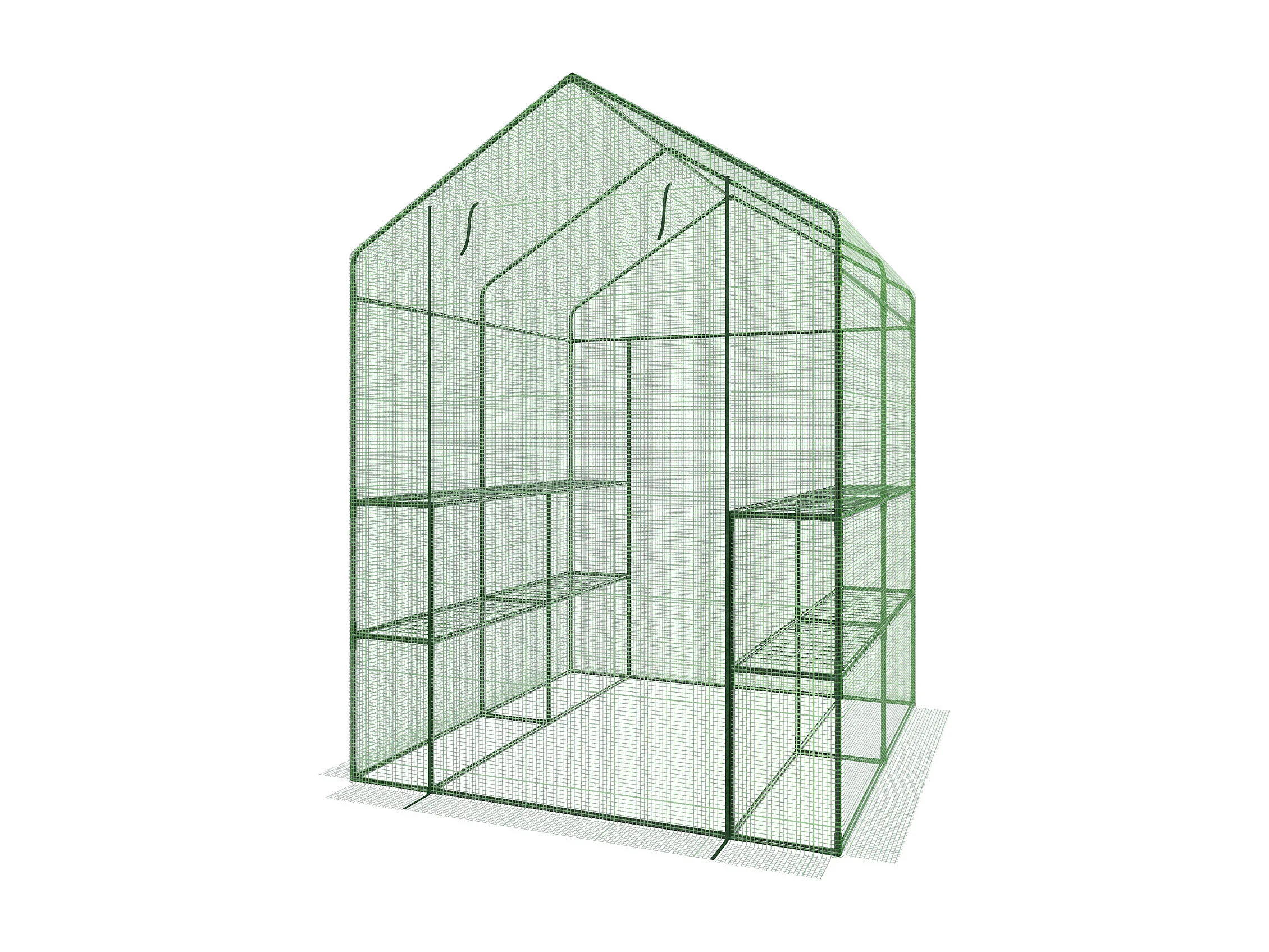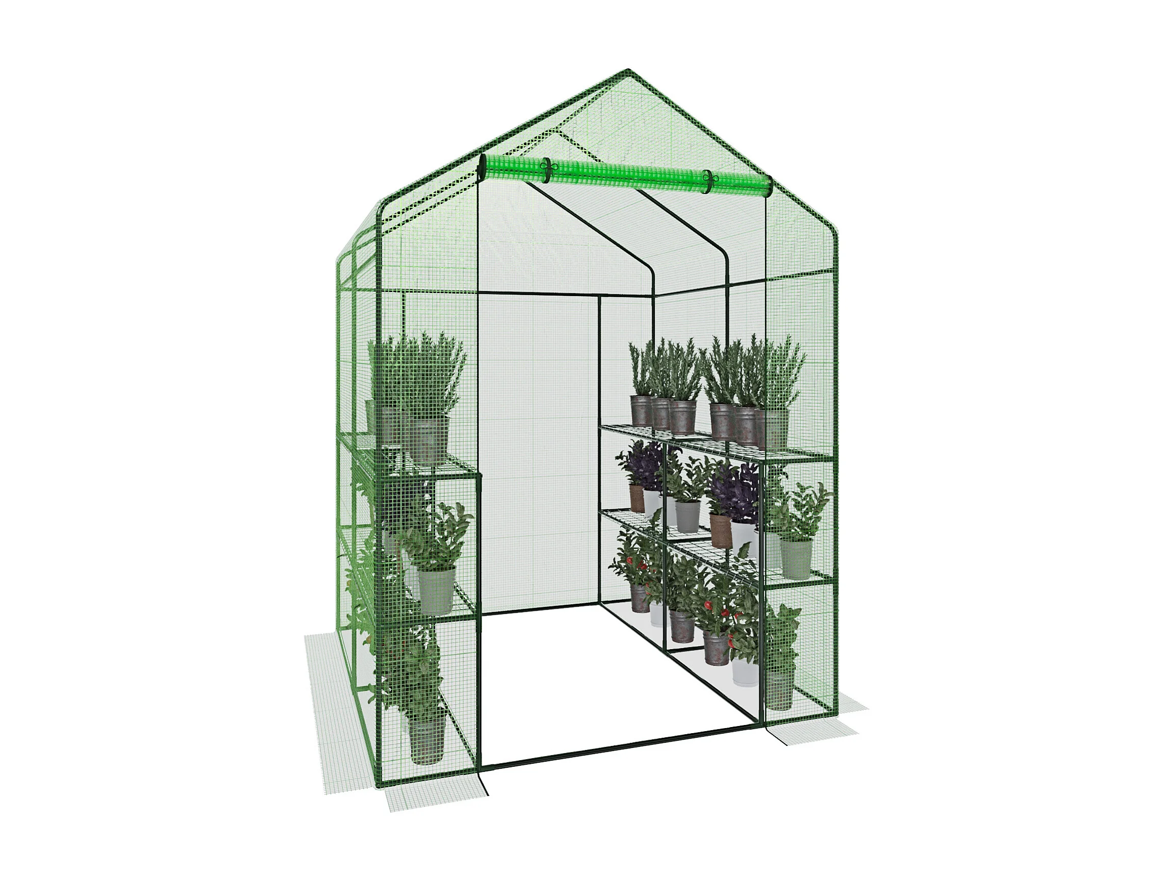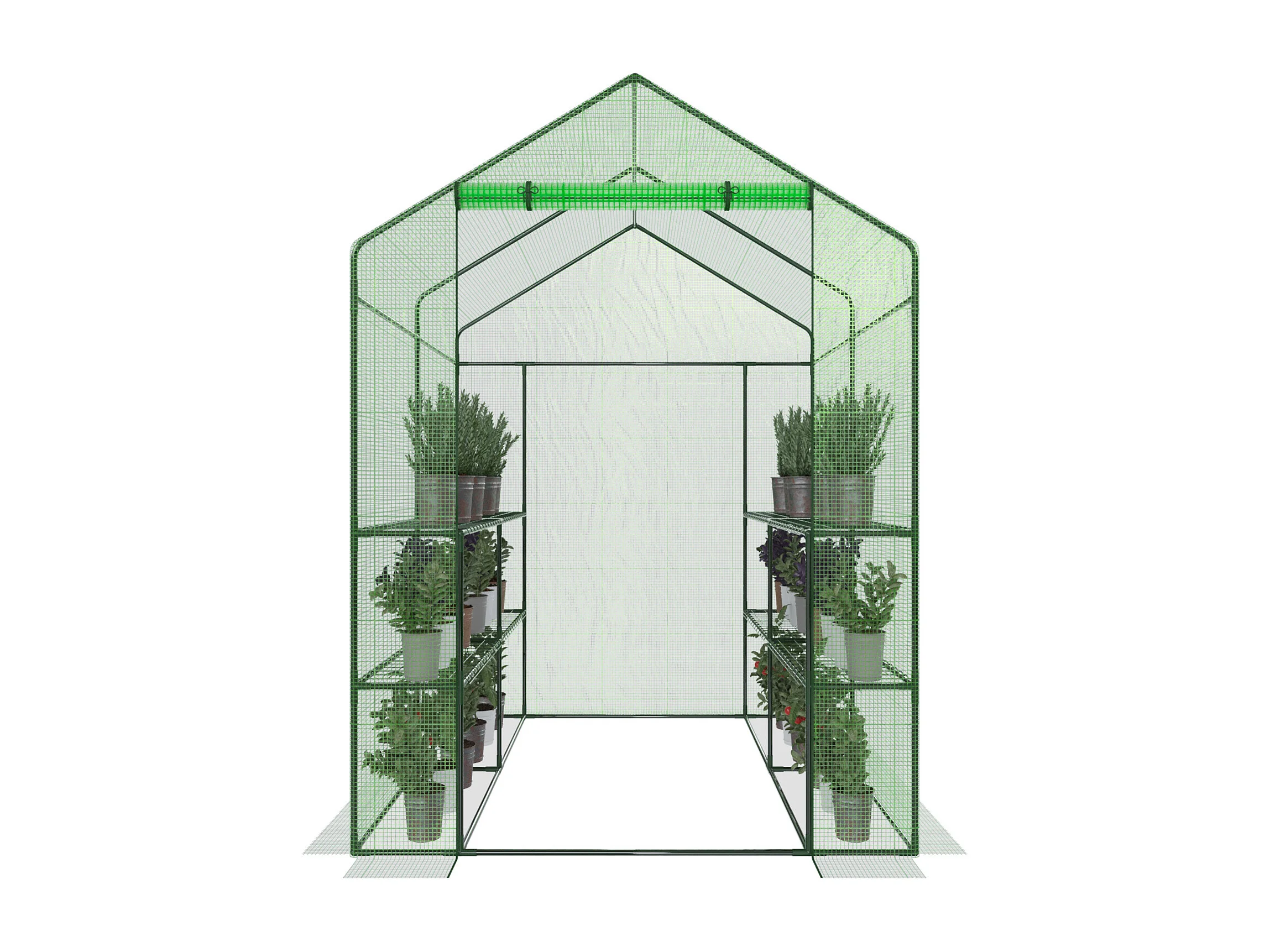 Serra Da Giardino Con 8 Scaffali Ripiani Per Piante Orto Telaio In Acciaio Verniciato Telo In PE Verde Porta Avvolgibile 143 x 138 x 190 Cm