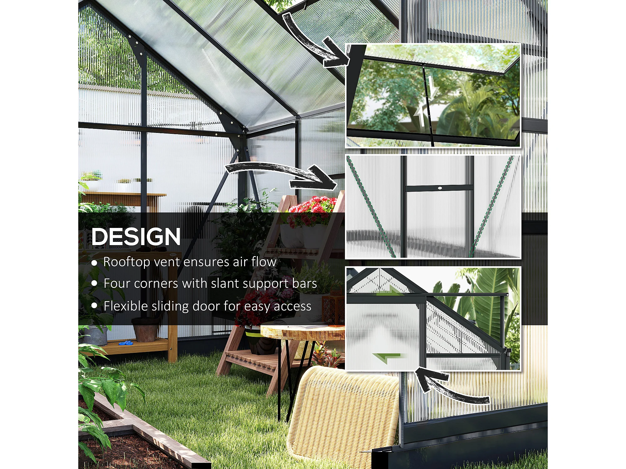 Serra da giardino con porta scorrevole 190x252x201 cm in pc grigio