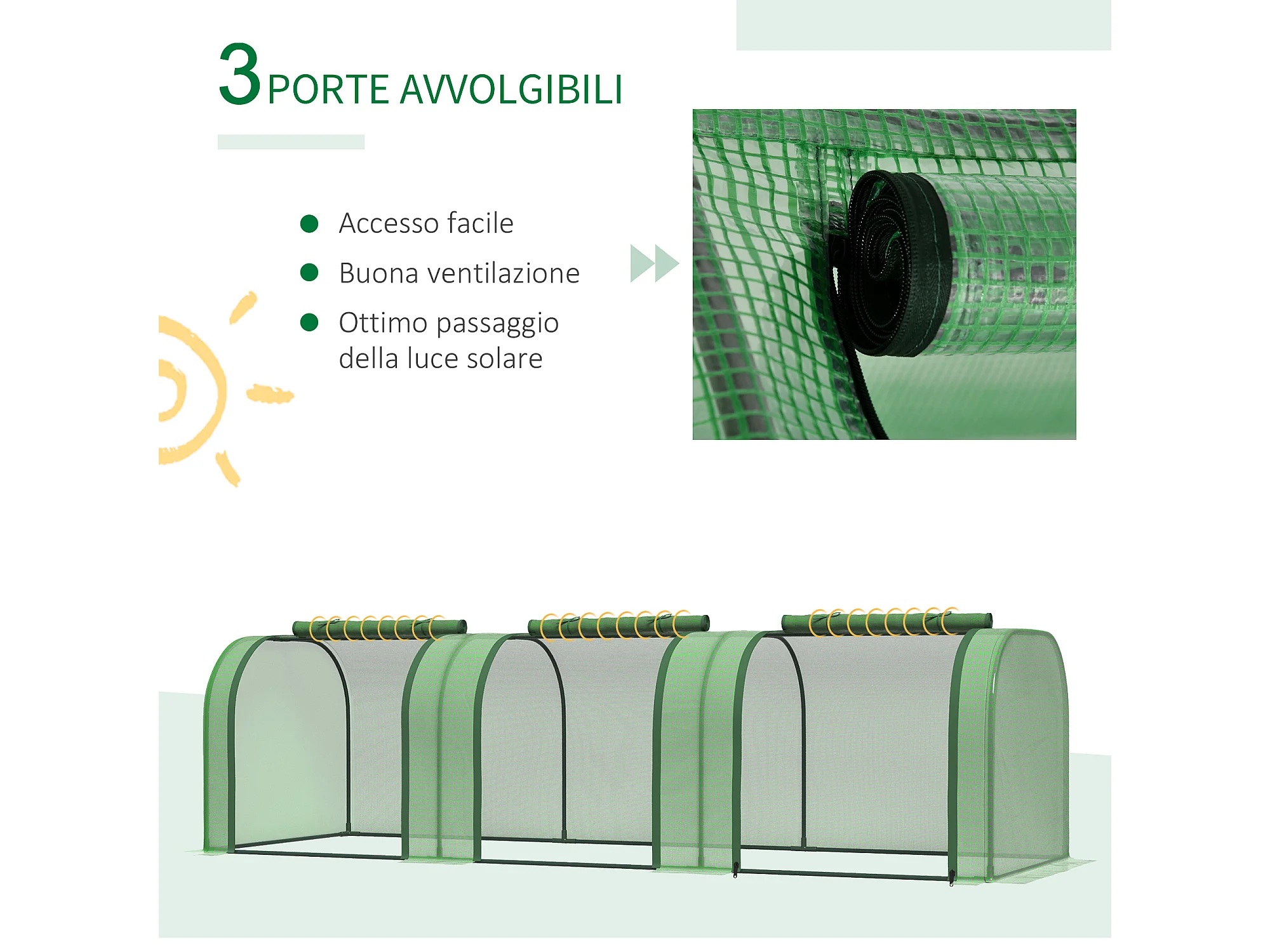 Serra da giardino in acciaio e pp con porte avvolgibili verde