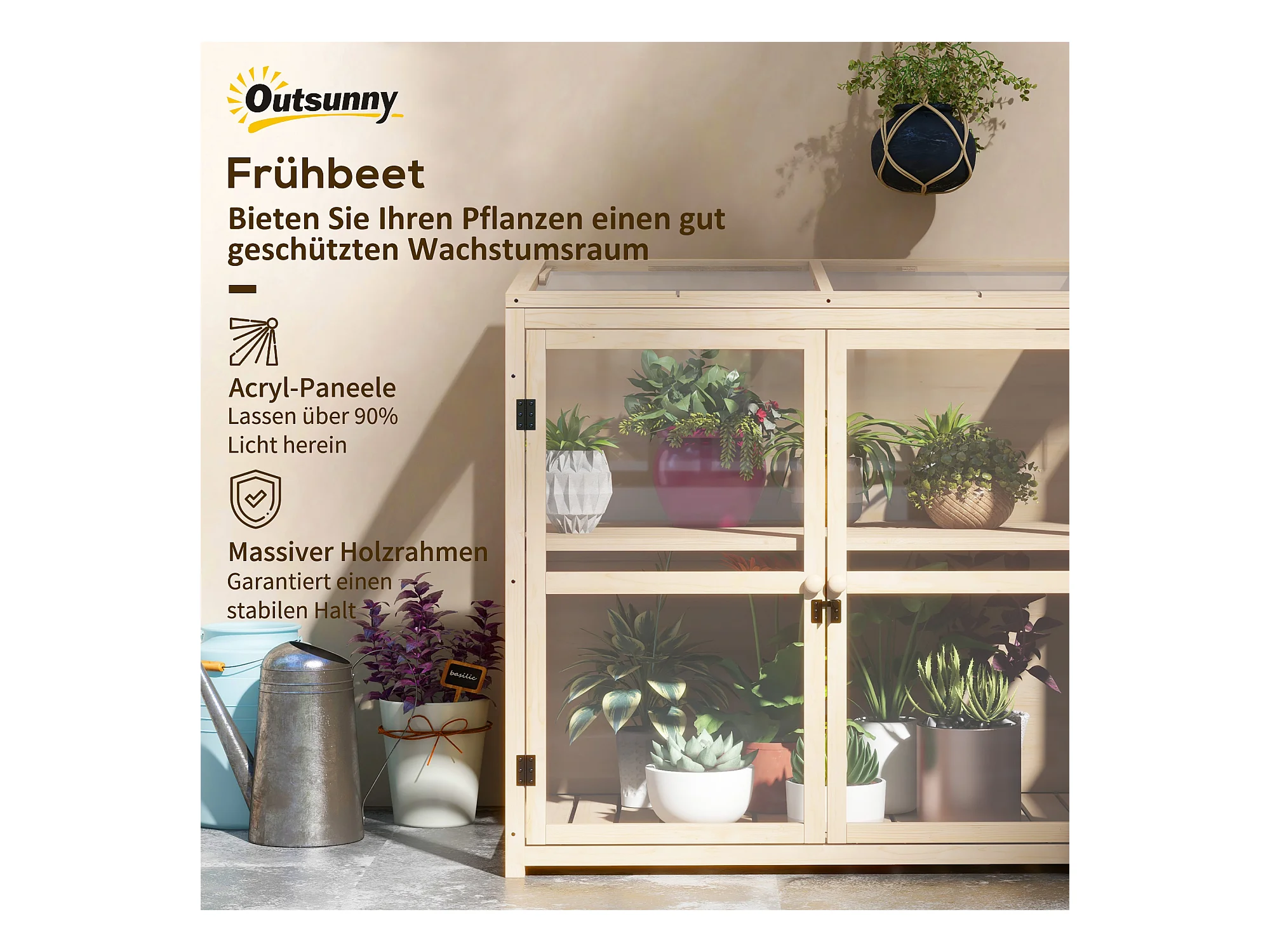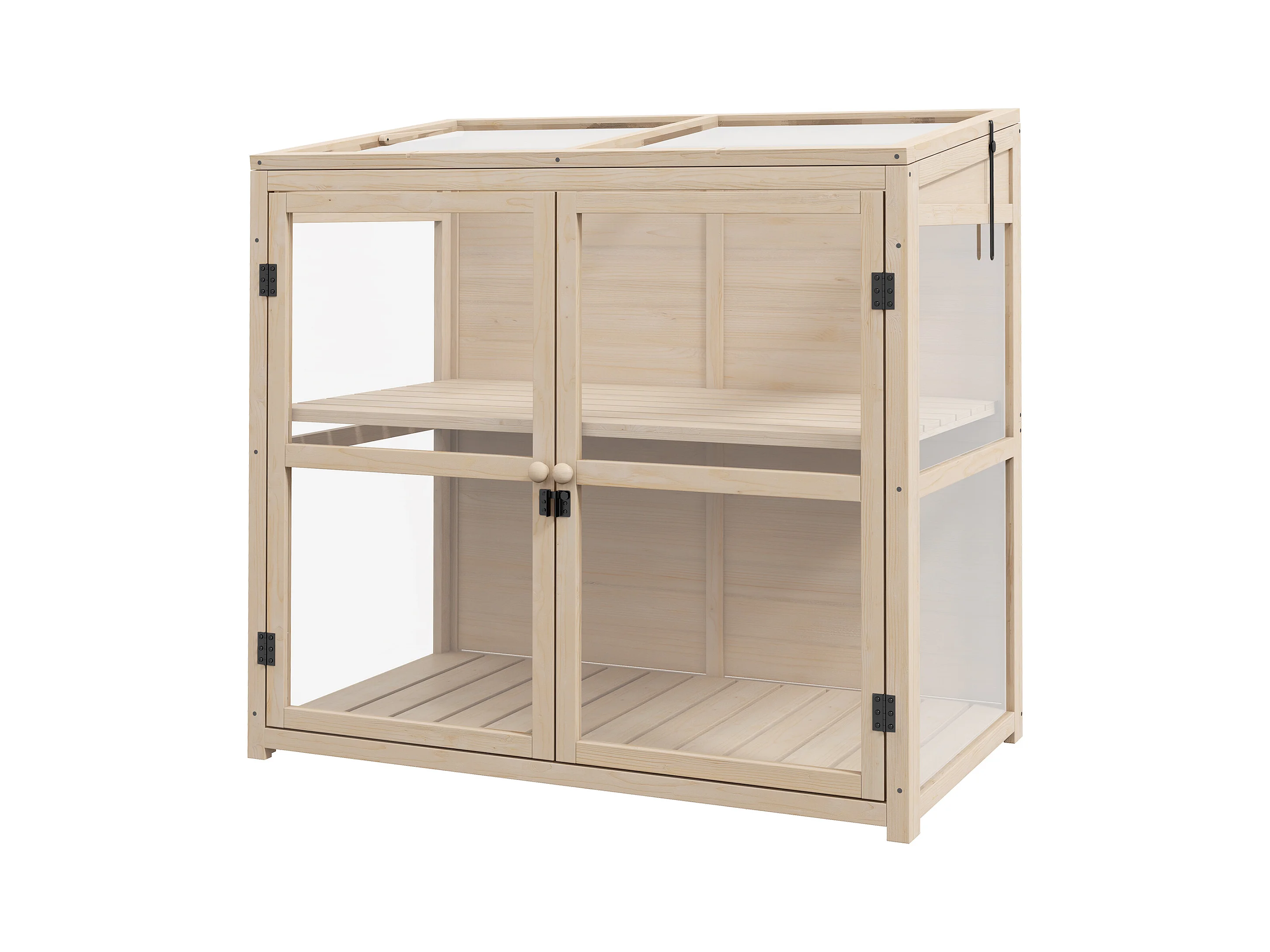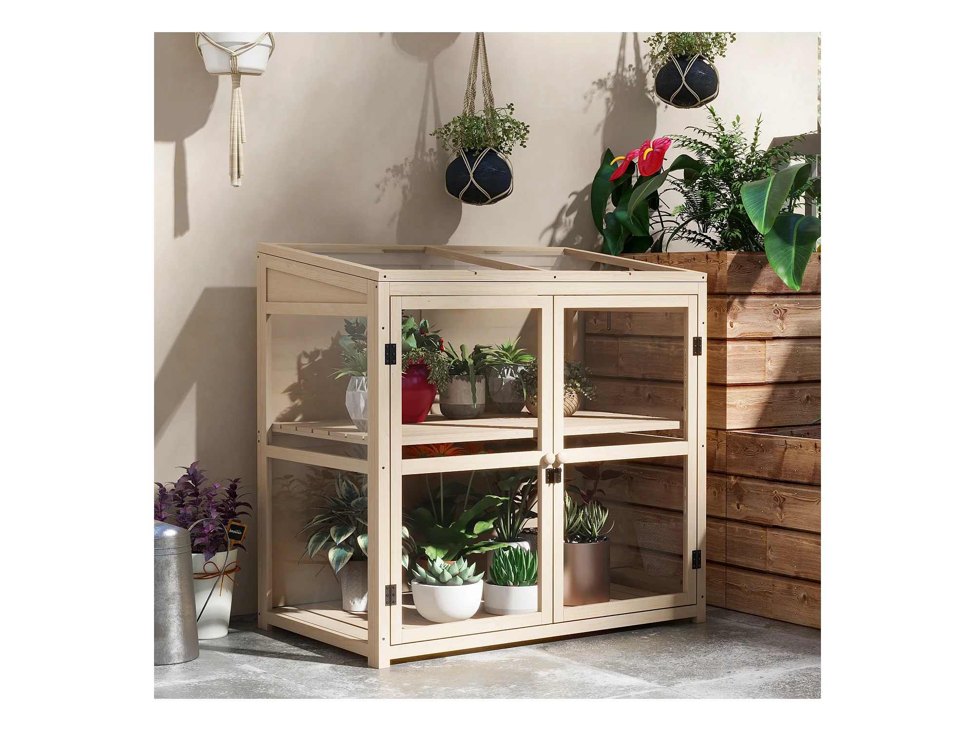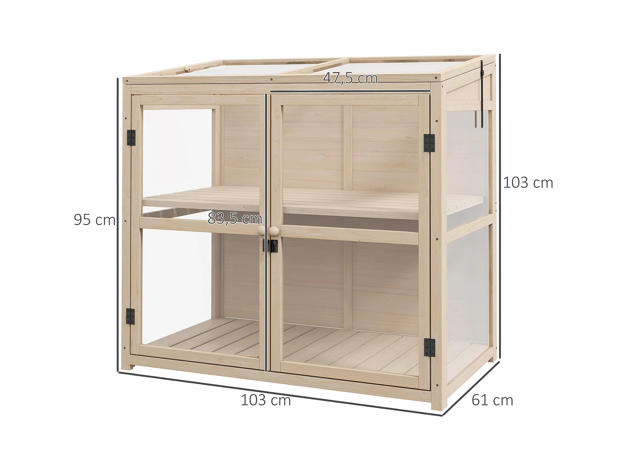 Serra da giardino in legno con doppia porta e lucernario, 2 piani, naturale (103x61x103 cm)