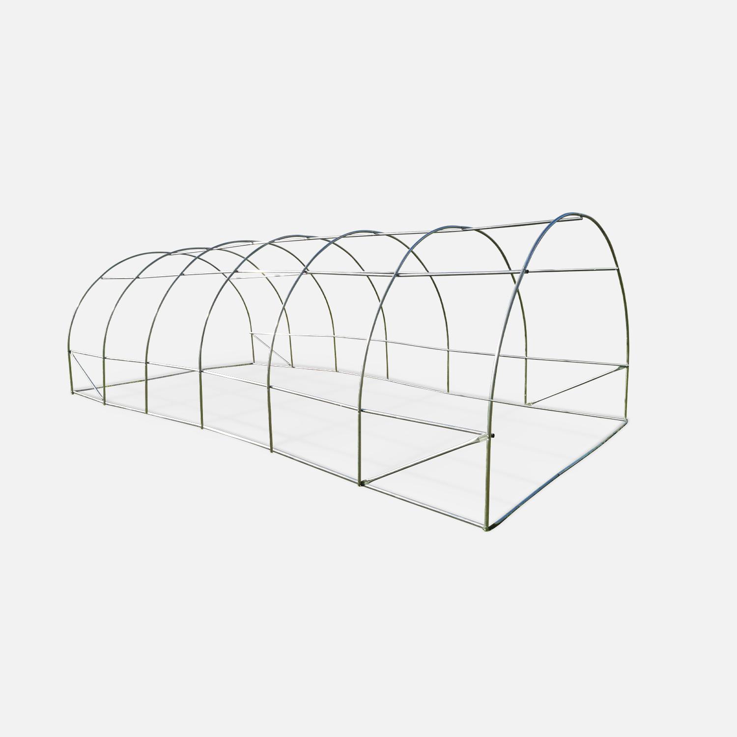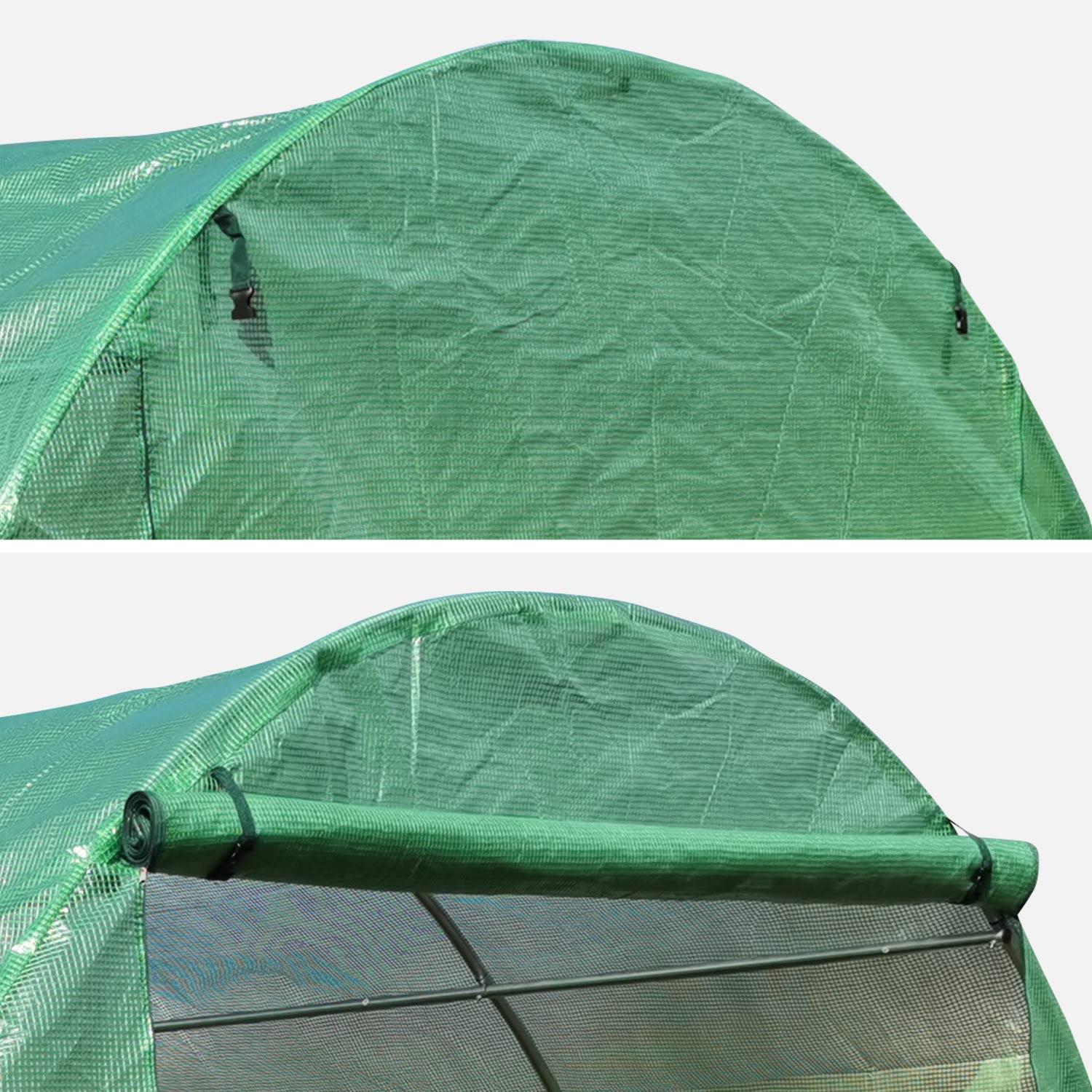 Serra a tunnel per pomodori, film plastico trasparente, 6 finestre con zanzariera, struttura in acciaio verde (395x195x190cm)