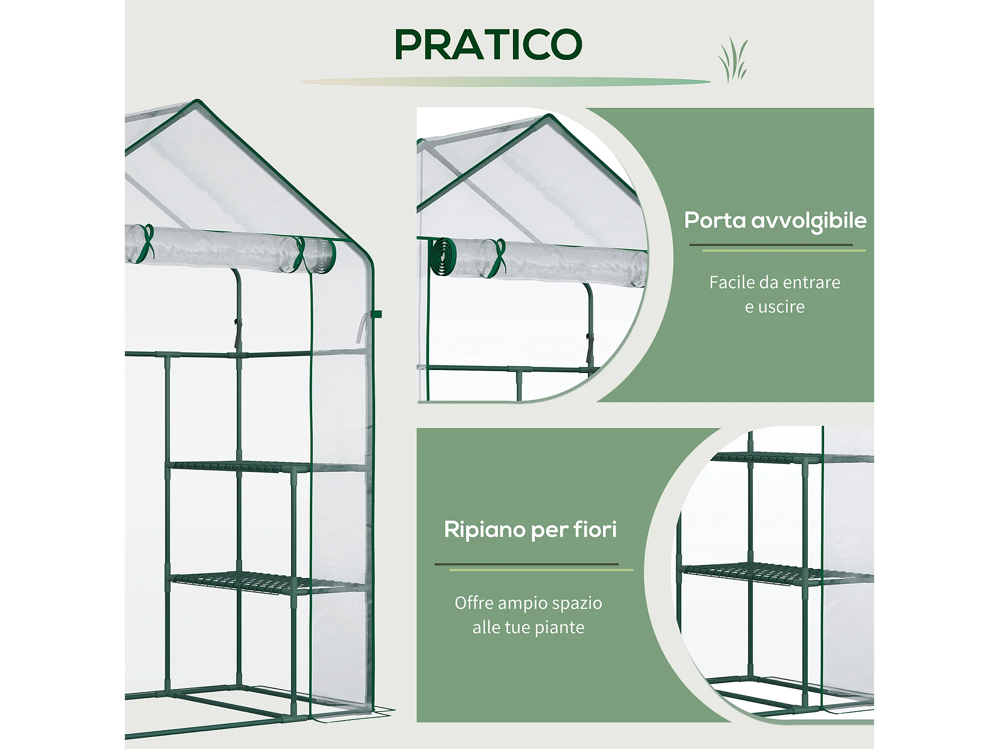 Serra da giardino ripiani in metallo copertura pe 80x49x160cm