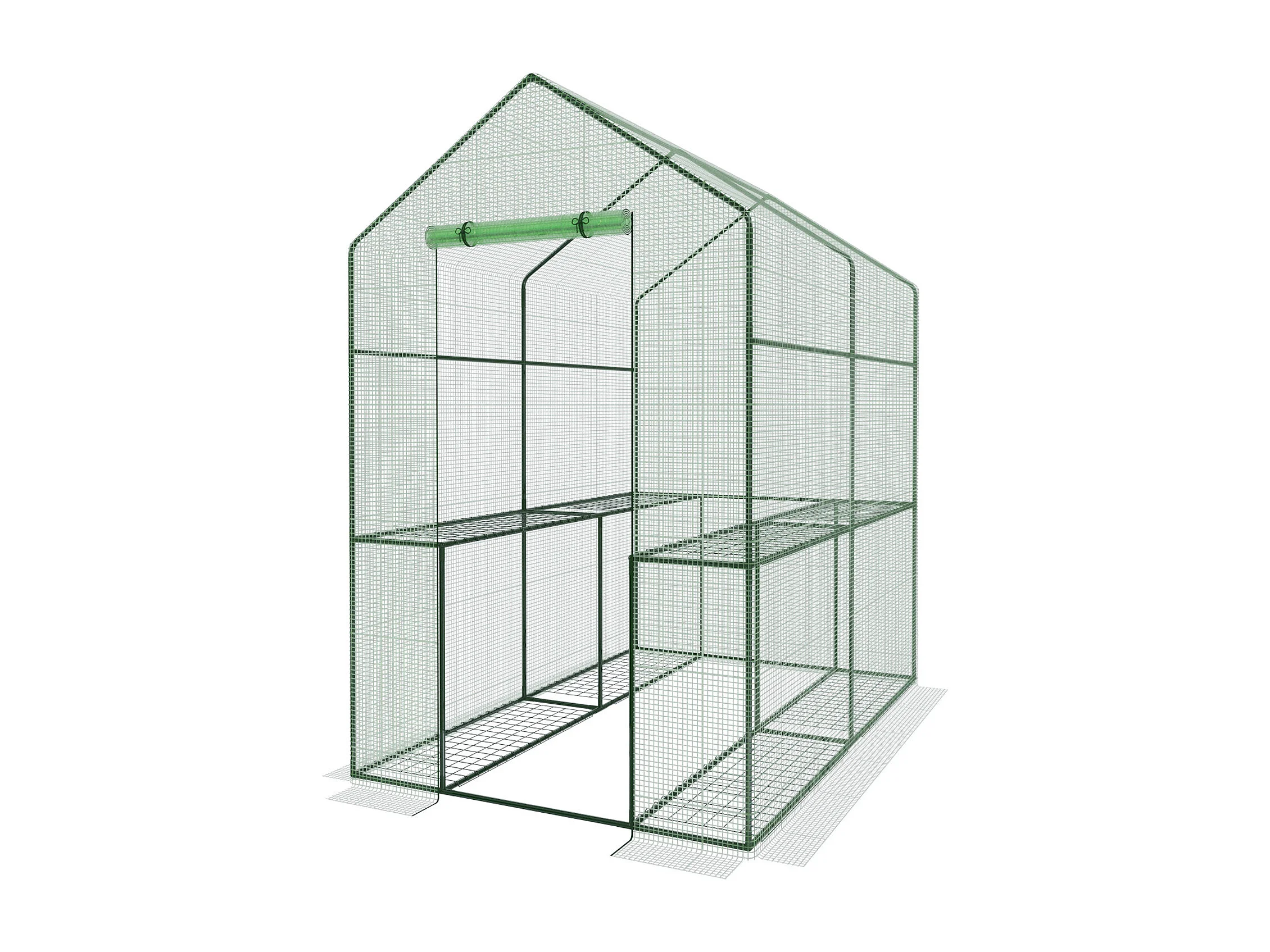 Serra Da Giardino Per Orto Con 8 Ripiani In Metallo Telaio A Casetta In Acciaio Telo Trasparente In PVC Porta Avvolgibile Apertura A Cerniera 143 x 74 x 195 Cm