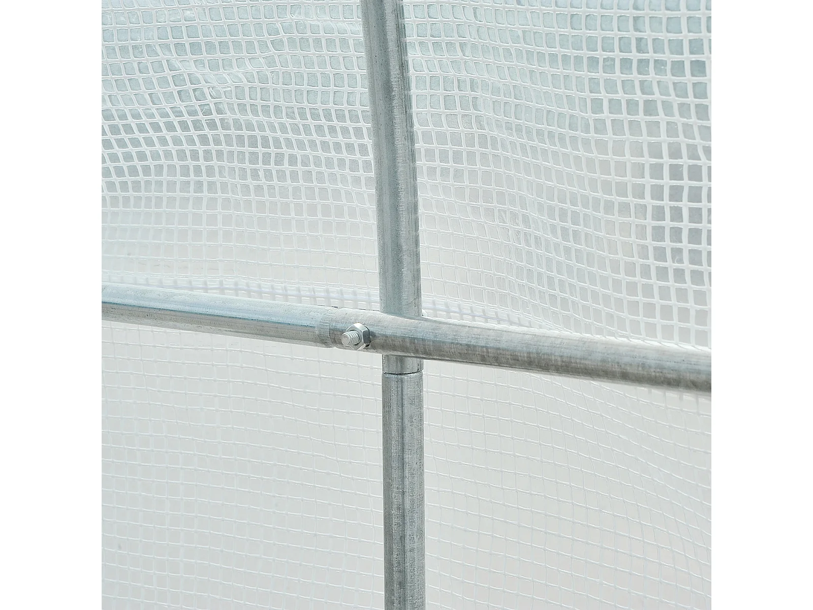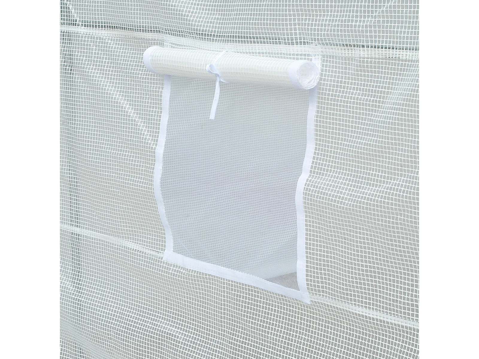 Serra a tunnel con 6 finestre a rete in metallo e pe 3.5x3 m bianca