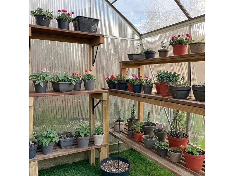 Serra da Giardino Policarbonato "Diamant 46" con Base - 2,28m², Porta Scorrevole, Lucernario e Grondaie