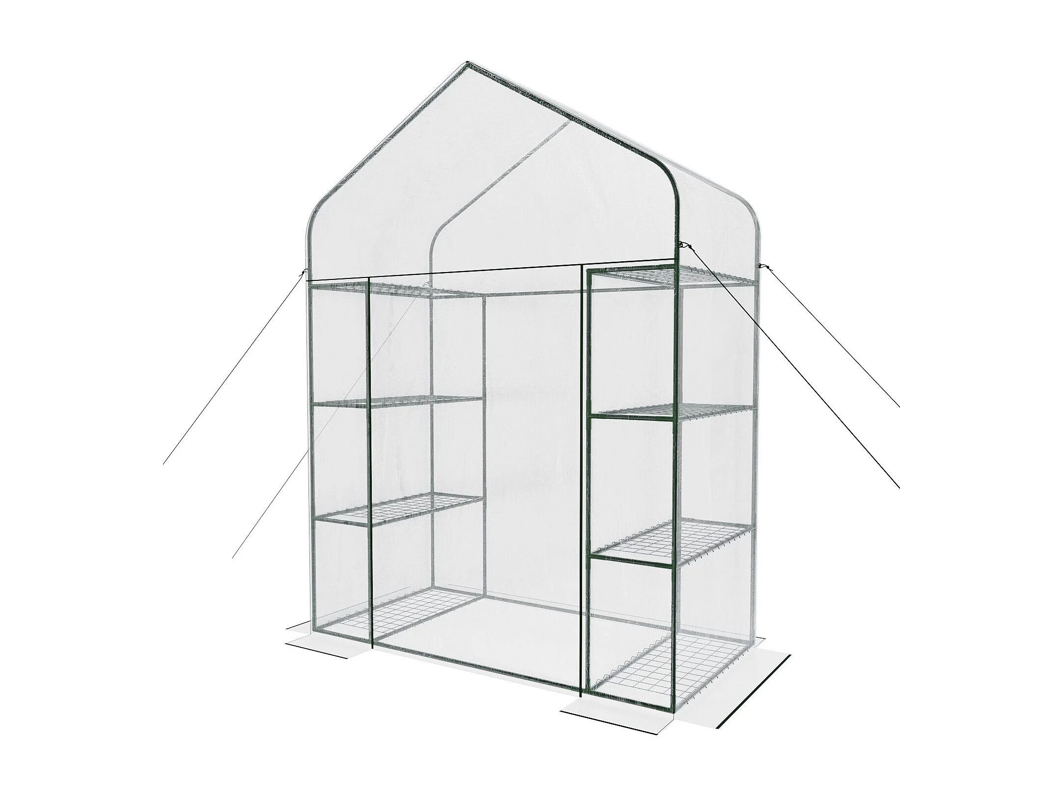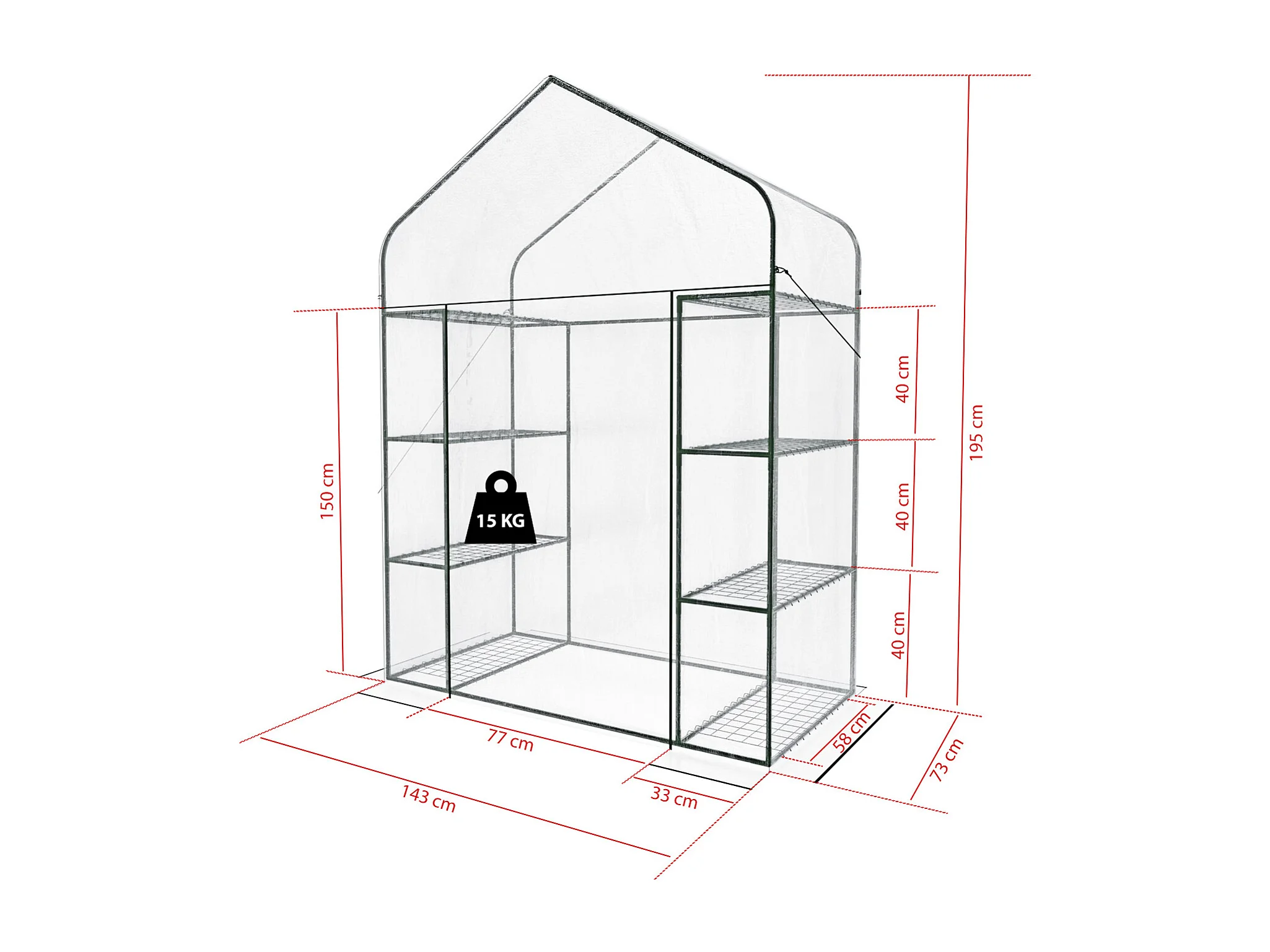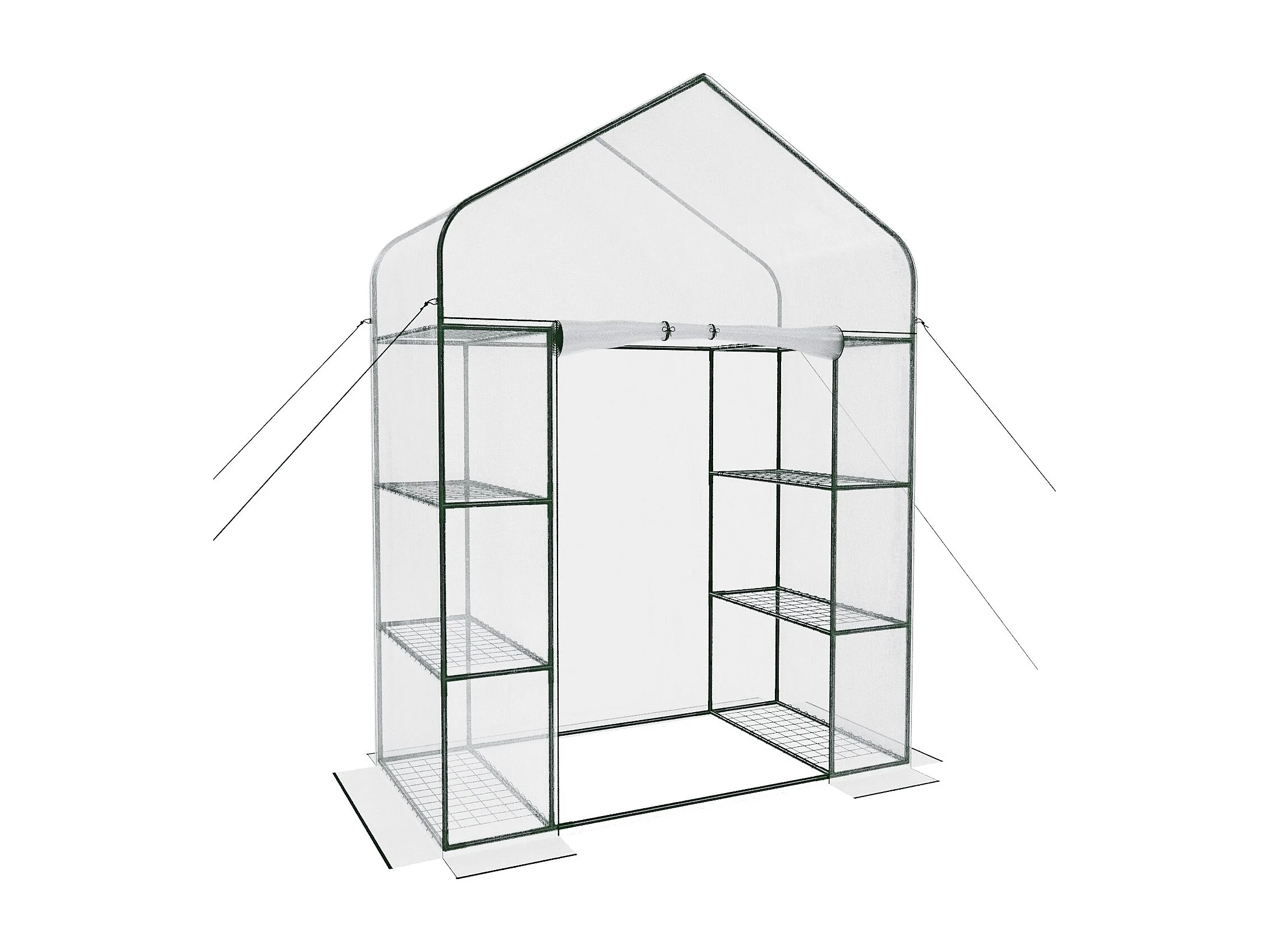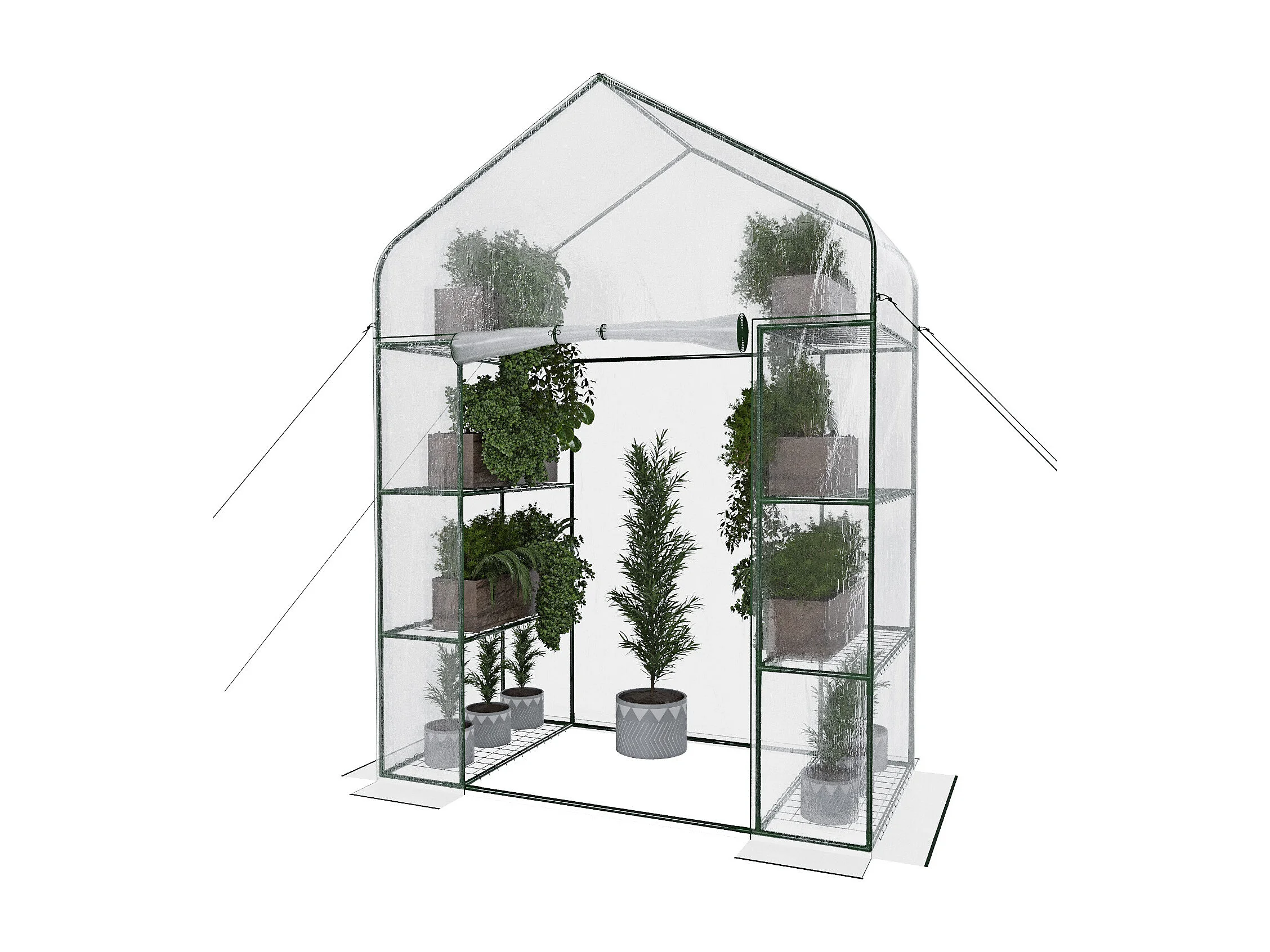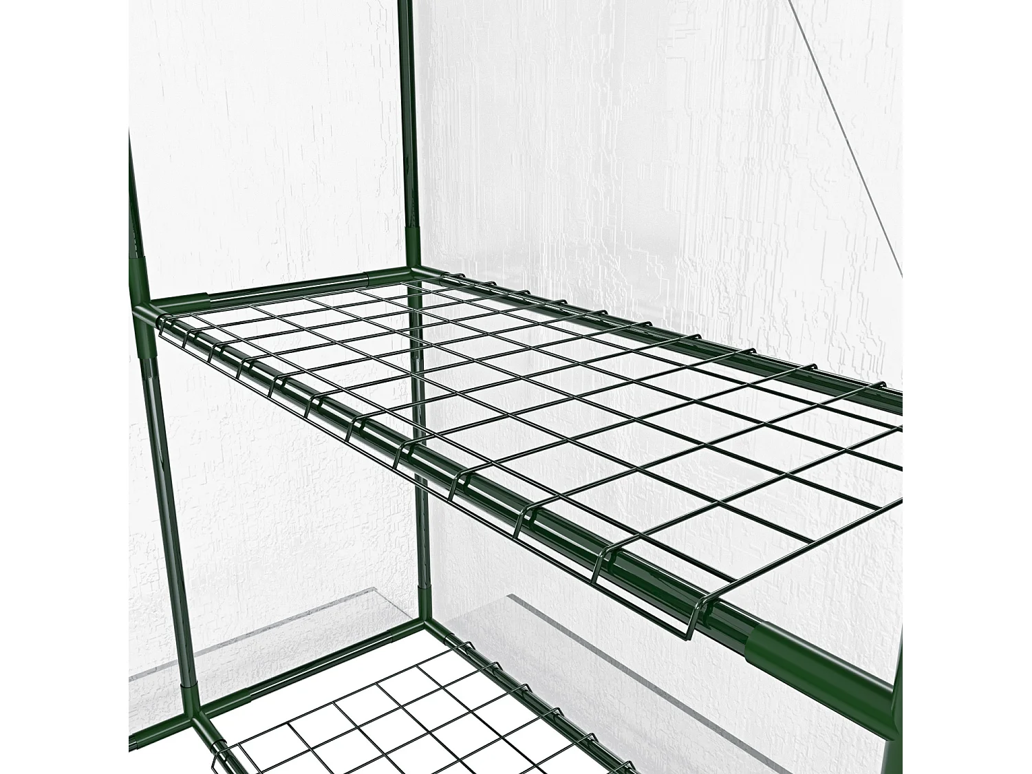 Serra Da Giardino Per Orto Con 8 Ripiani In Metallo Telaio A Casetta In Acciaio Telo Trasparente In PVC Porta Avvolgibile Apertura A Cerniera 143 x 74 x 195 Cm