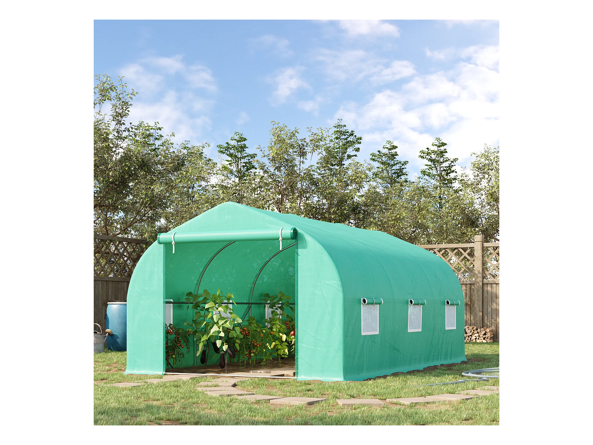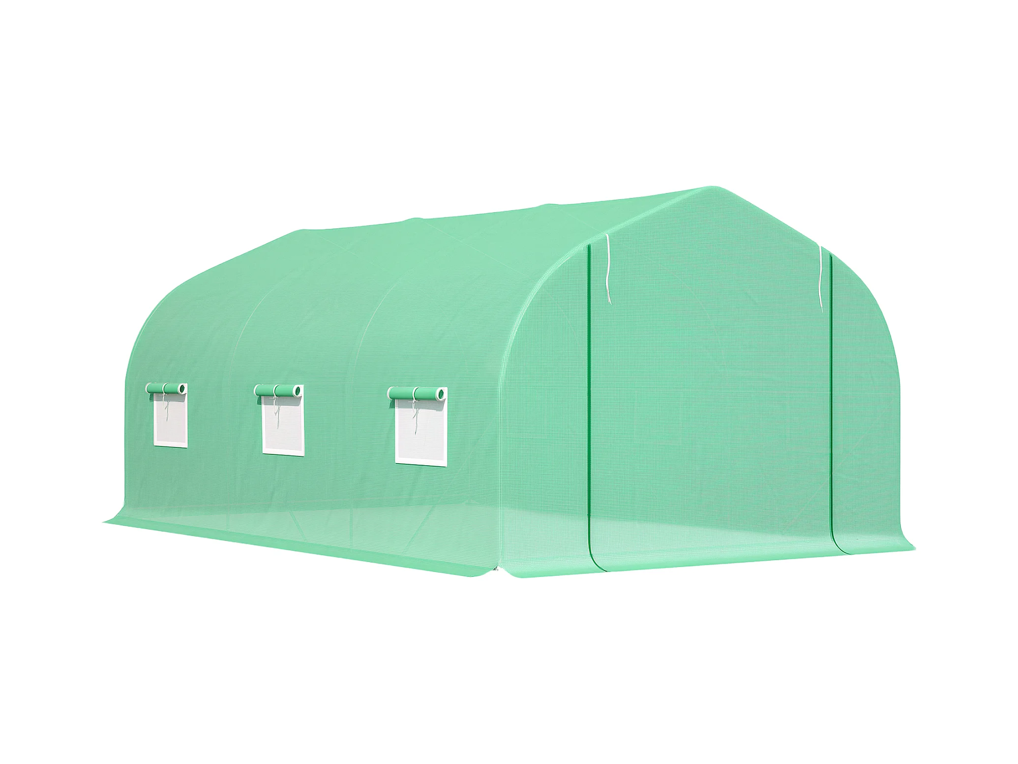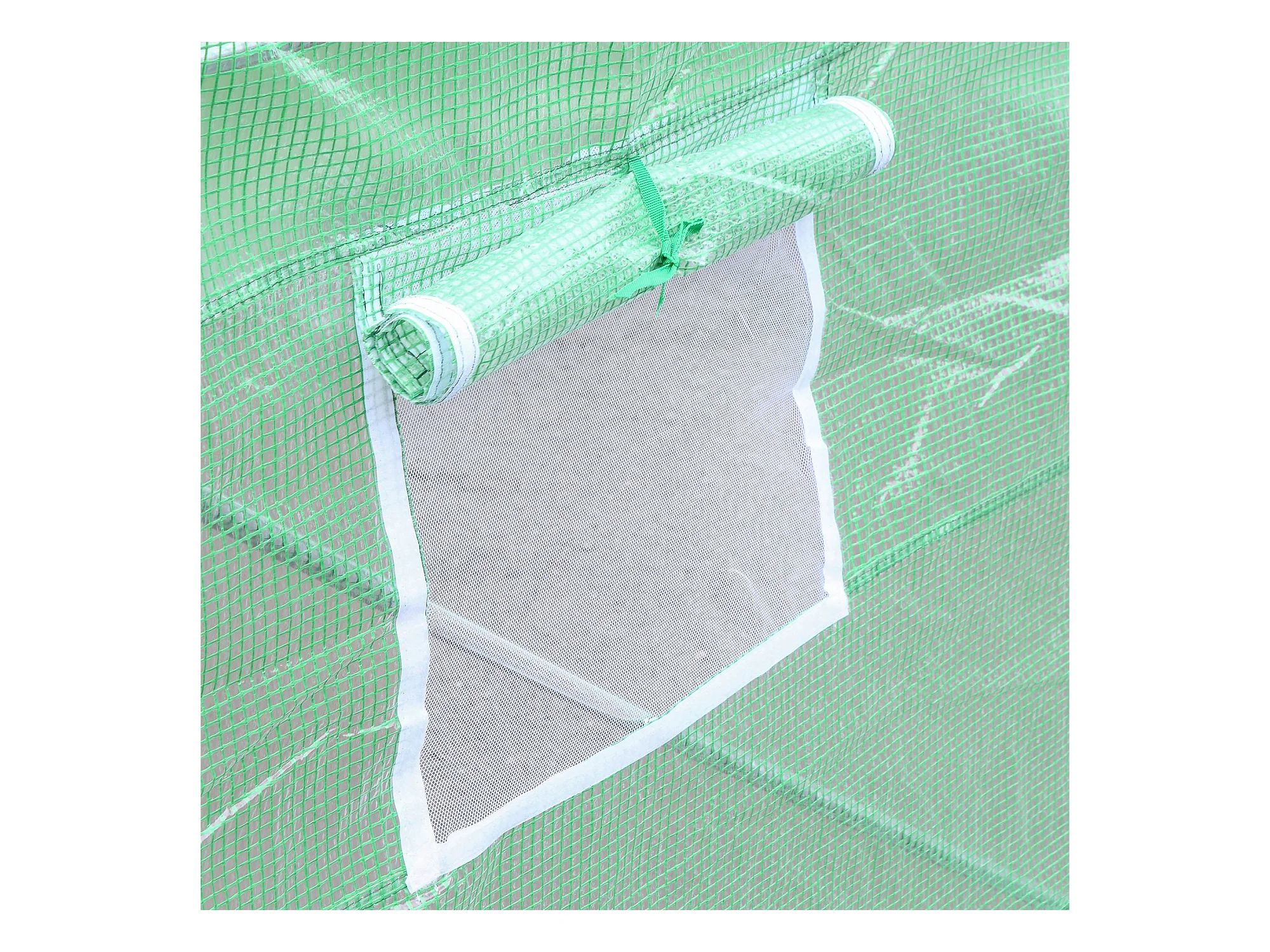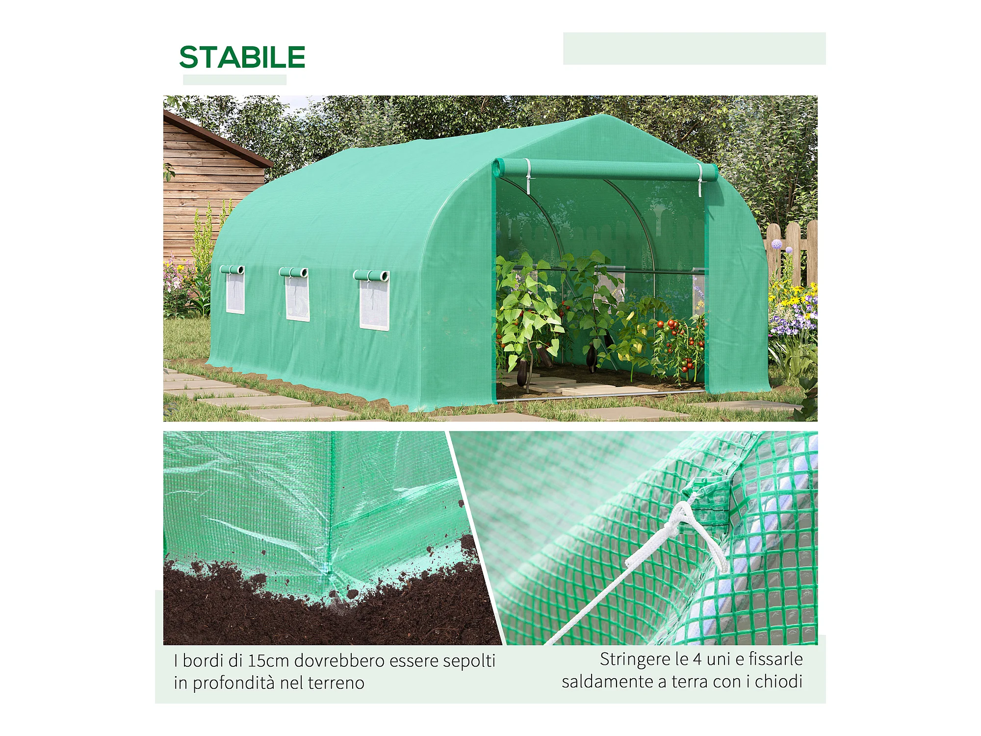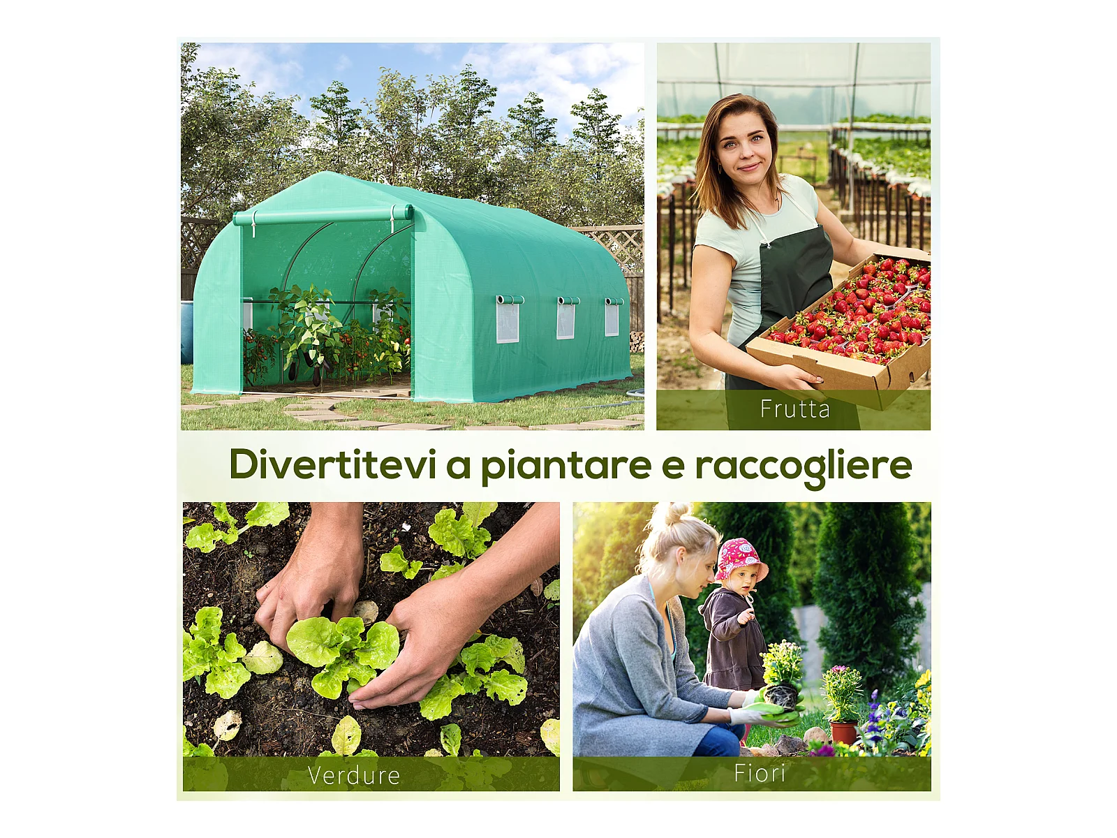 Serra a tunnel in acciaio e pe con 8 finestre 5.95x3x2 m verde