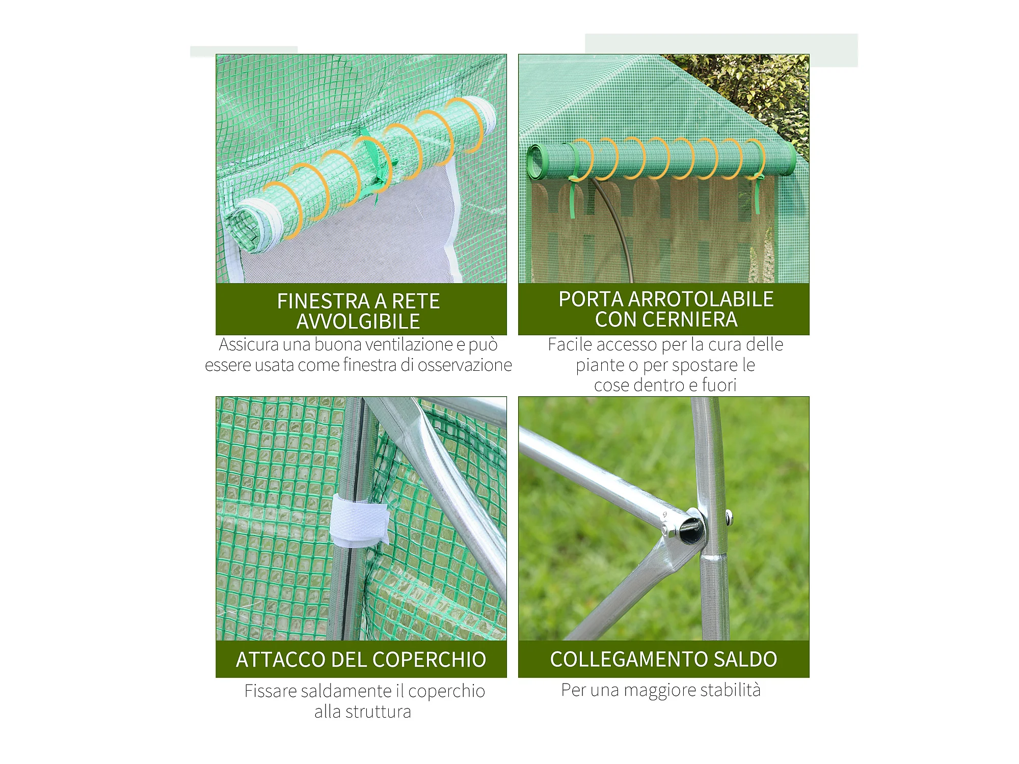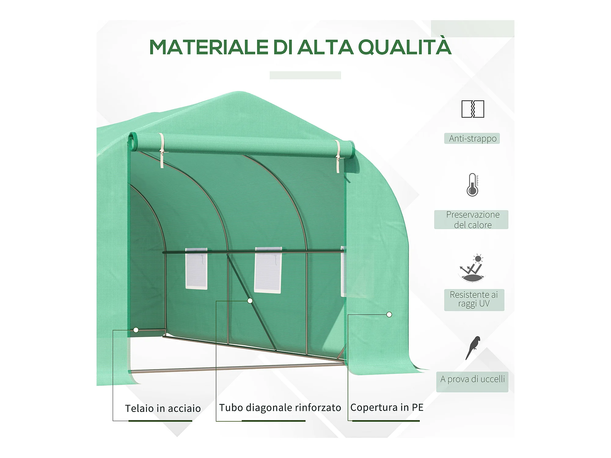 Serra a tunnel con 8 finestre laterali e ingresso avvolgibile verde
