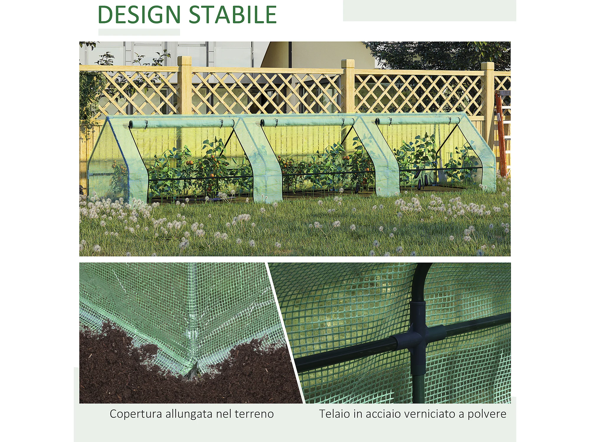 Serra per piante 4x1x0.8 m con 3 ingressi avvolgibili in acciaio e pe