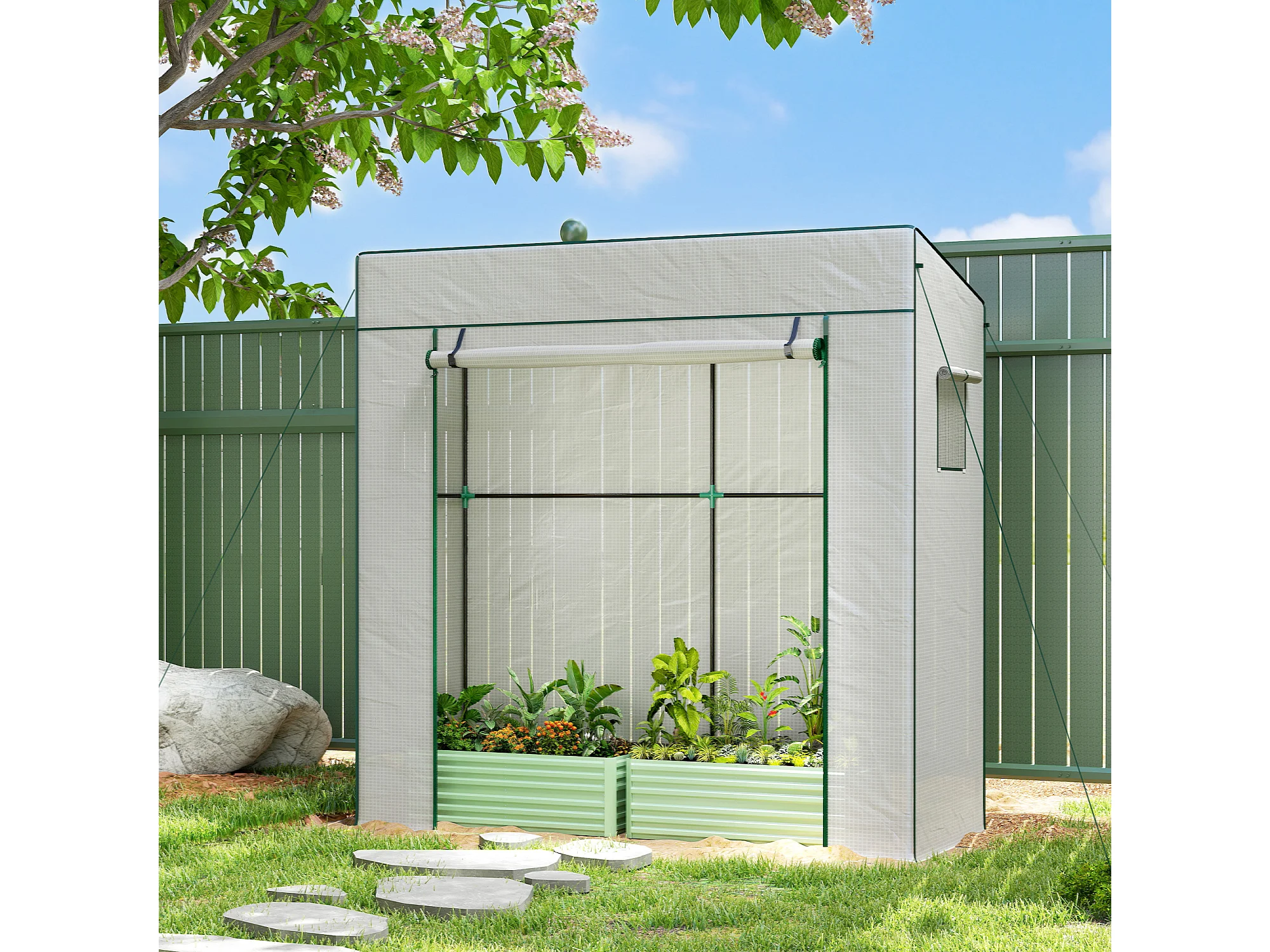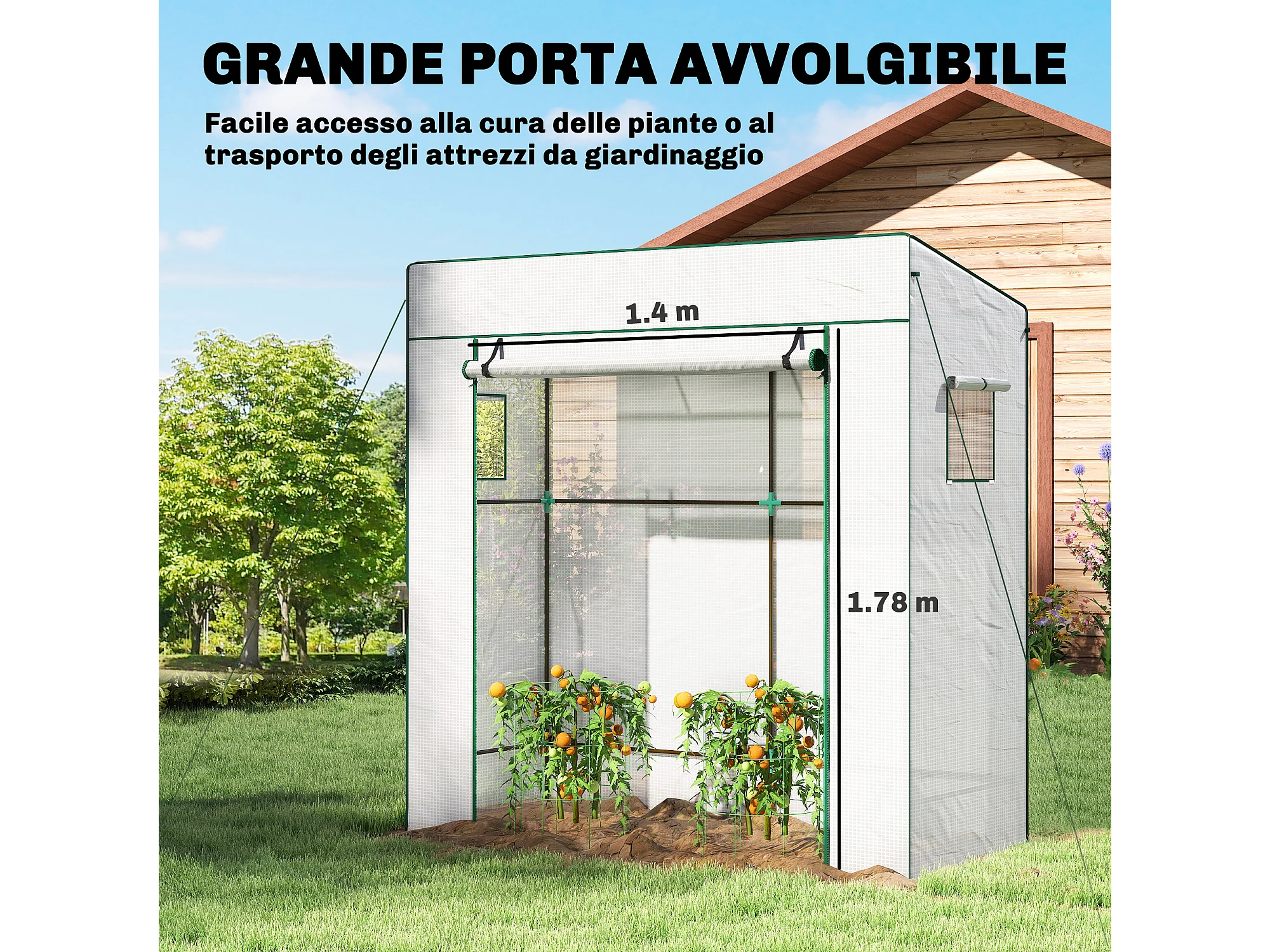 Serra per piante con 2 finestre a rete e porta avvolgibile bianco