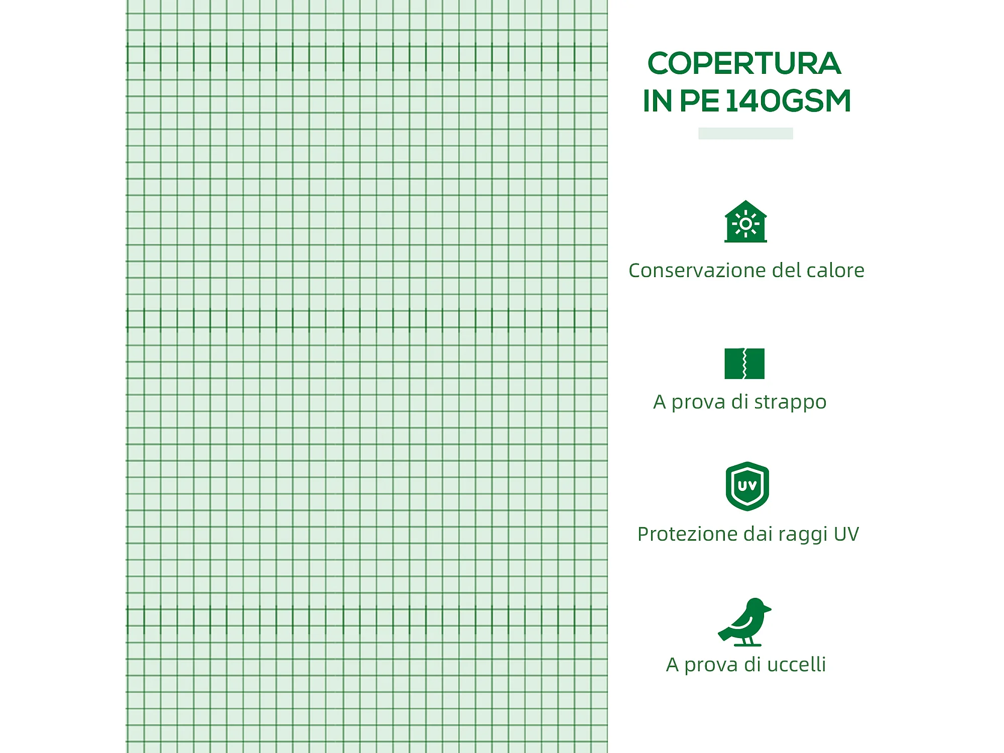 Serra da giardino in pe e acciaio con 4 picchetti 2 finestre