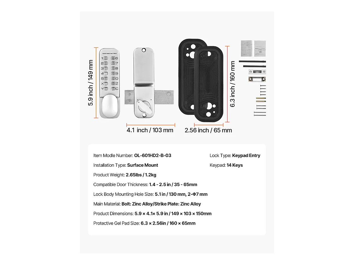 Serratura di Porta Meccanica SucceBuy senza Chiave 14 Chiavi in Lega di Zinco a Lato Singolo, Impermeabile