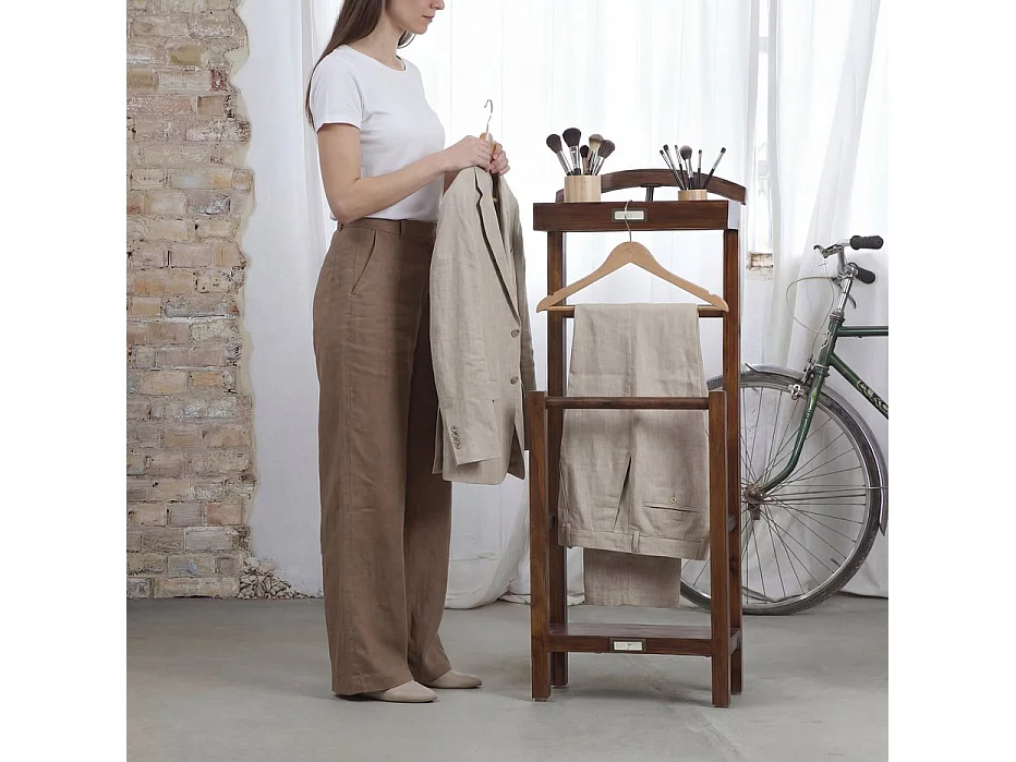 Servo muto legno massello di mindi, pannello mdf e impiallacciatura naturale Tek 30x113