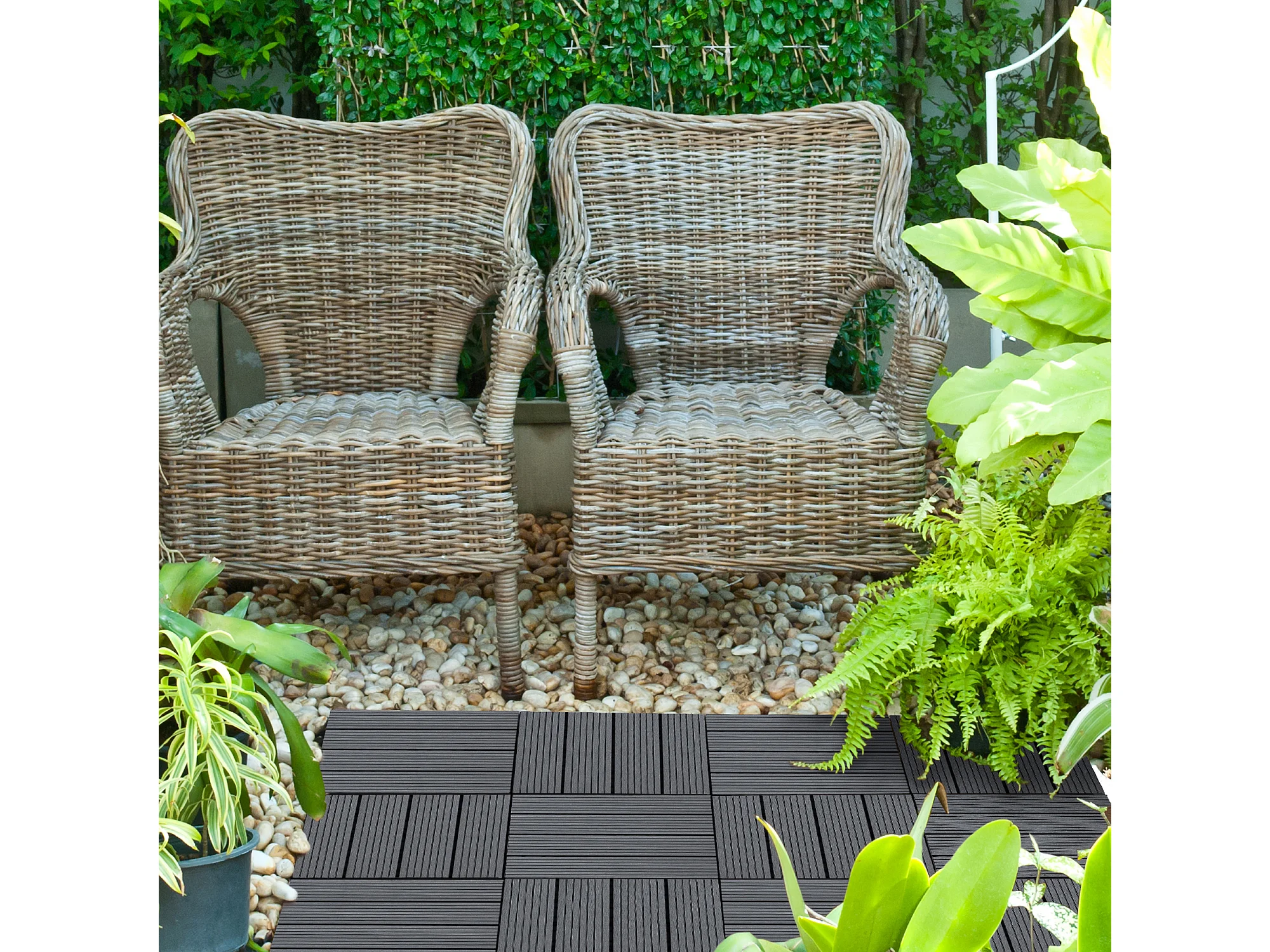 Set 11 piastrelle per esterni ad incastro antiscivolo in hdpe grigio