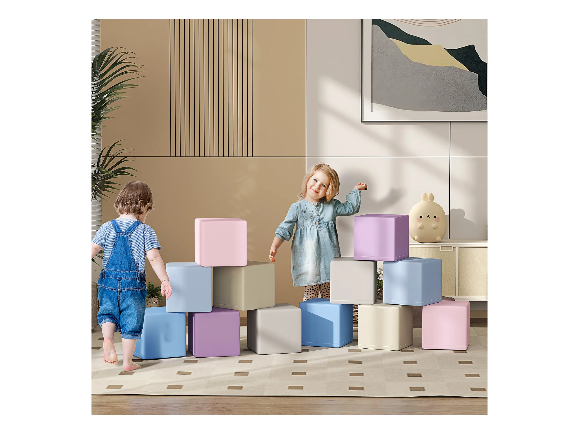 Set 7 blocchi di costruzioni morbide per bambini 1-3 anni multicolore