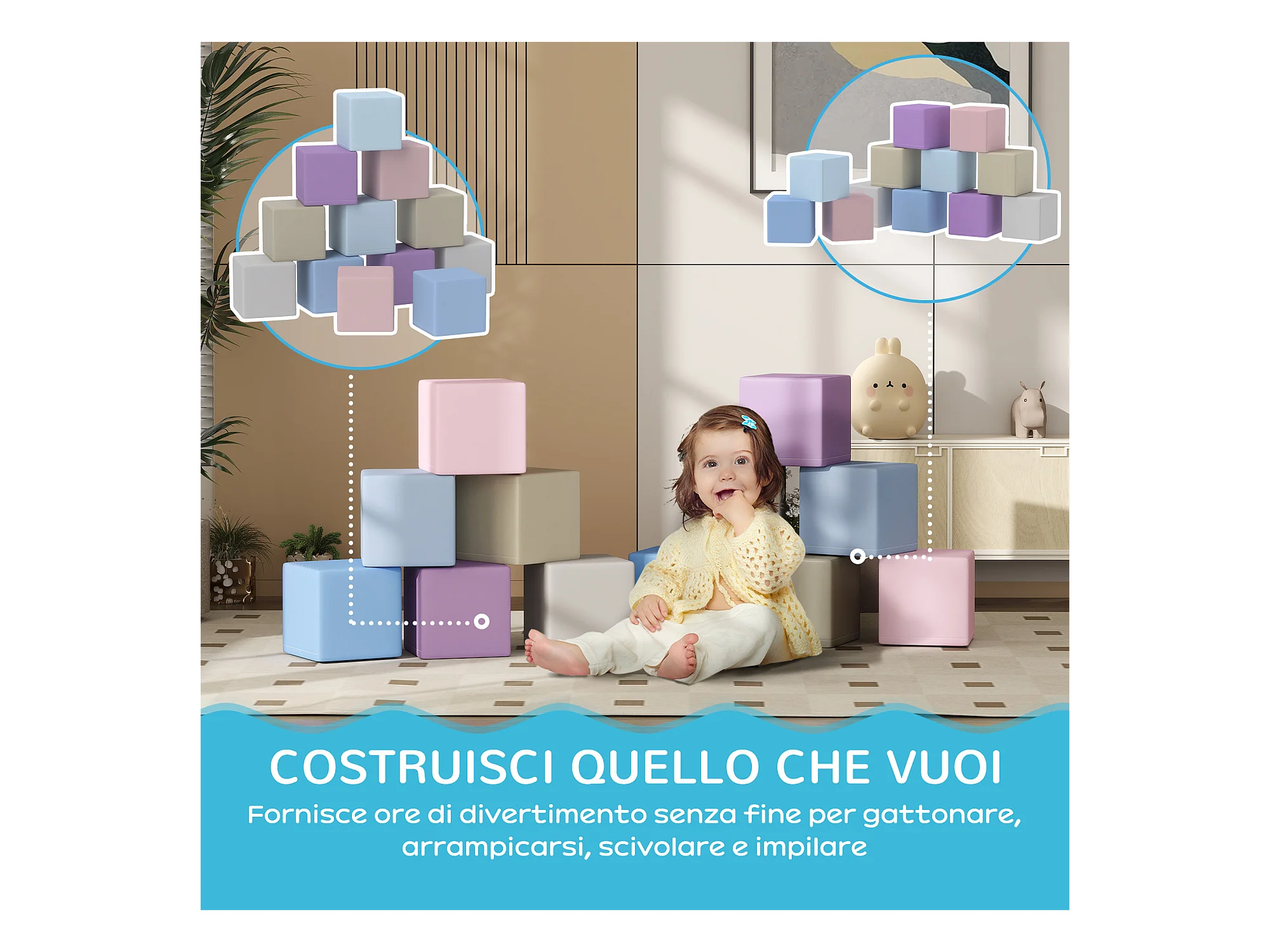 Set 4 blocchi di costruzioni morbidi per bambini 1-3 anni modulabili