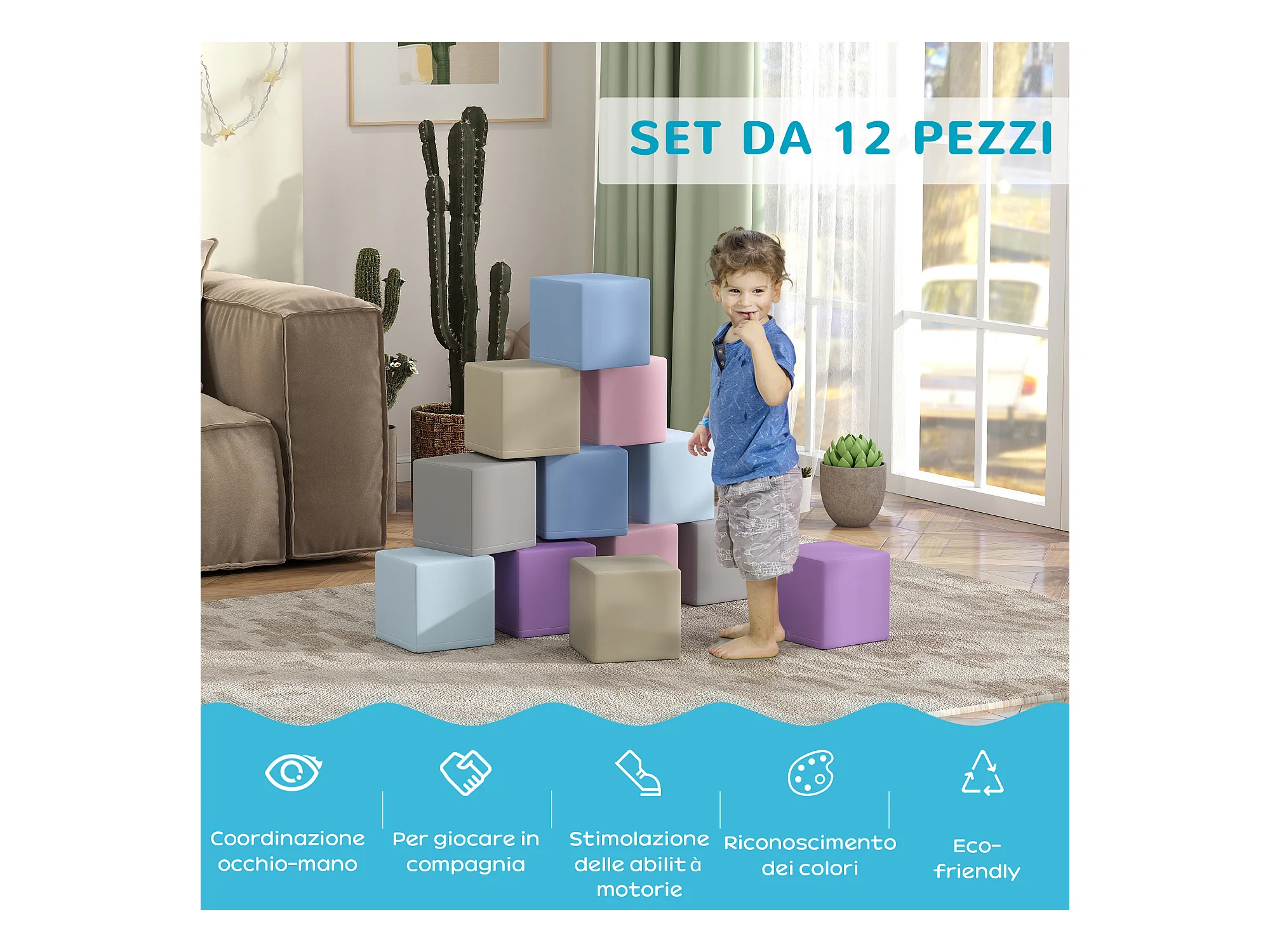 Set da gioco per bambini 12-36 mesi da 7 blocchi in pu epe multicolore
