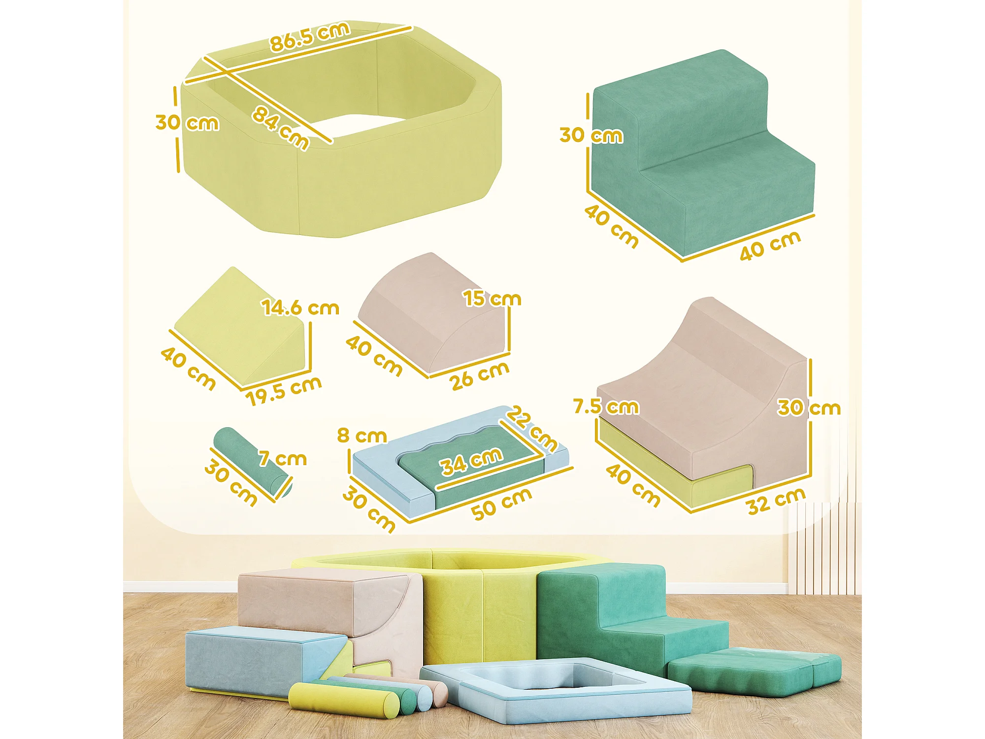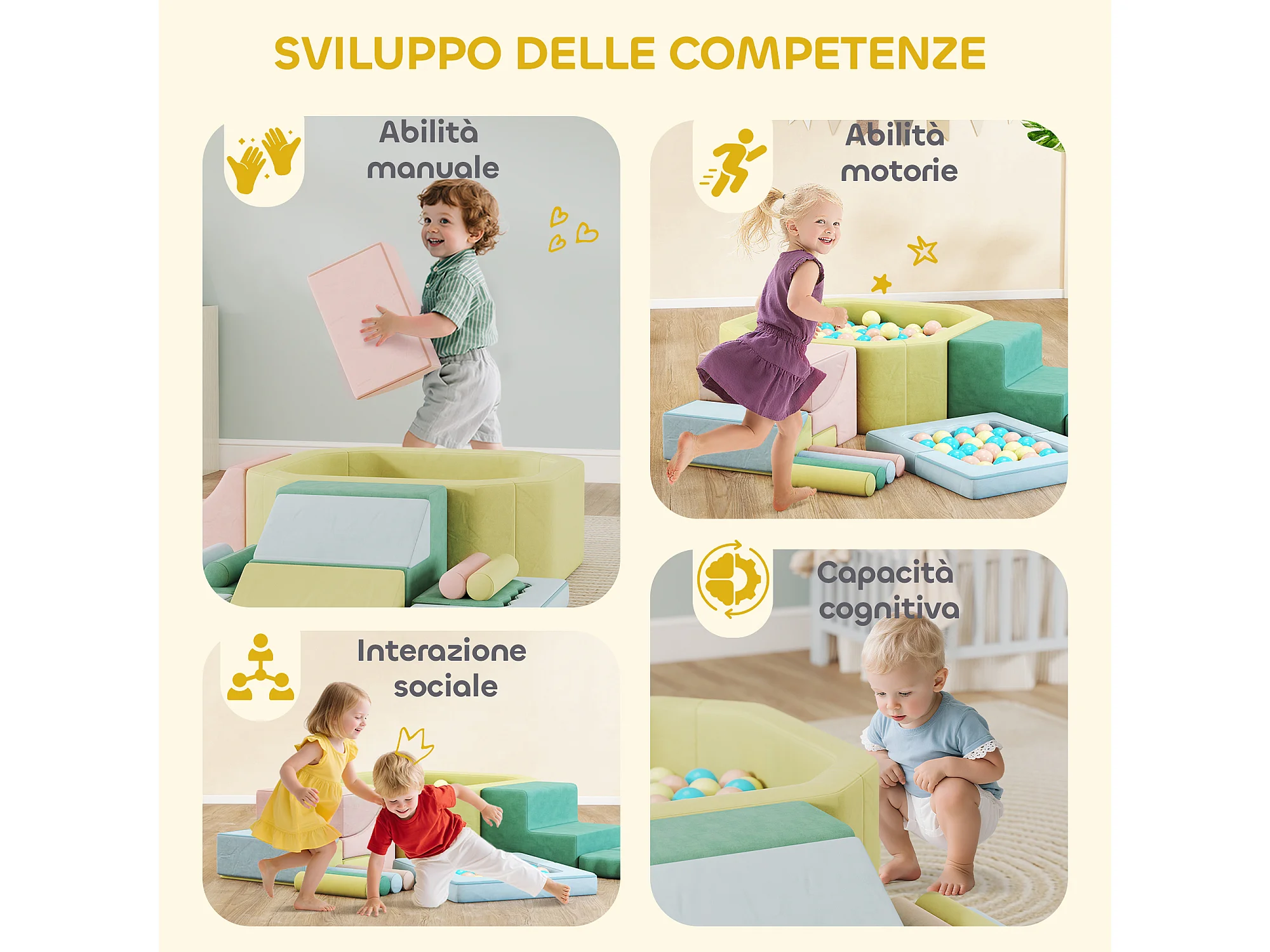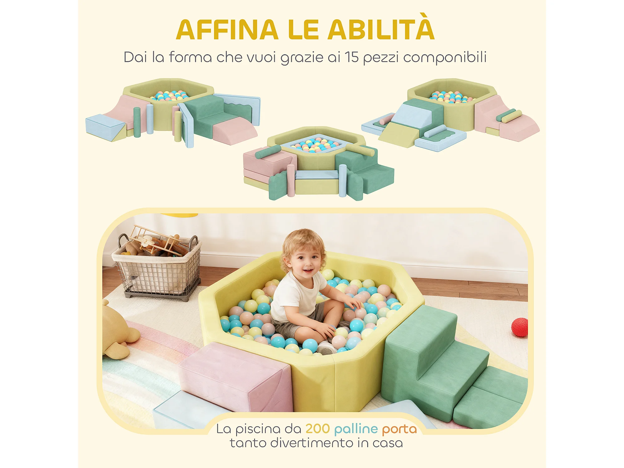 Set 15 blocchi morbidi per bambini modulabili con 200 palline