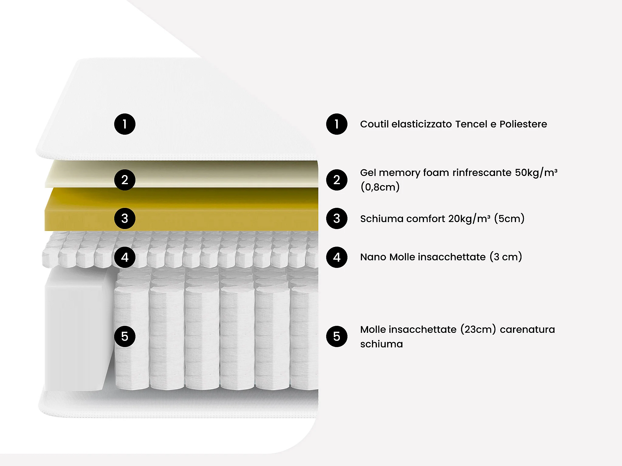 Set 160x200cm rete vano Bianco + mater. molle insacch. accog. nano molle + memory foam sp.32cm - IPOH di YSMÉE