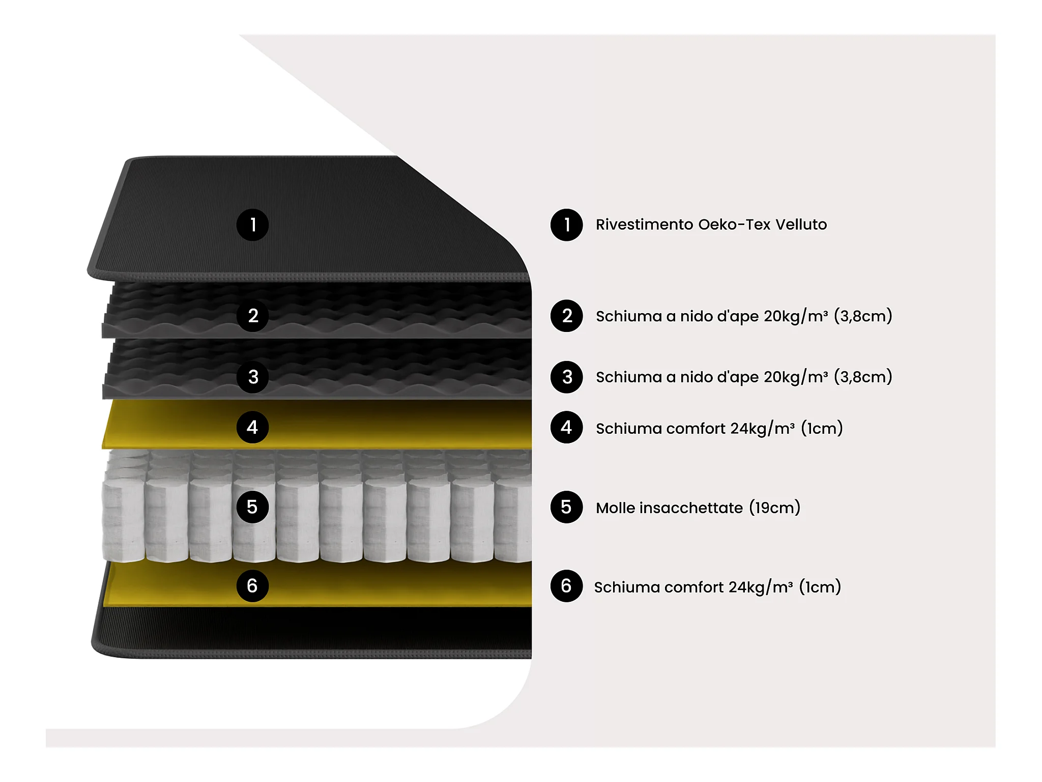 Set 160x200cm Rete vano Naturale chiaro + Materasso molle insac. topper integ. sp.28cm - BLACK DREAM di YSMÉE
