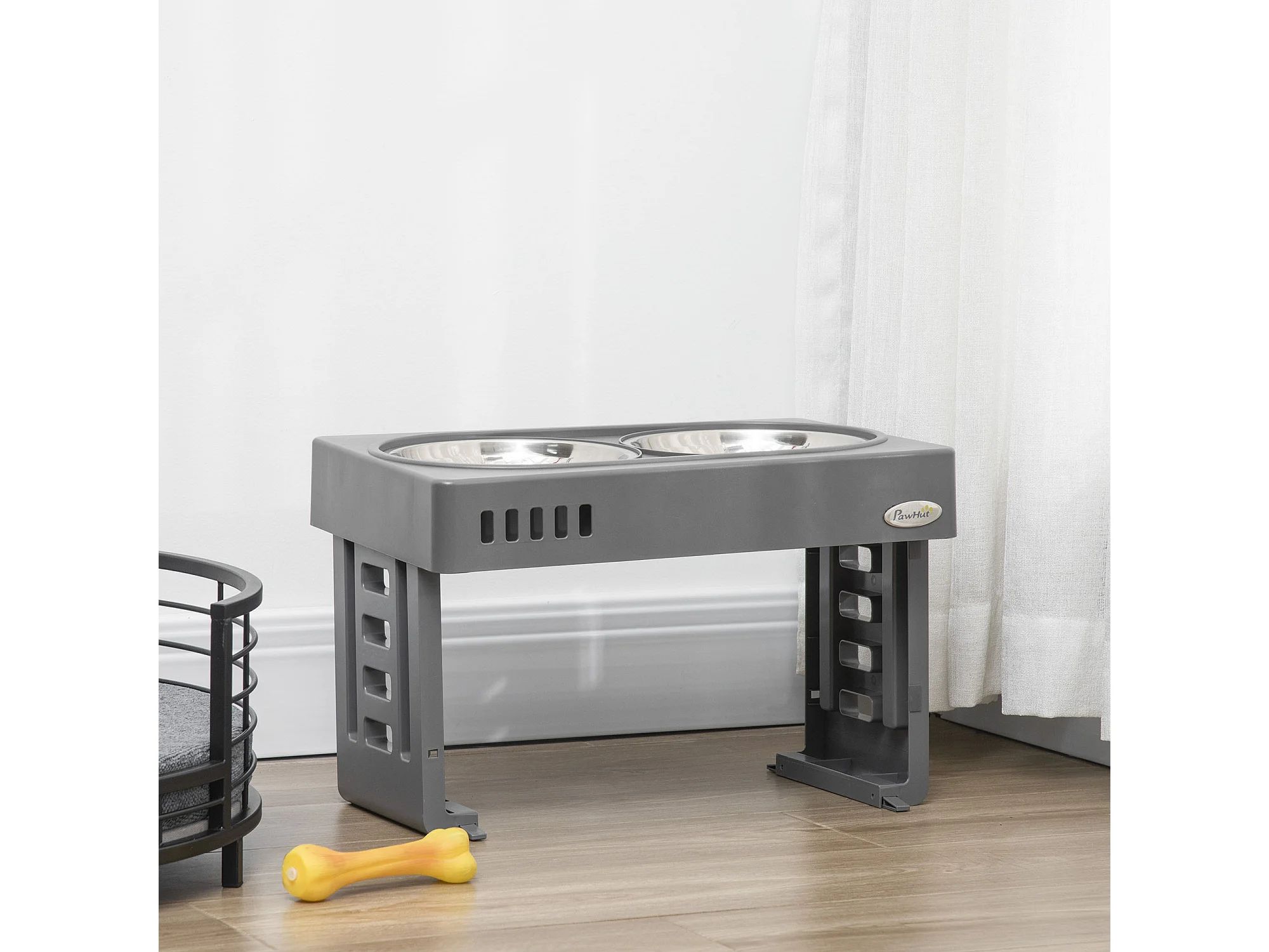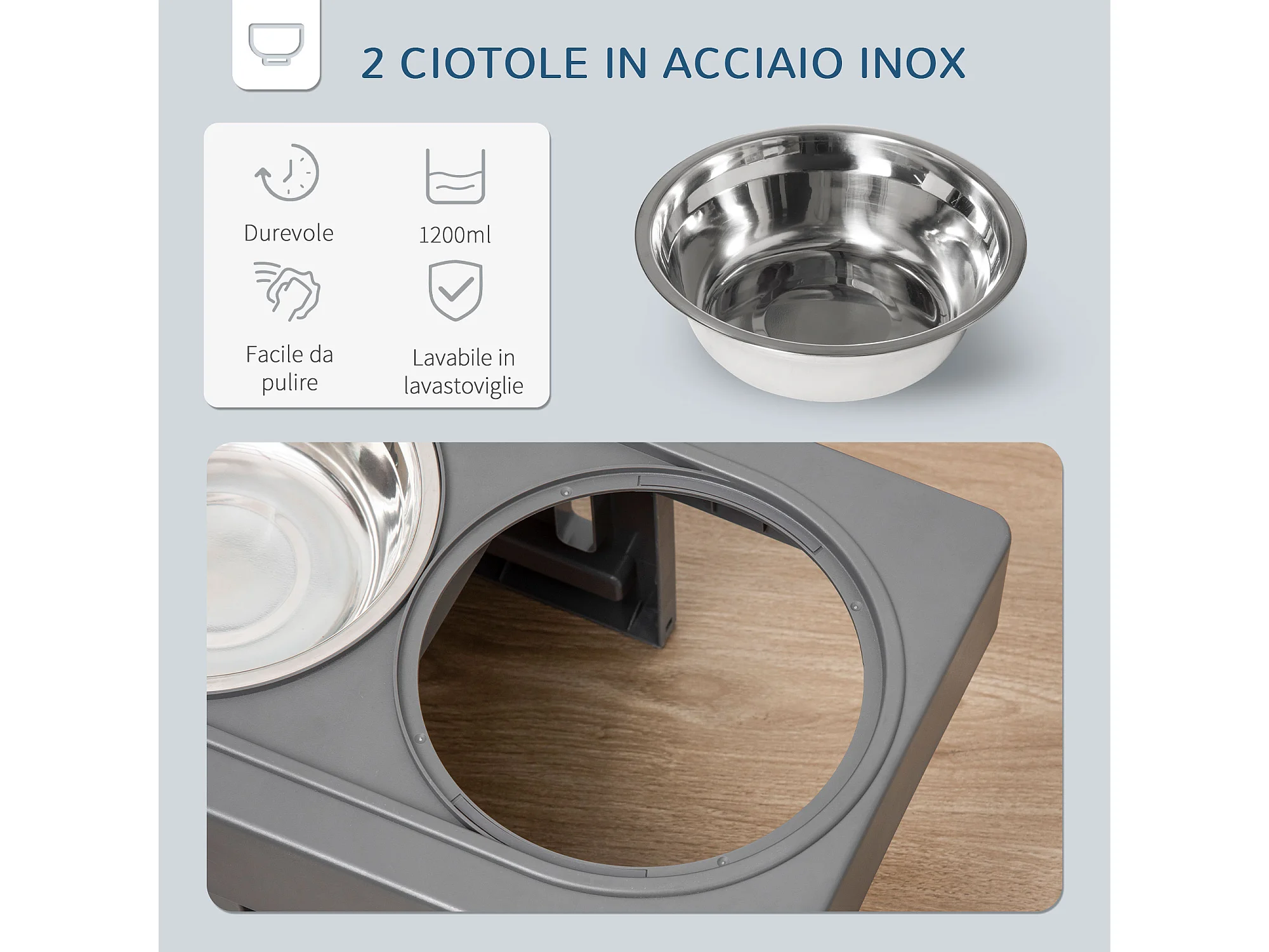 Ciotola rialzata per cani in acciaio inossidabile 2 scodelle grigio