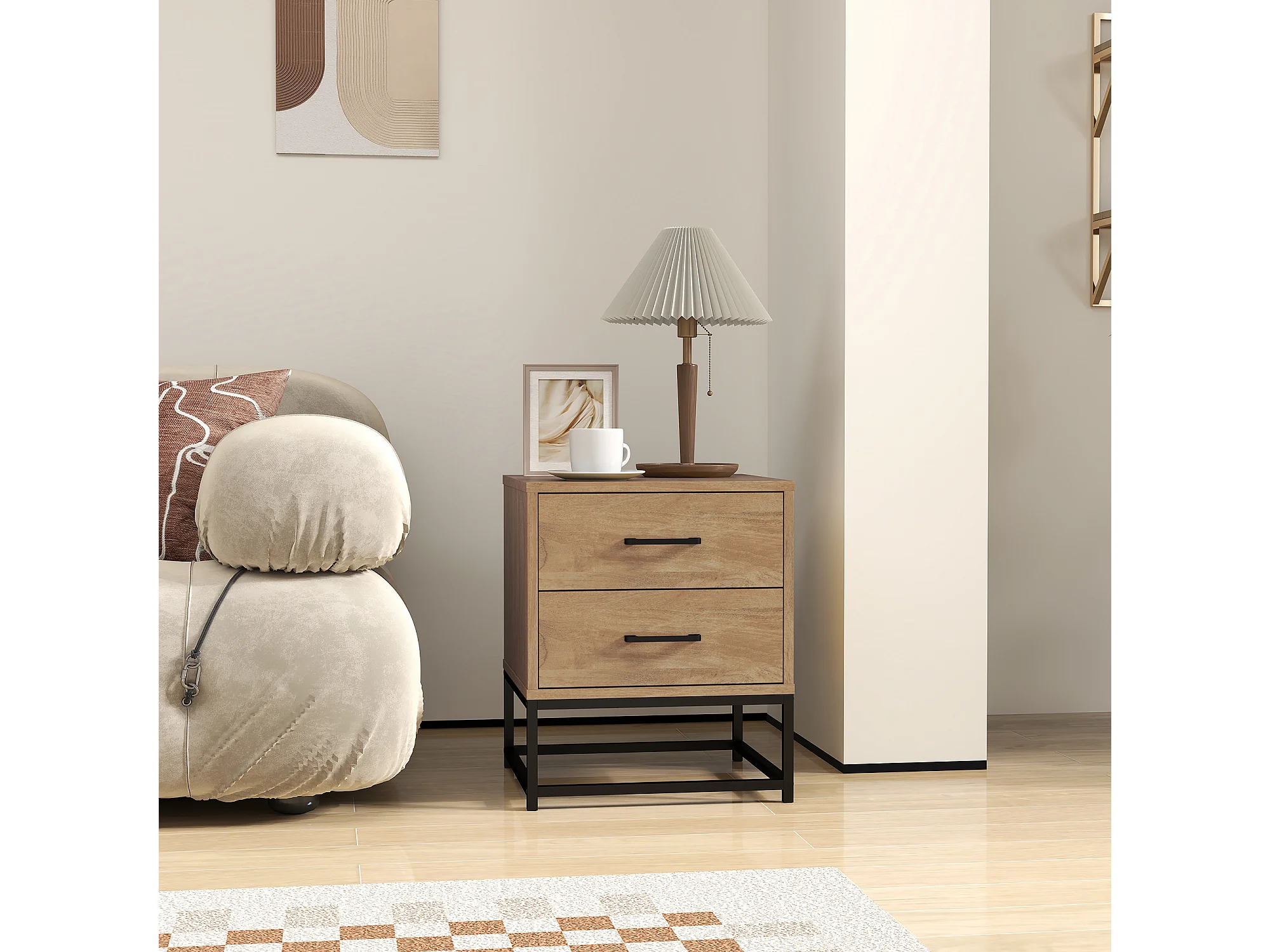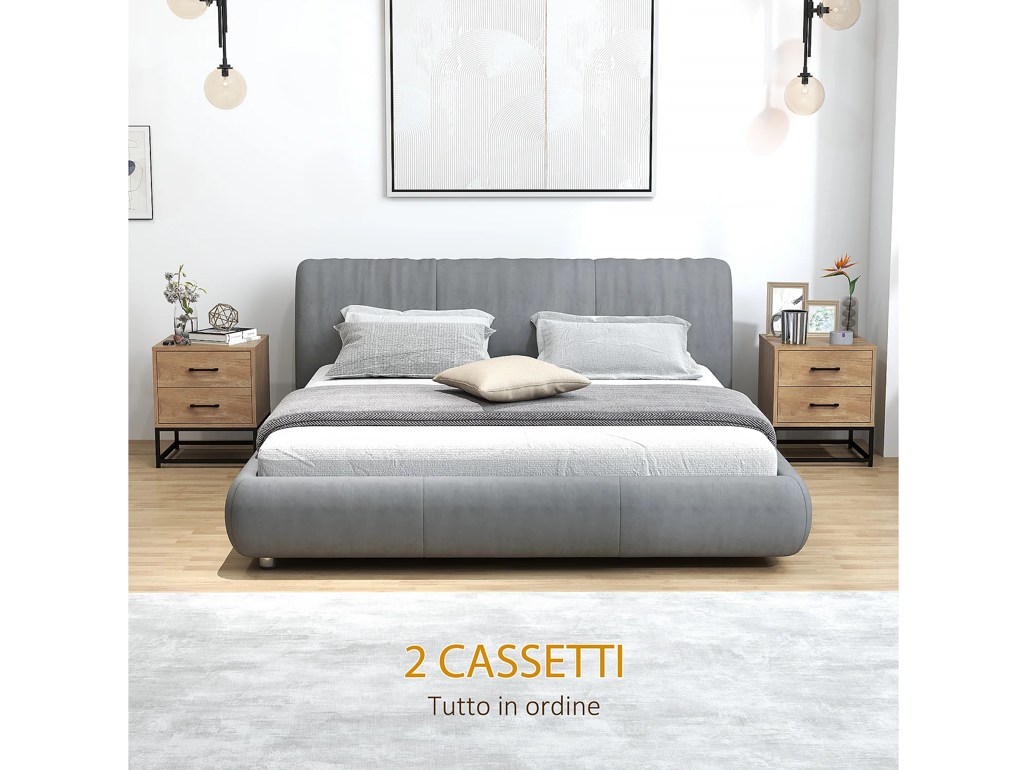 Set 2 comodini con 2 cassetti in stile industriale colore legno