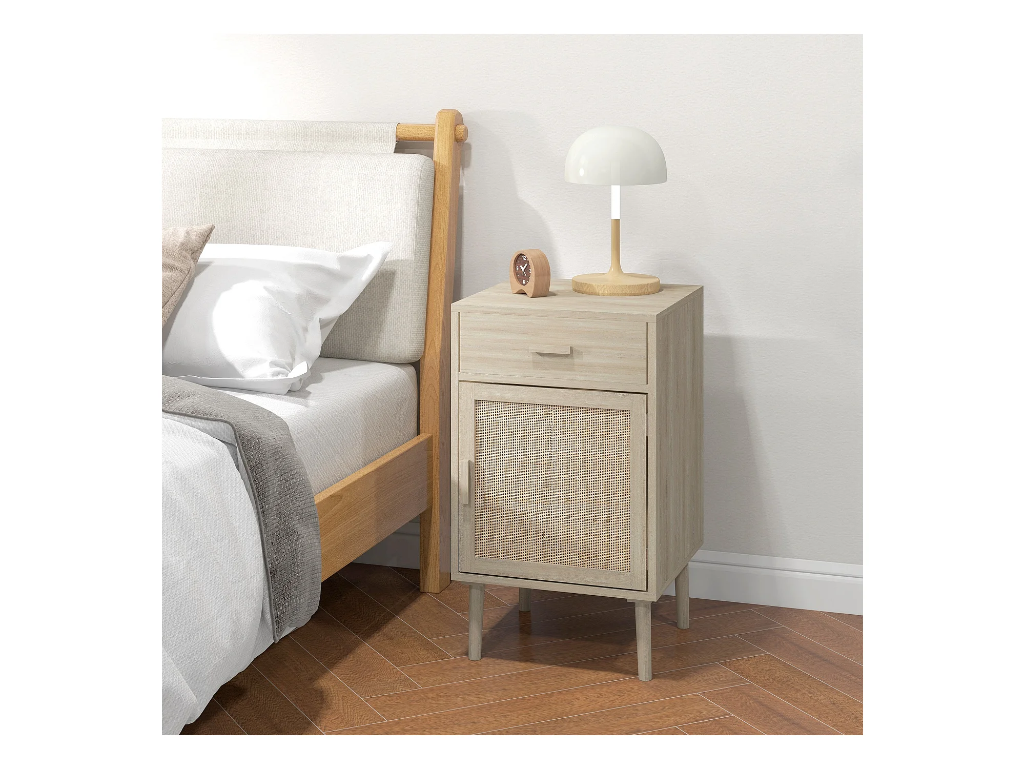 Set 2 comodini con cassetto e anta in rattan stile boho colore legno