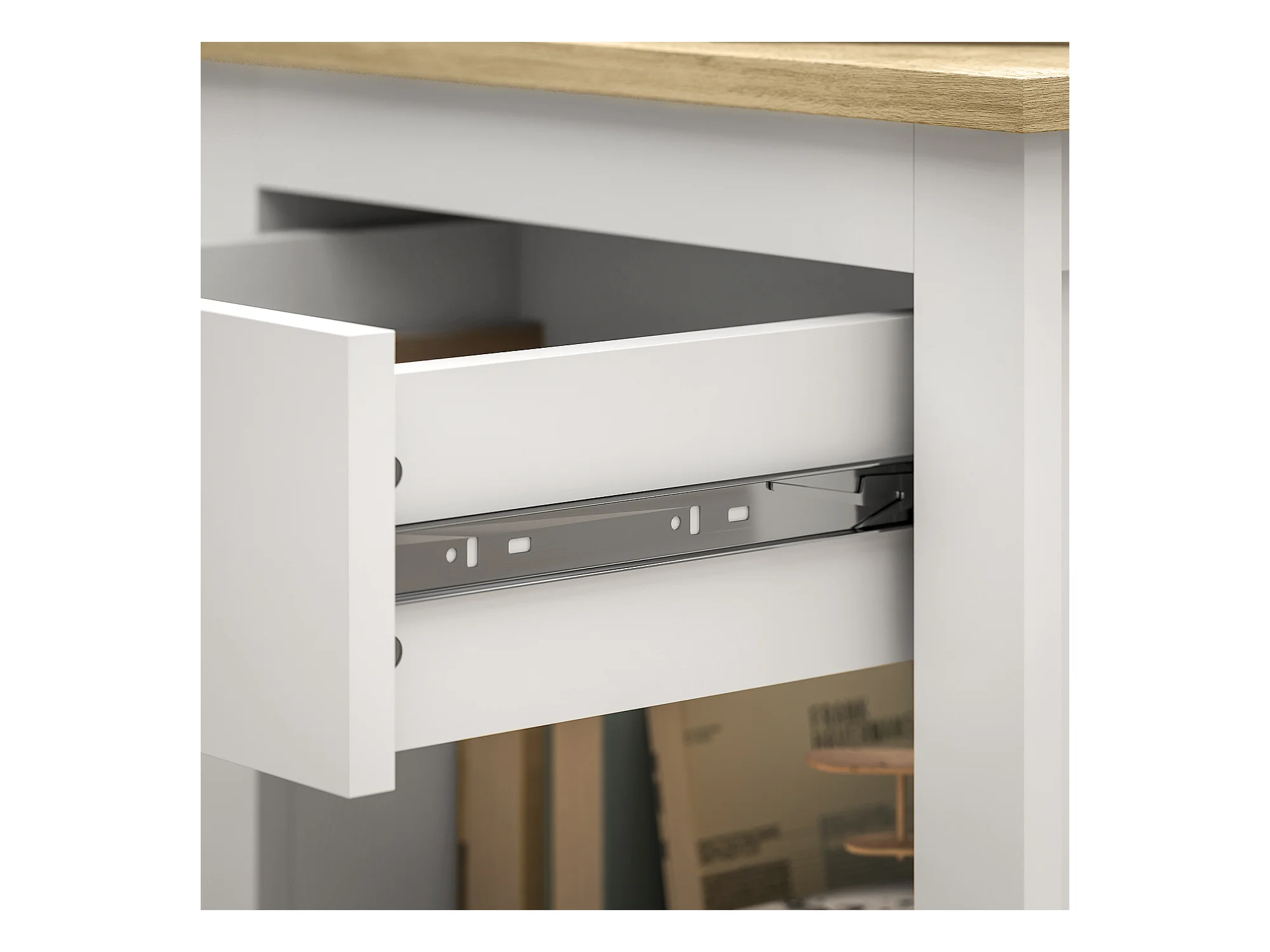 Comodino con cassetto dal design sospeso moderno in truciolato bianco