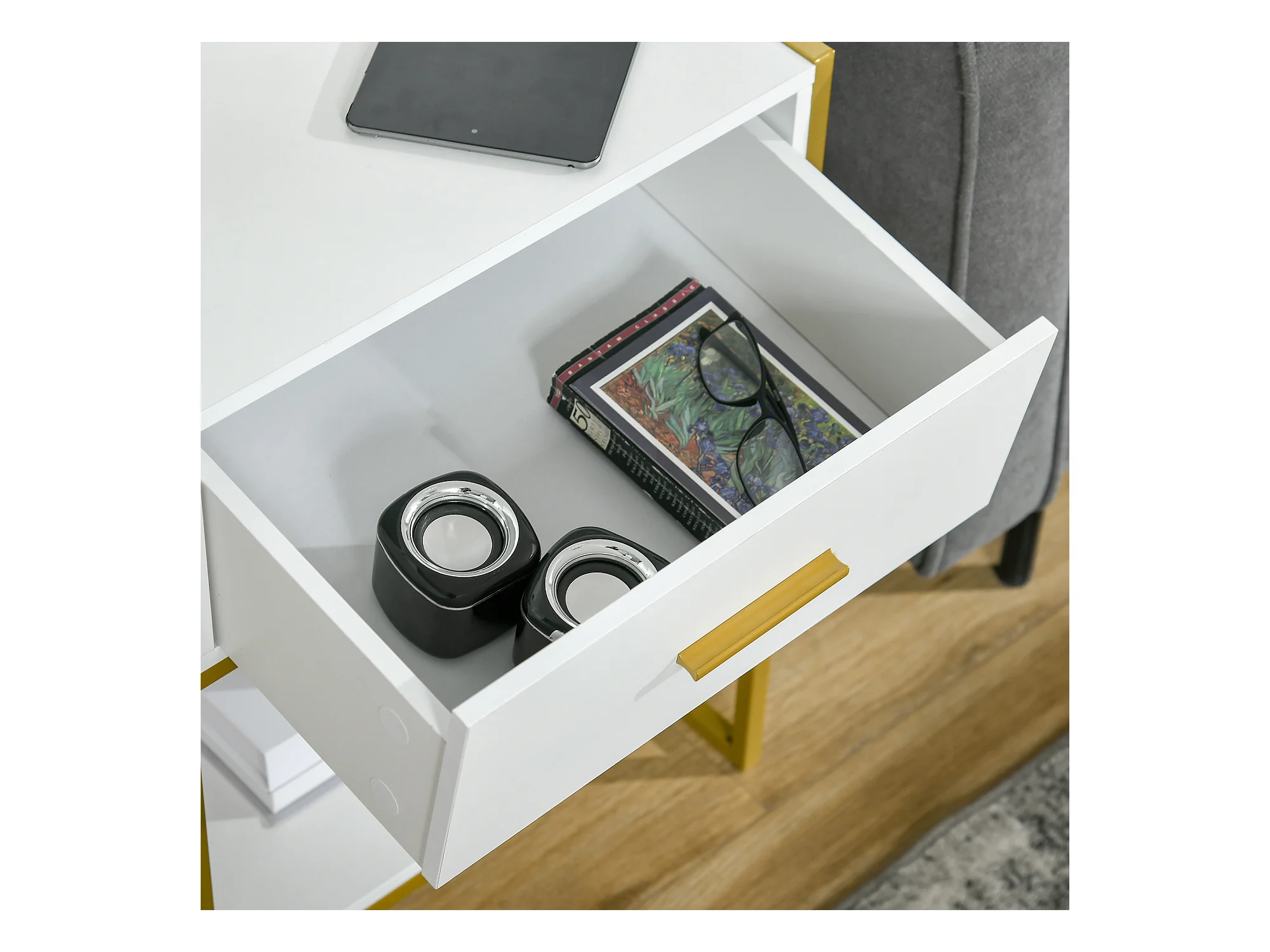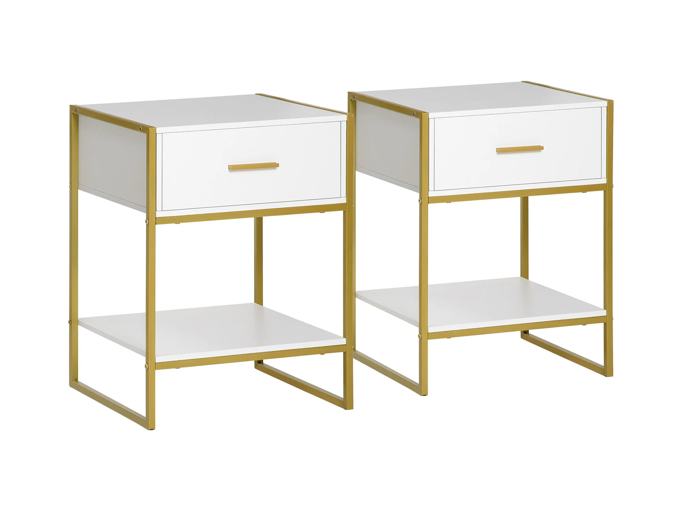 Set di 2 comodini moderni con cassetto e ripiano aperto bianco e oro