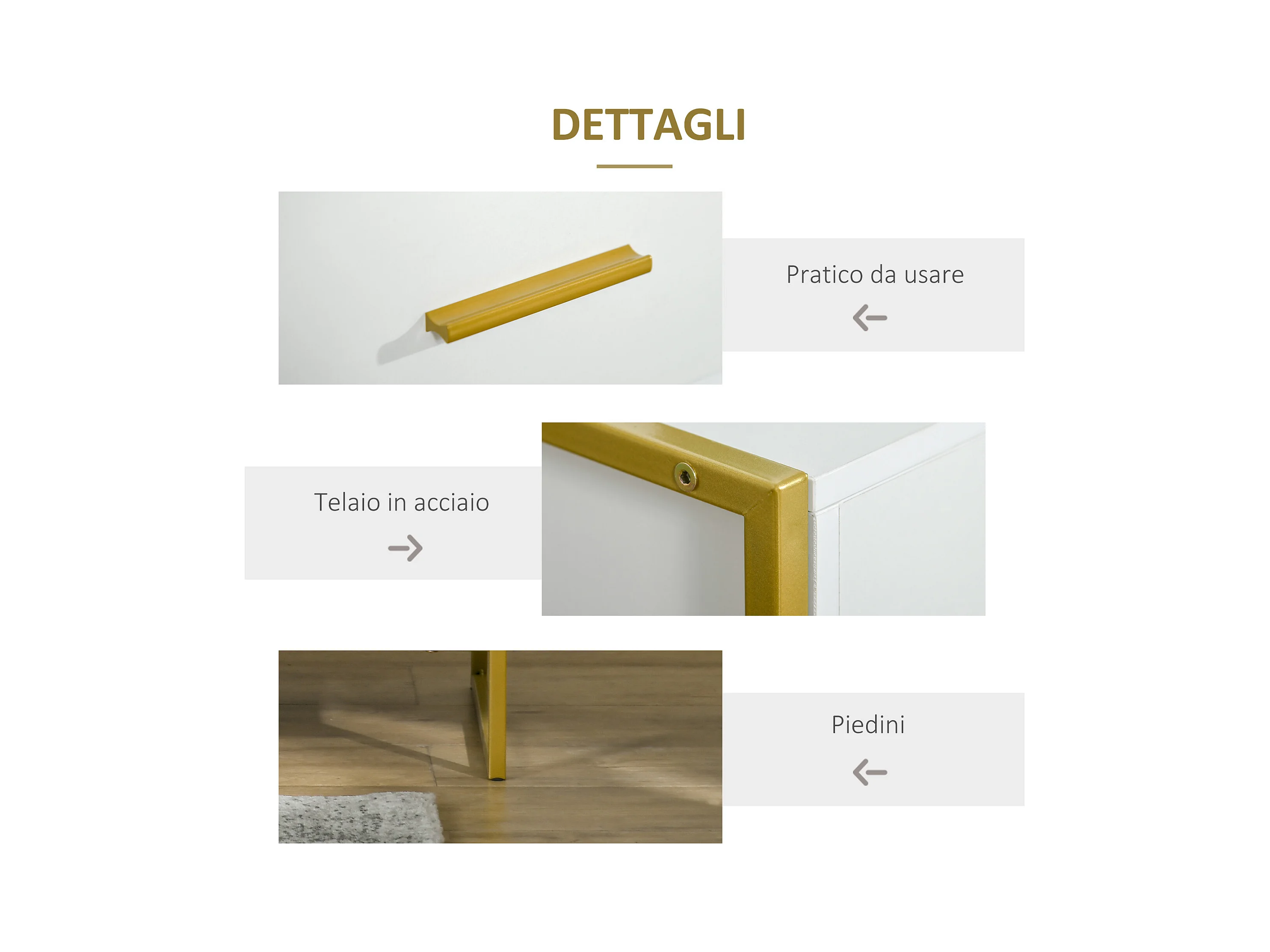 Set 2 comodini con cassetto e ripiano aperto in mdf acciaio bianco oro