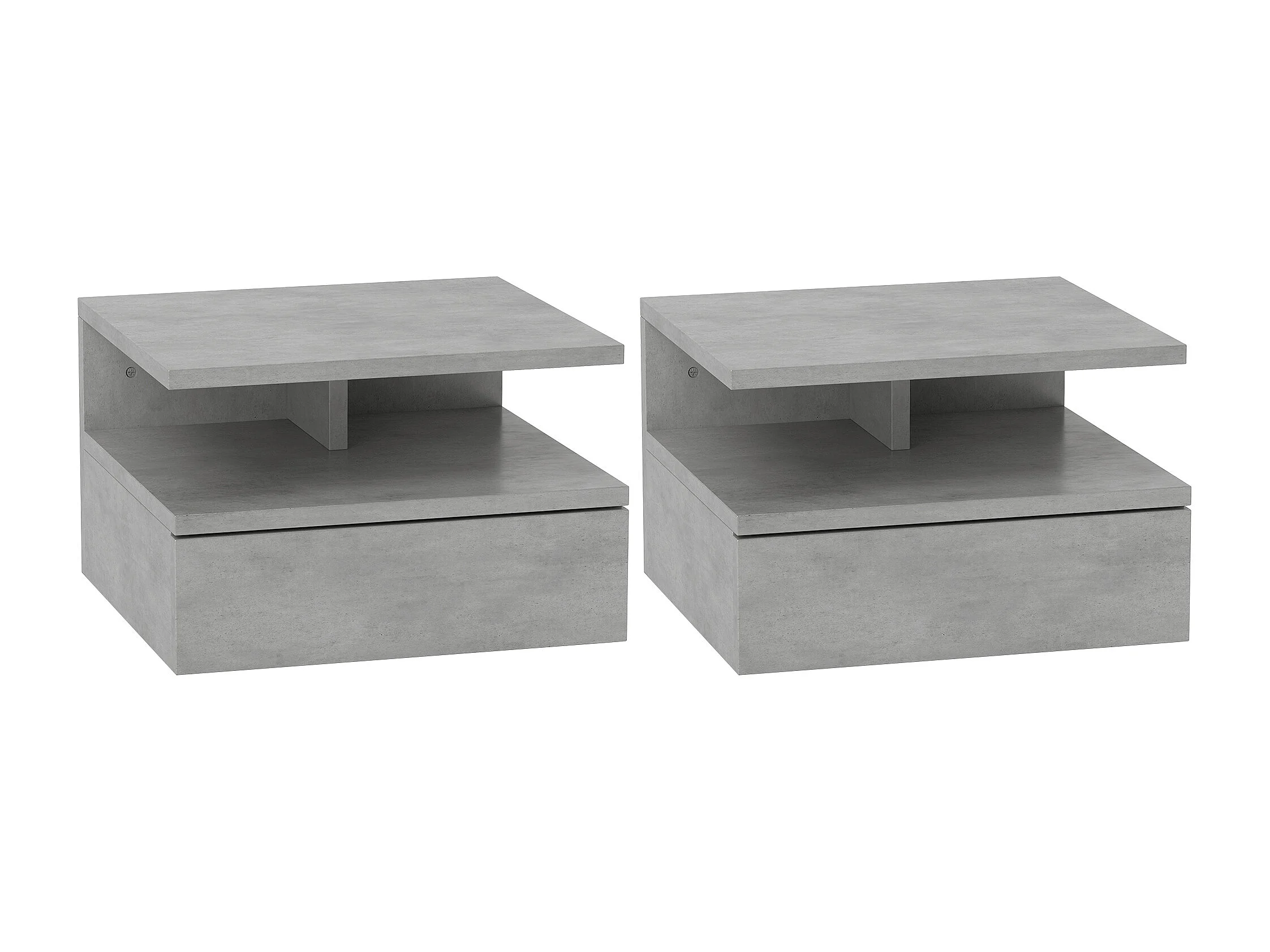 Set 2 comodini sospesi moderni con 2 cassetti grigio cemento