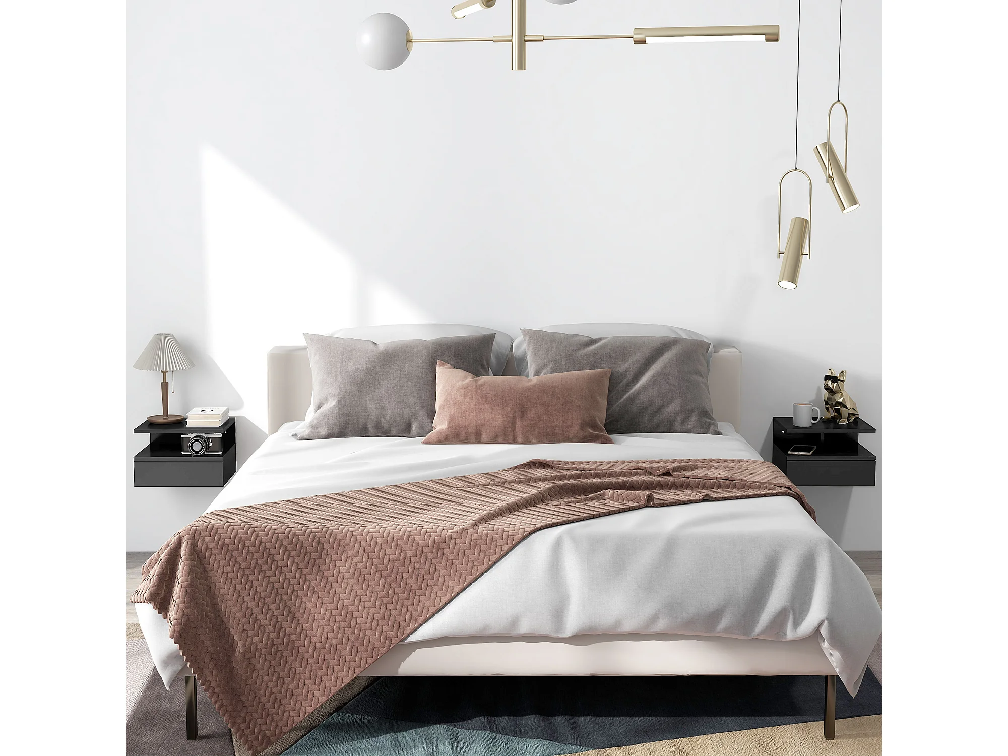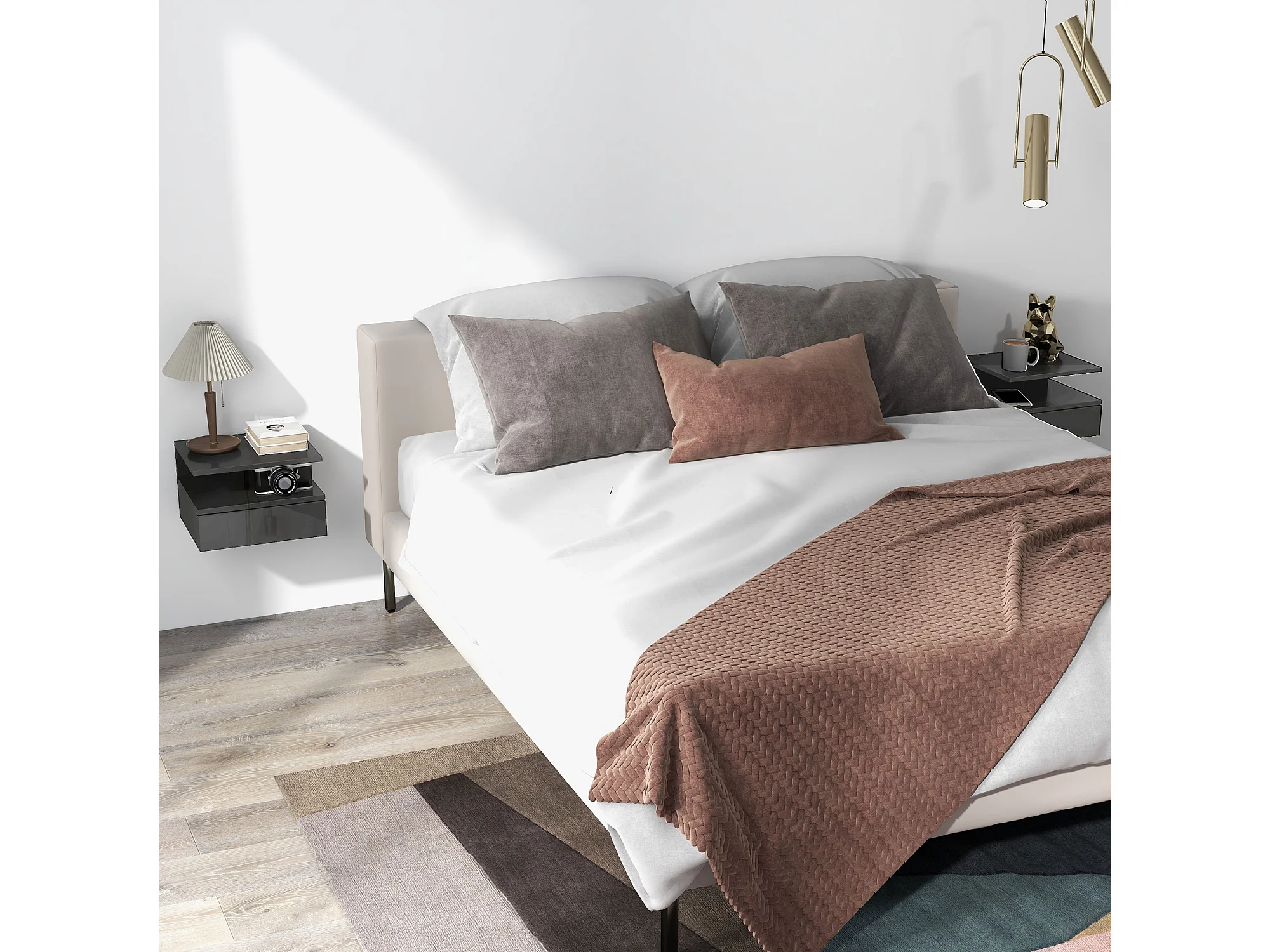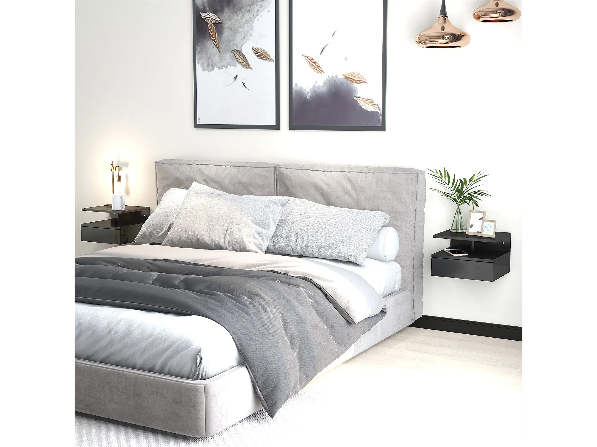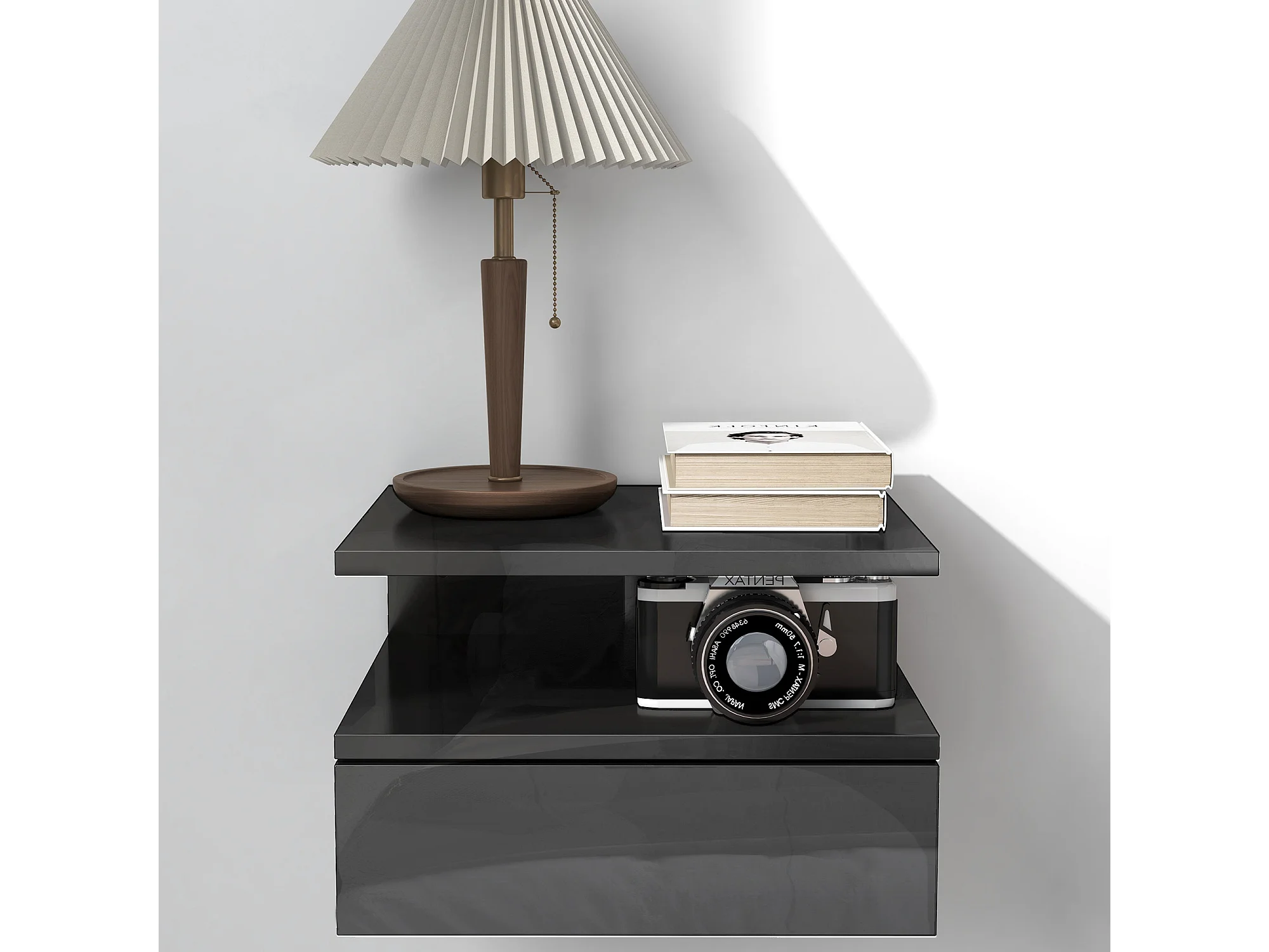 Set 2 comodini sospesi con cassetto e mensola nero lucido