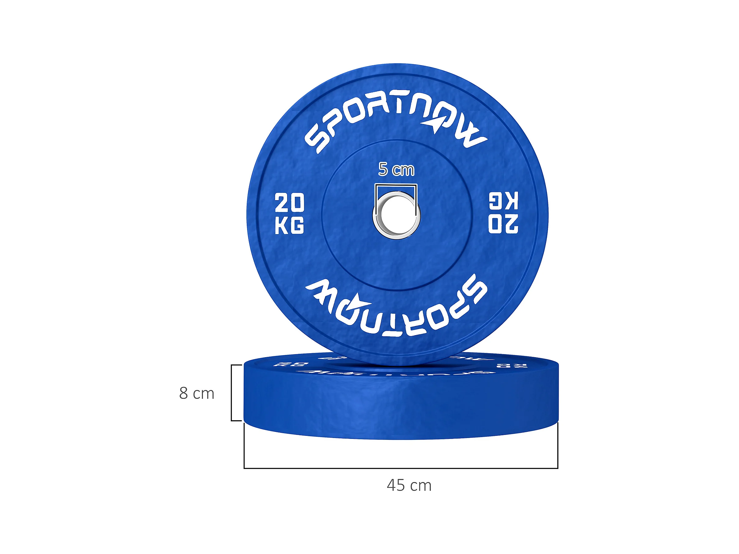 Set 2 dischi pesi 20 kg in gomma foro 5 cm per manubri e bilancieri blu