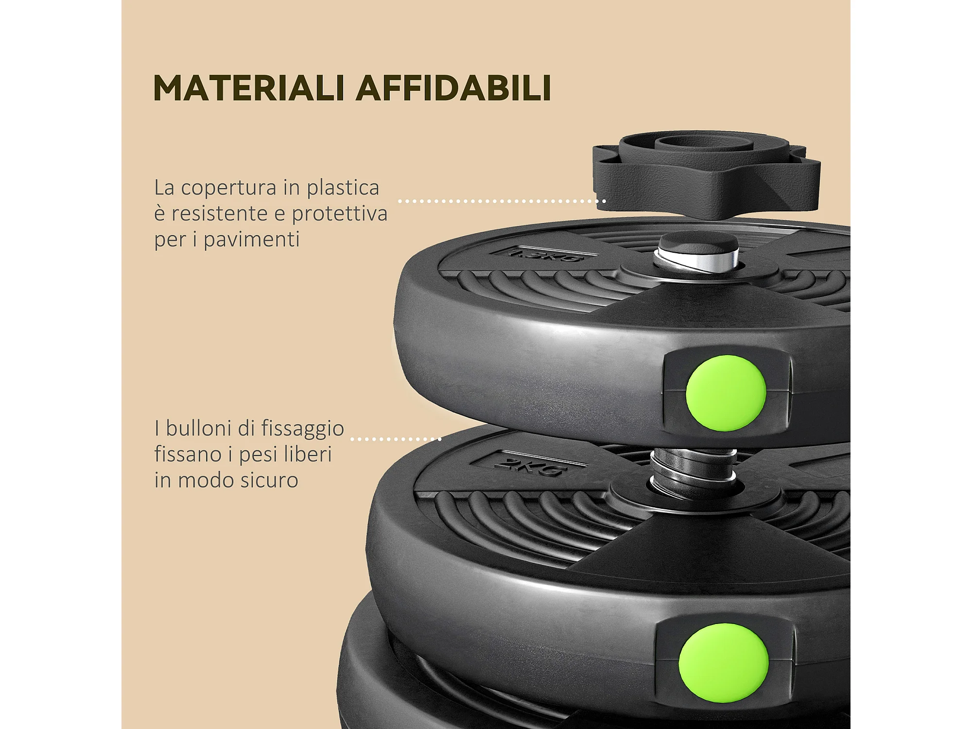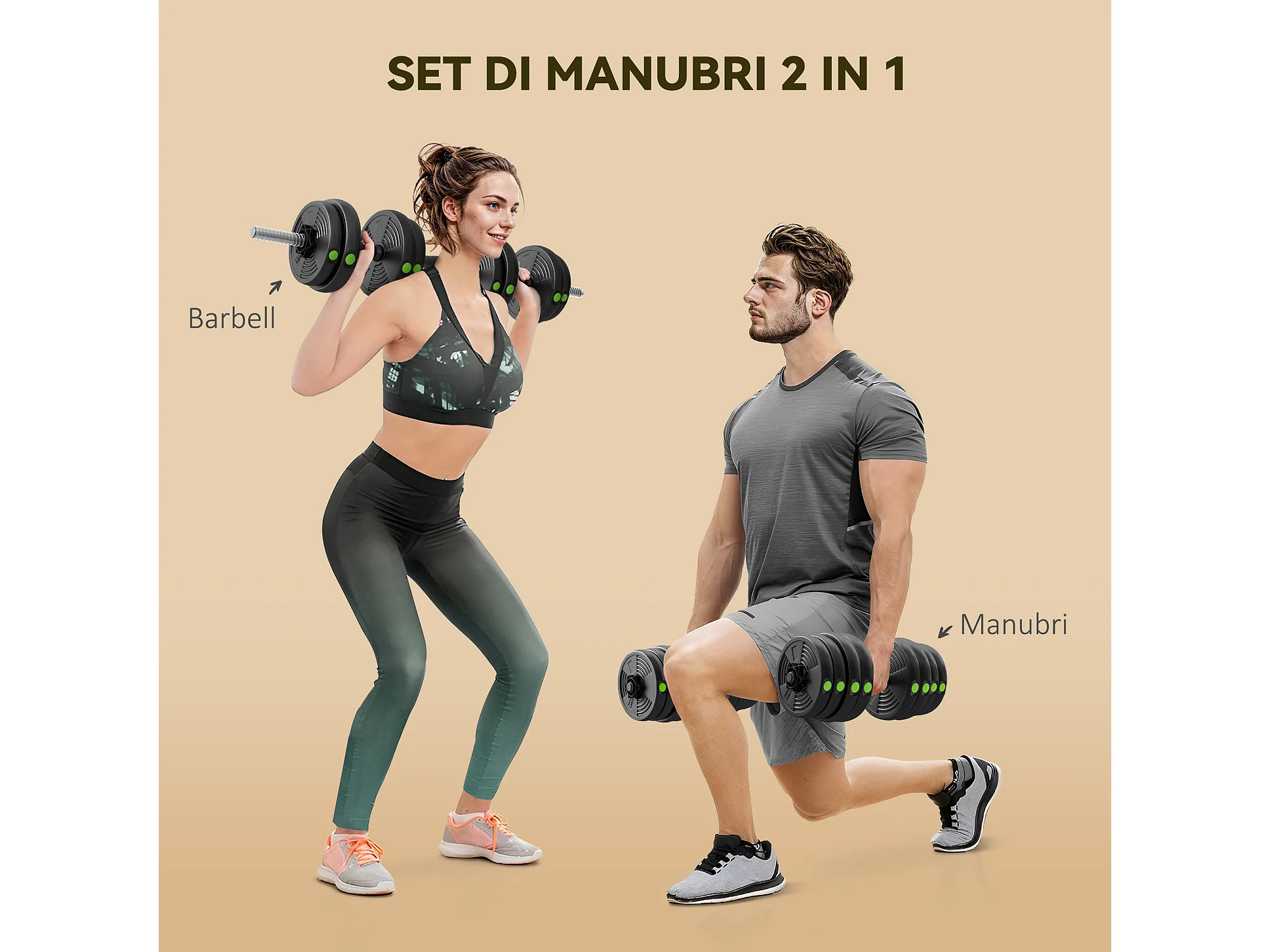 Set 2 manubri convertibili in bilanciere, 25kg totali con 12 dischi pesi