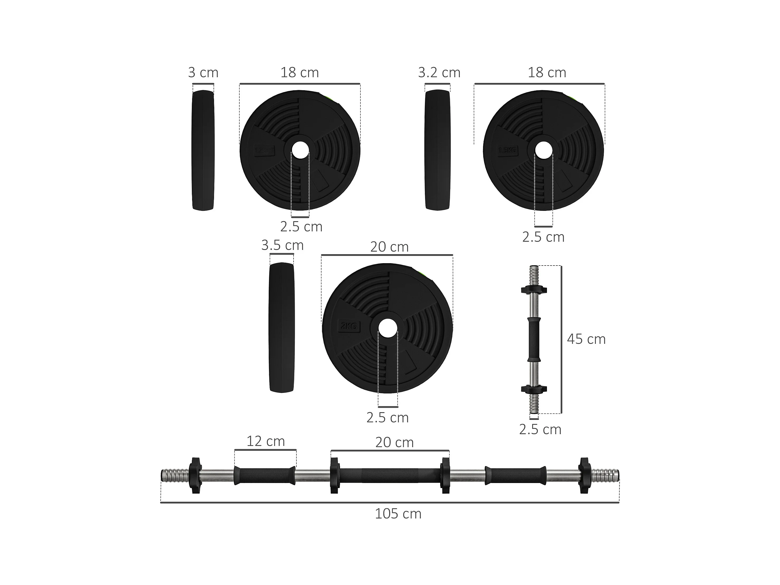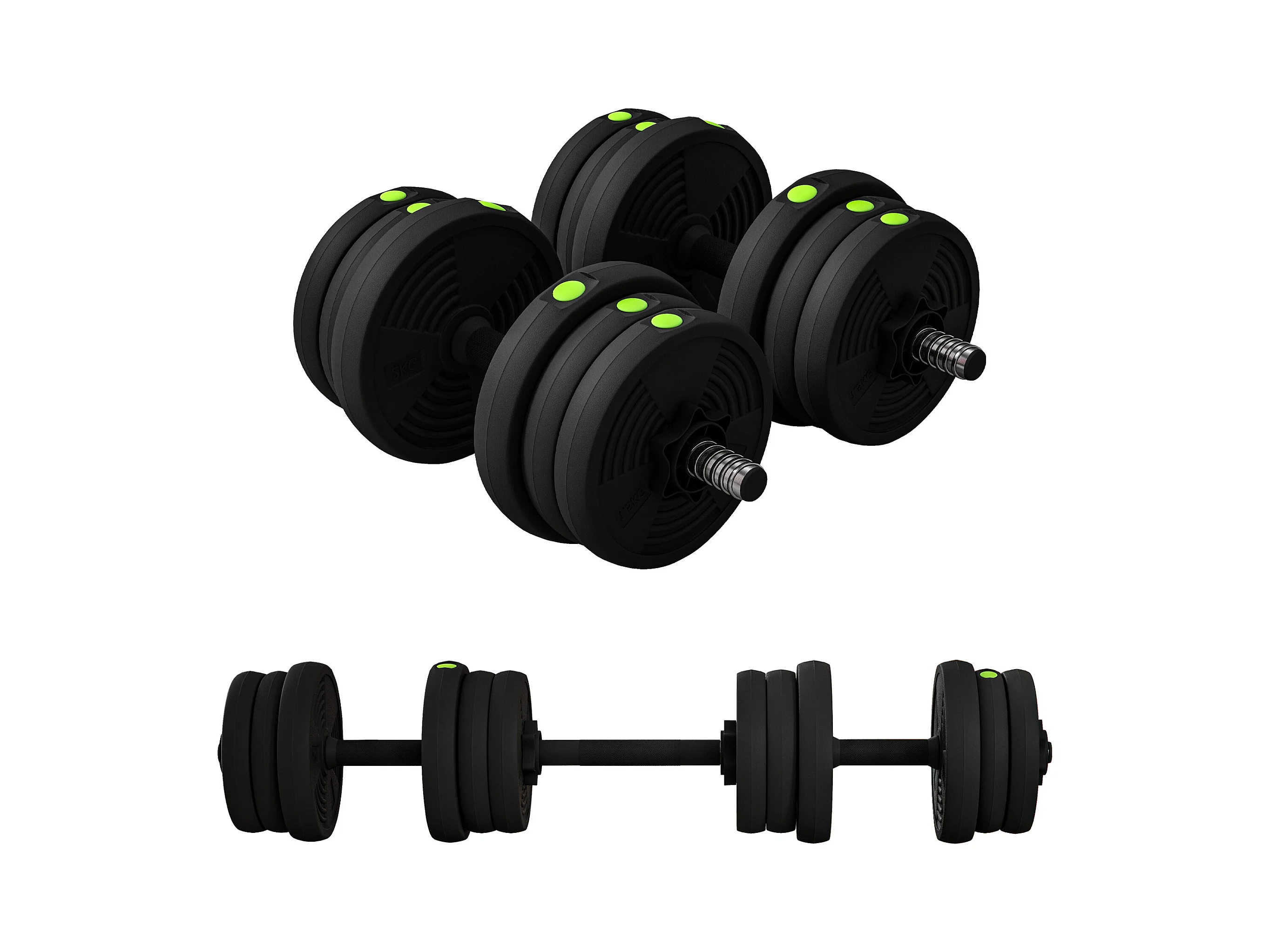 Set 2 in1 con 2 manubri convertibili in bilanciere peso totale 20kg