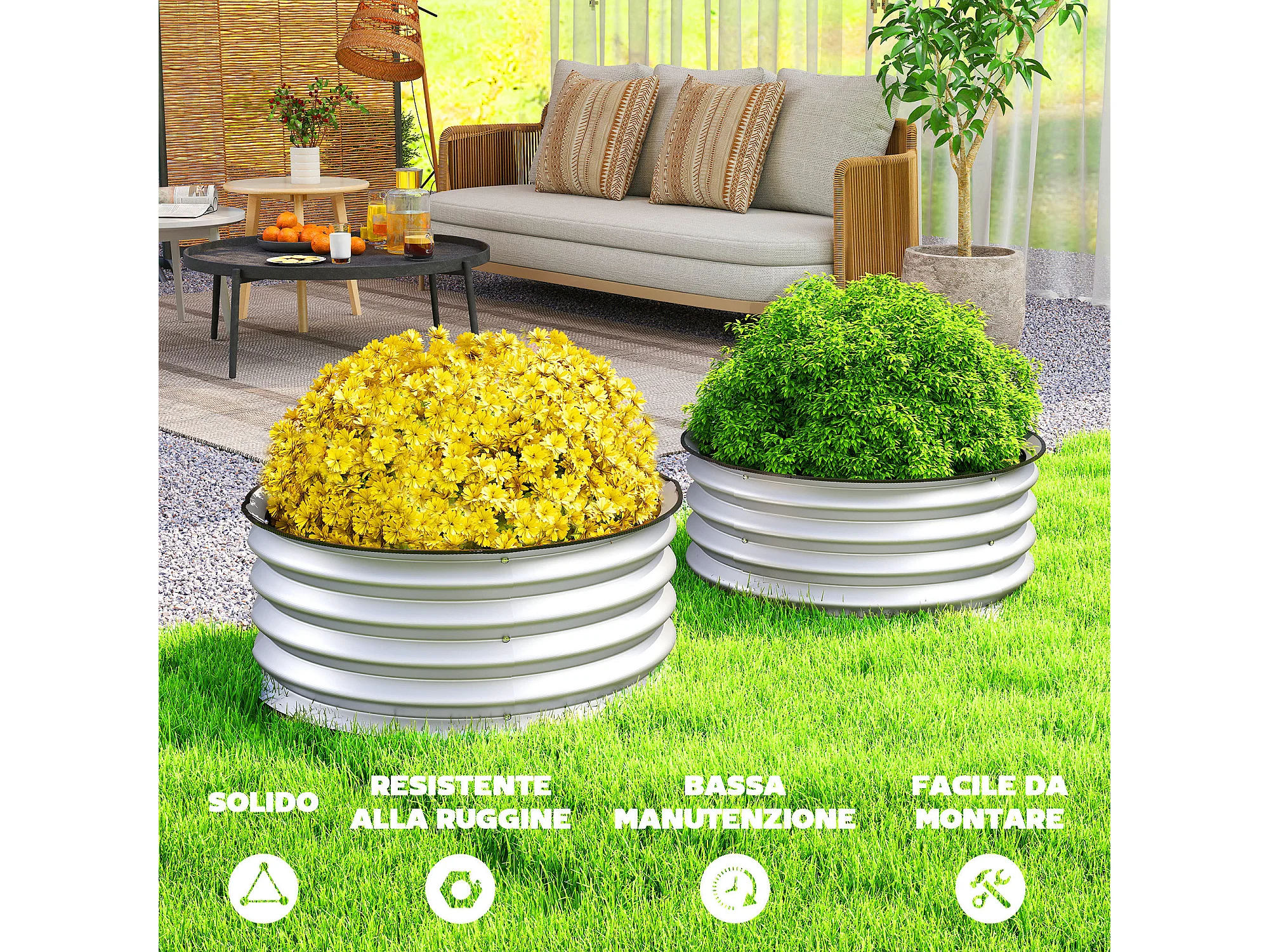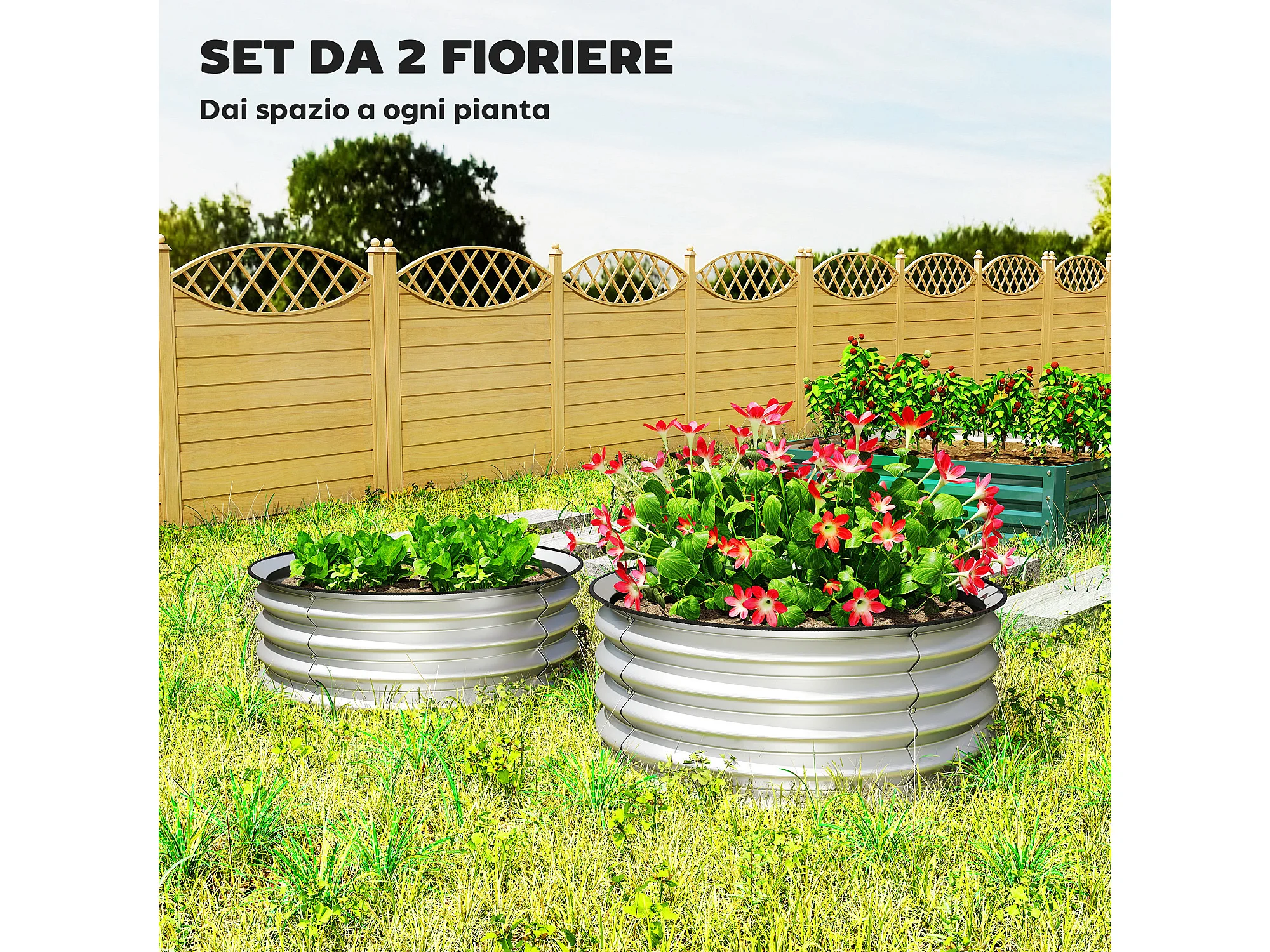 Set 2 letti per orto rialzato con fondo aperto in acciaio ø60x30cm