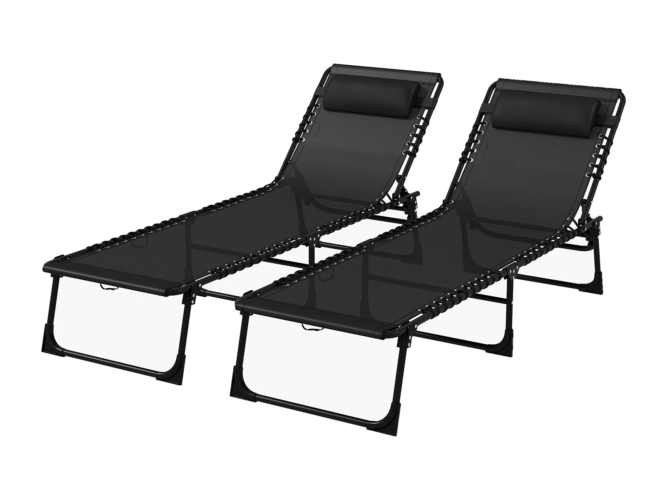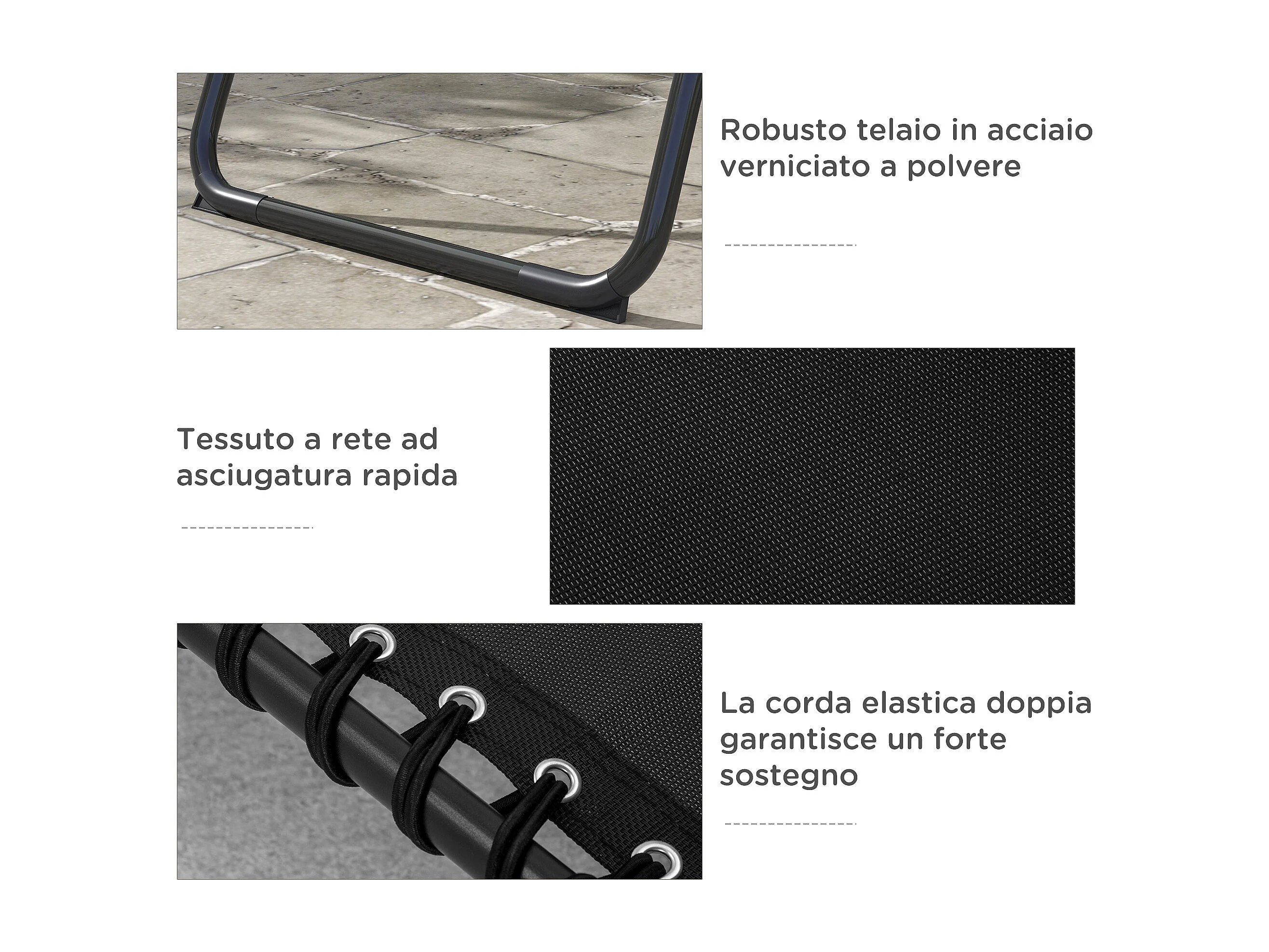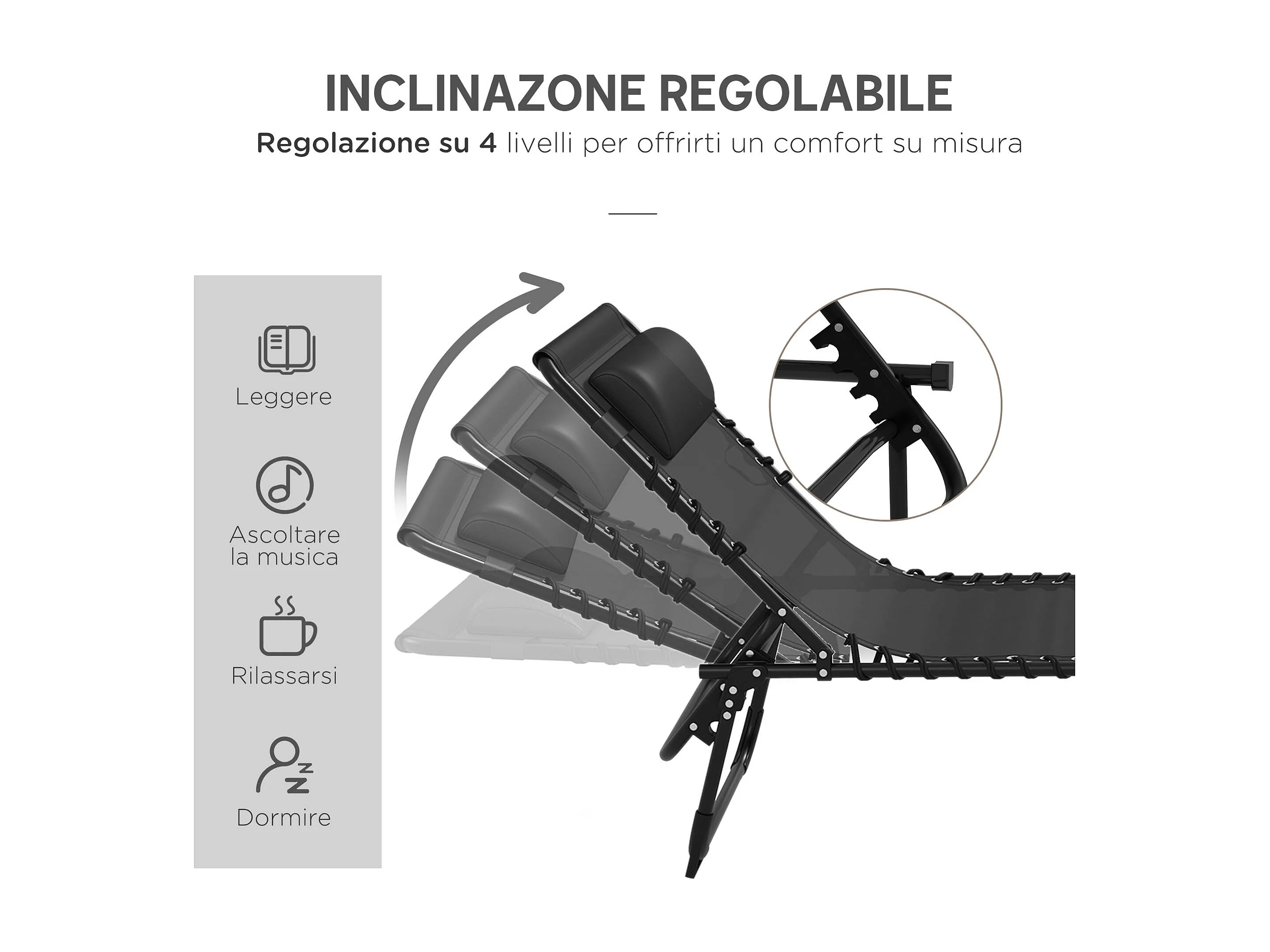 Set 2 lettini prendisole con schienale reclinabile 4 livelli nero