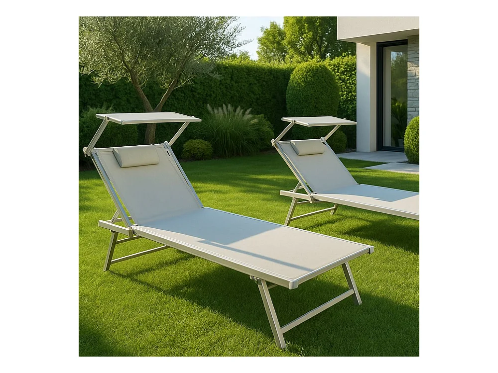 Set di 2 lettini prendisole con tavolo in textilene e acciaio