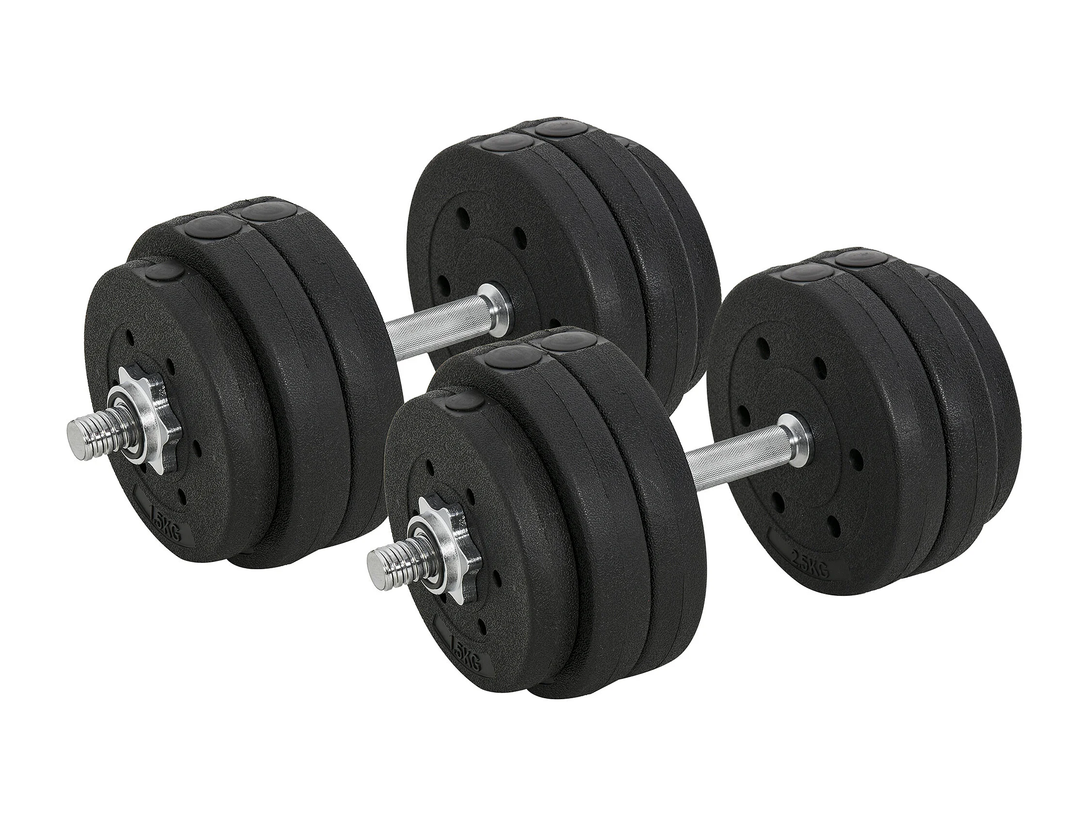 Set 2 manubri convertibili in bilanciere, 25kg totali con 12 dischi pesi