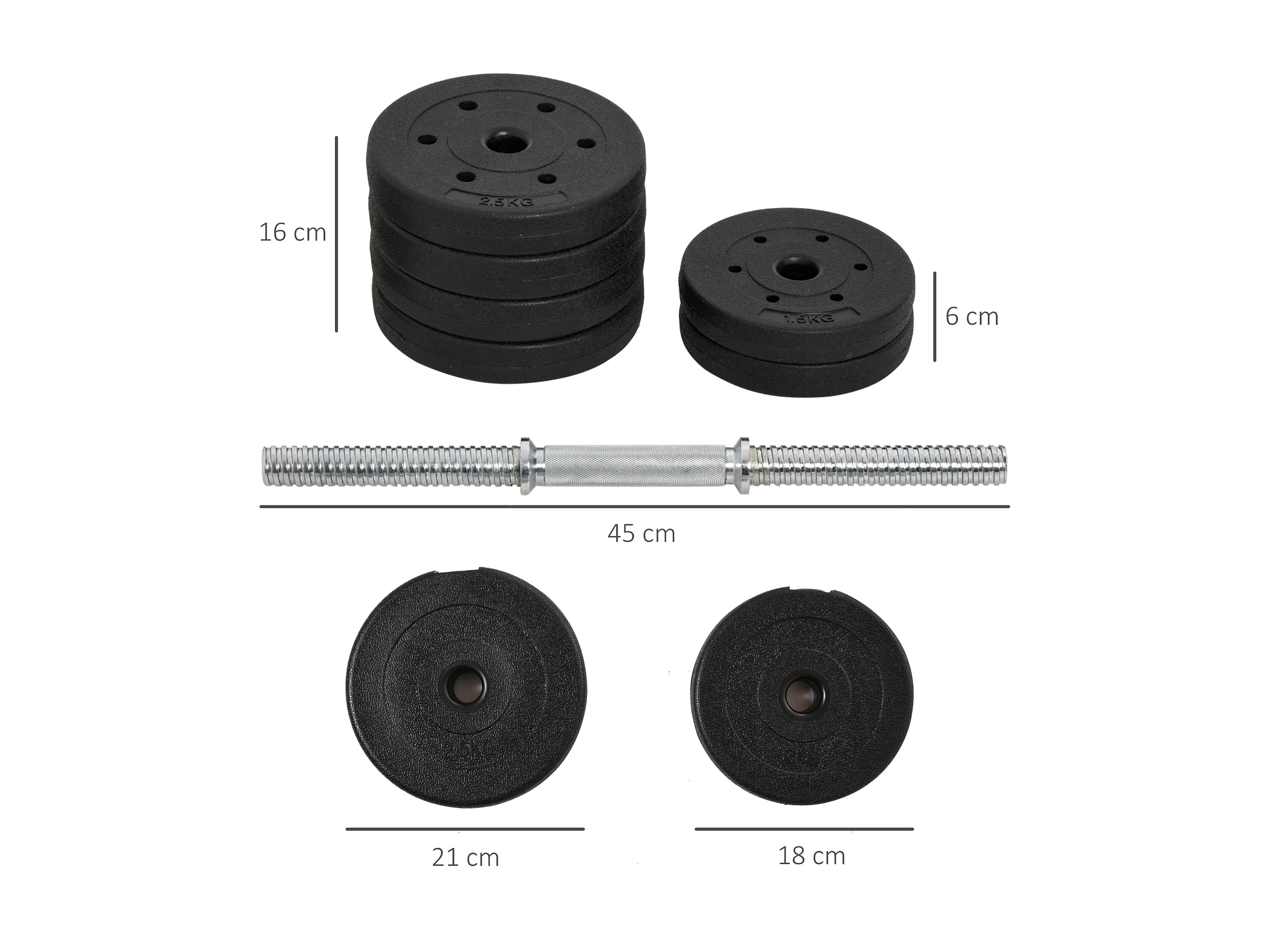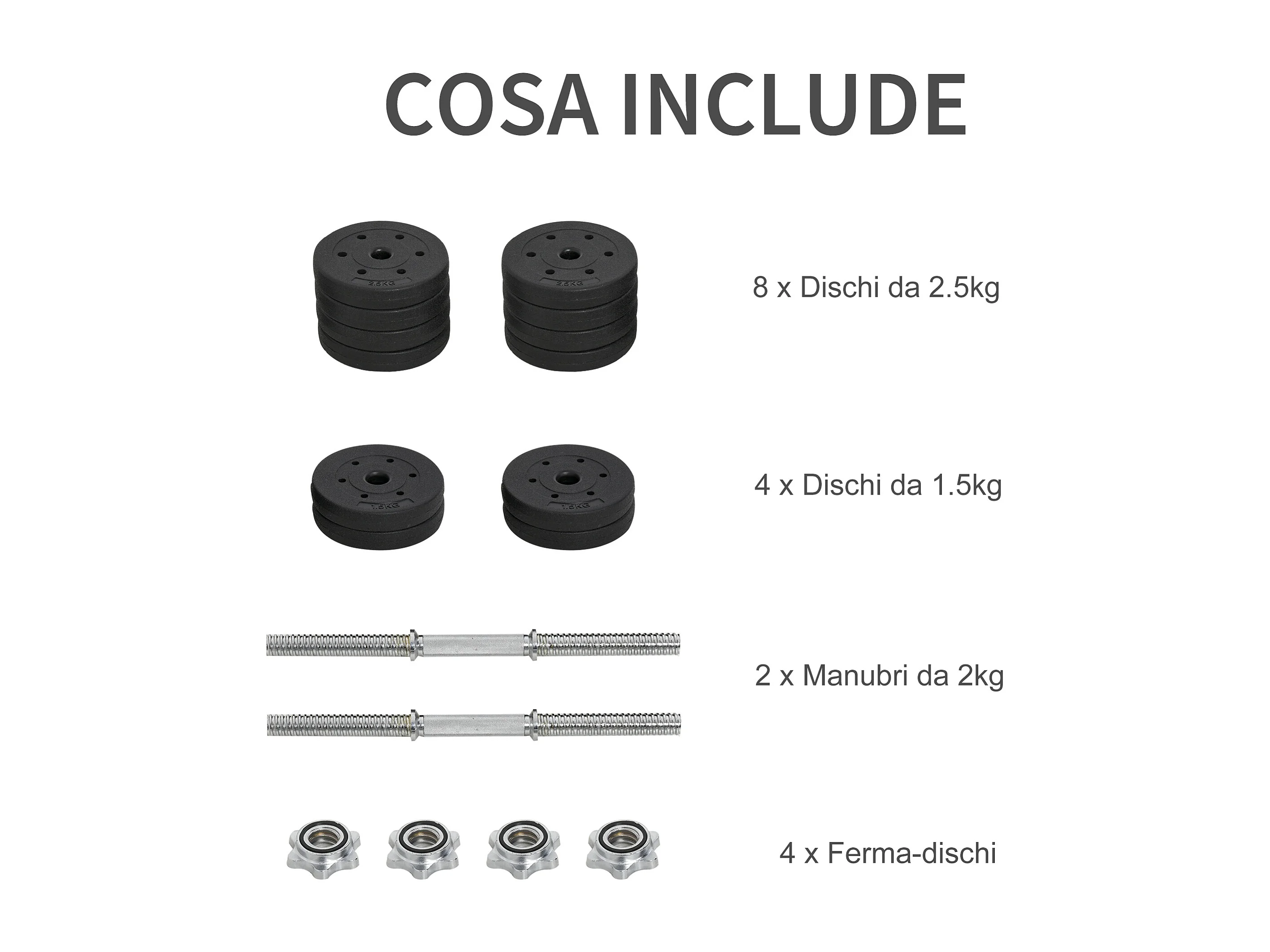 Set 2 Manubri 30kg Totali con 12 Dischi in Acciaio