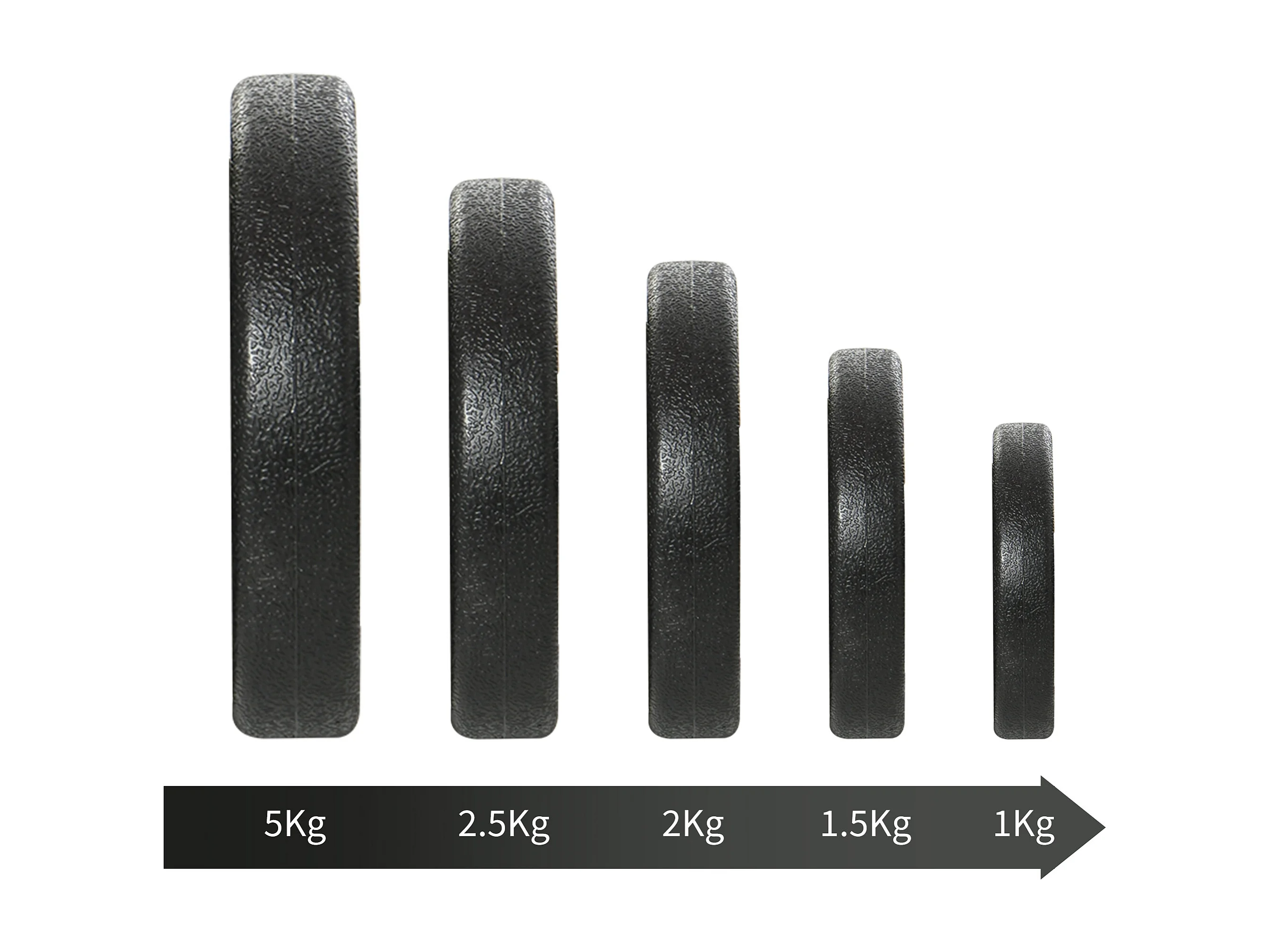 Set di dischi pesi 2x2.5 kg con foro da 5 cm e 3 impugnature