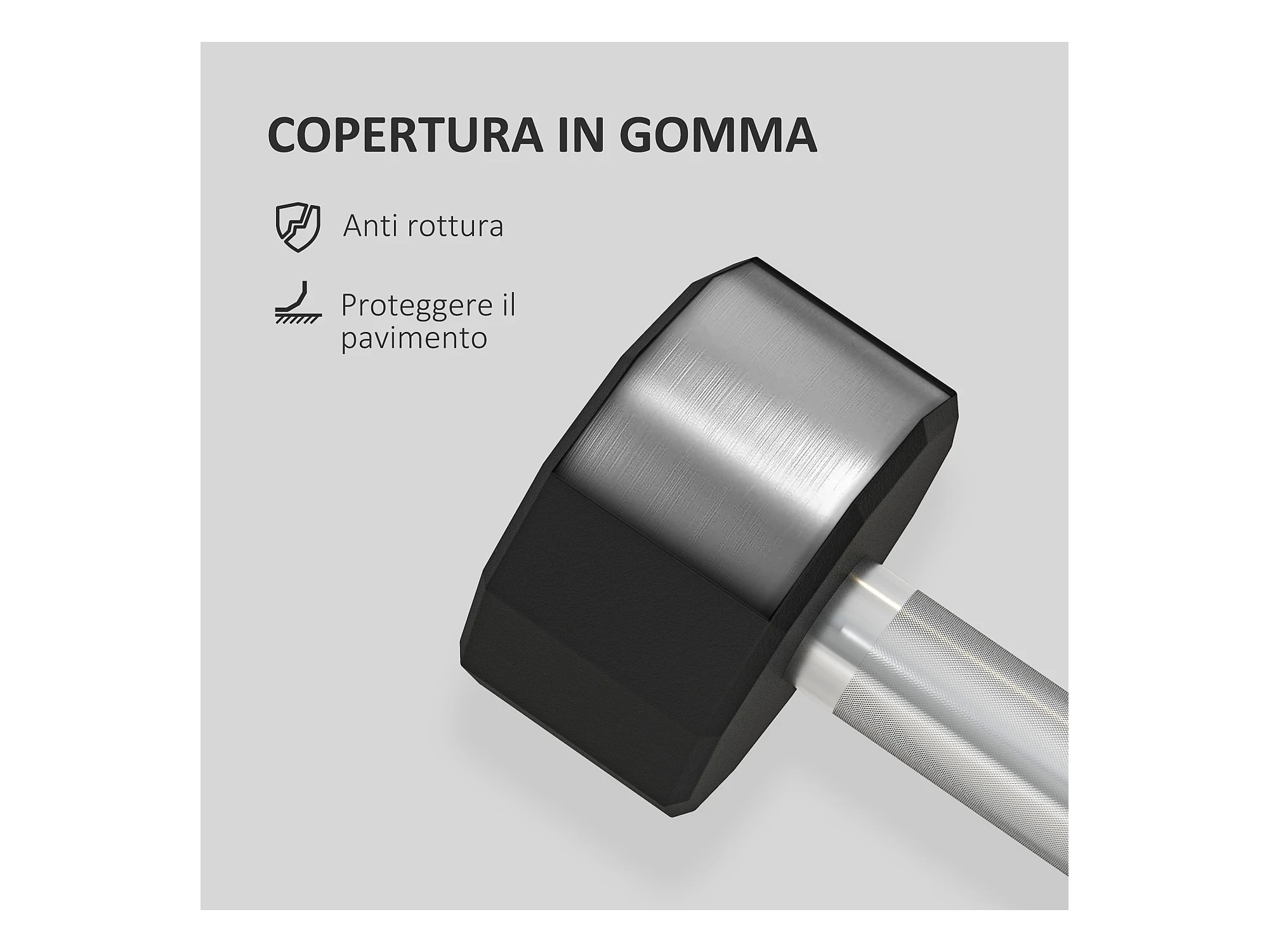 Set 2 manubri a 12 lati da 8 kg in metallo e gomma 26x12x12 cm nero