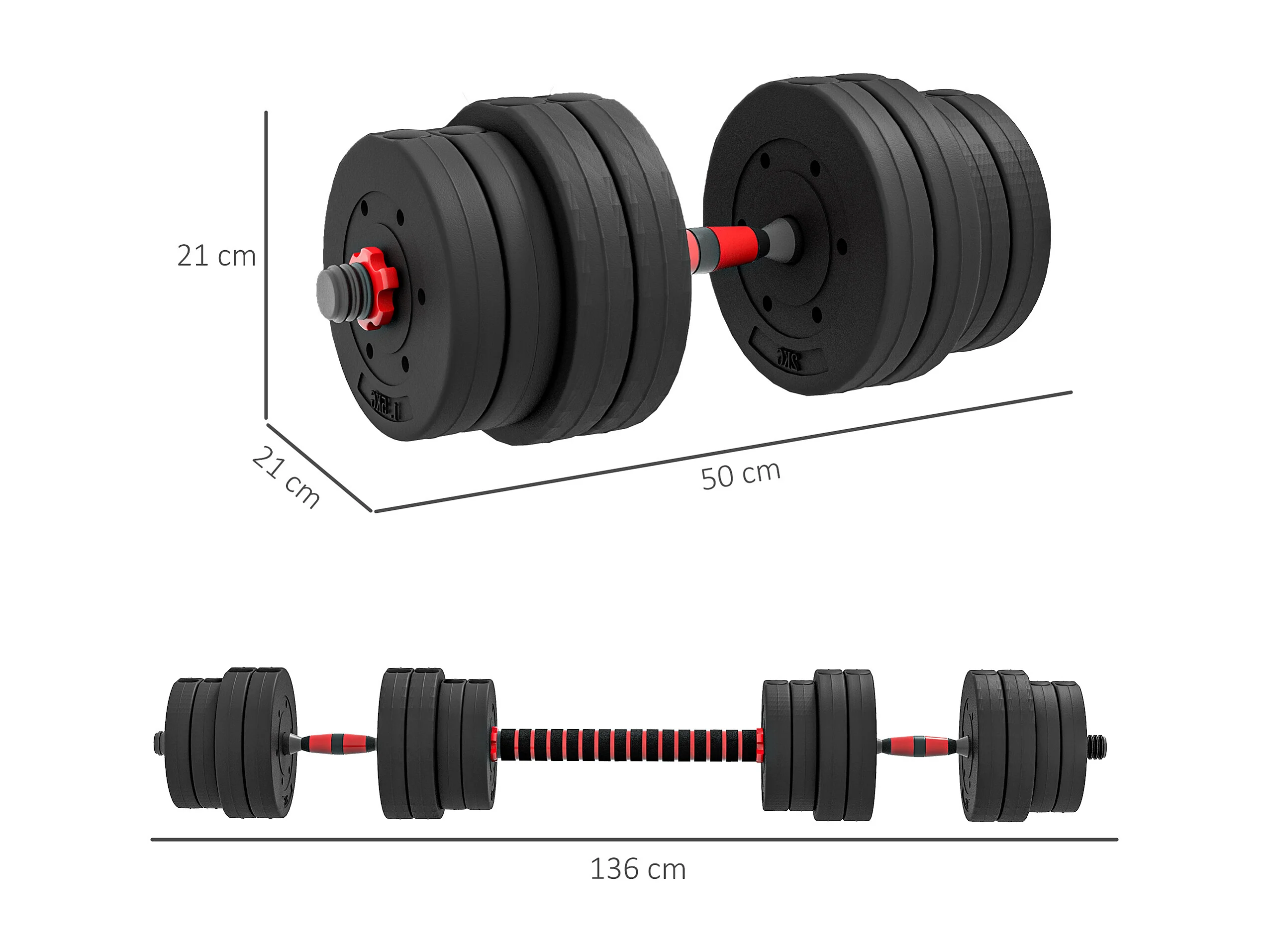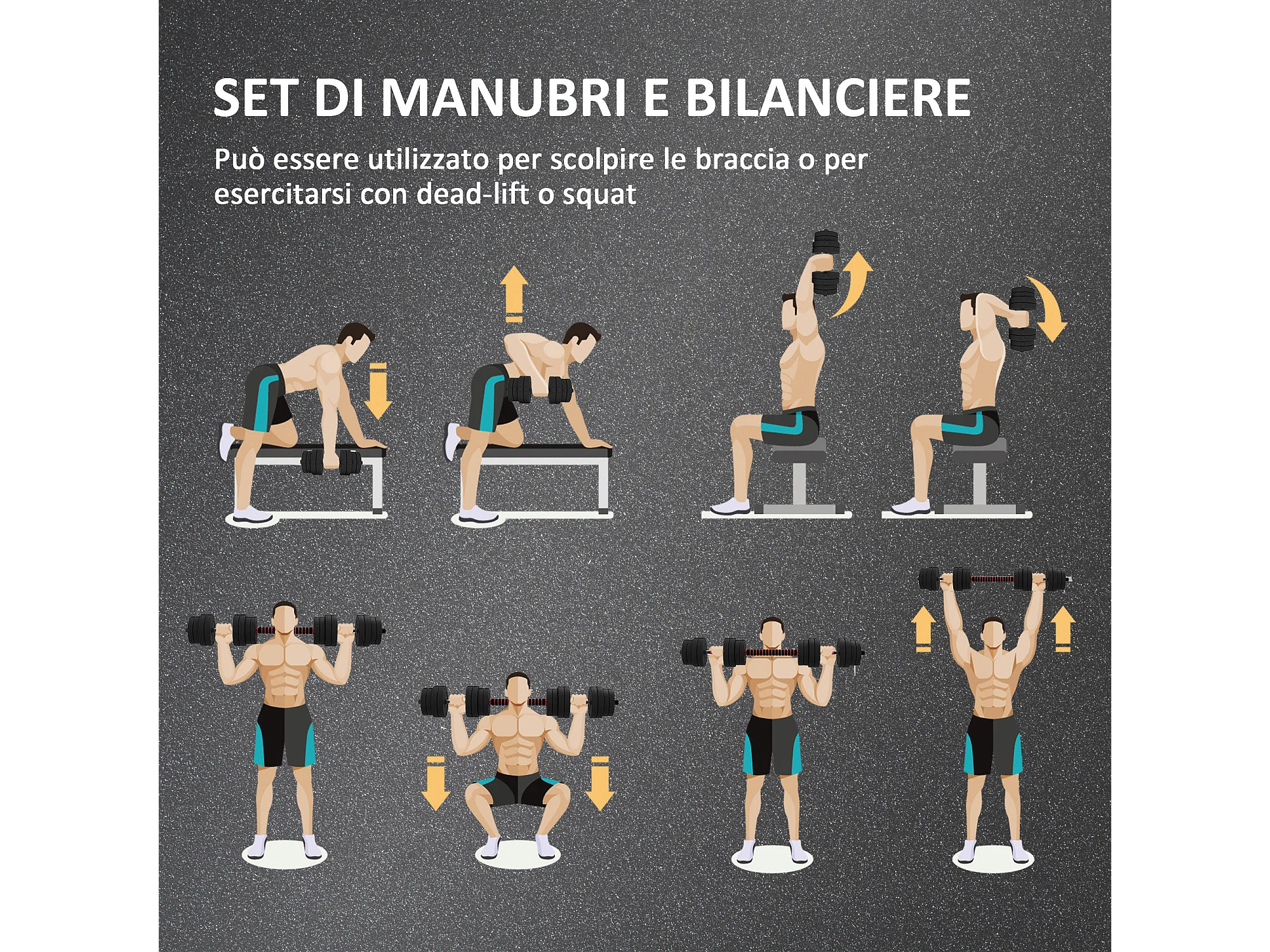 Set 2 manubri con 16 dischi pesi da 30 kg totali e connettore nero