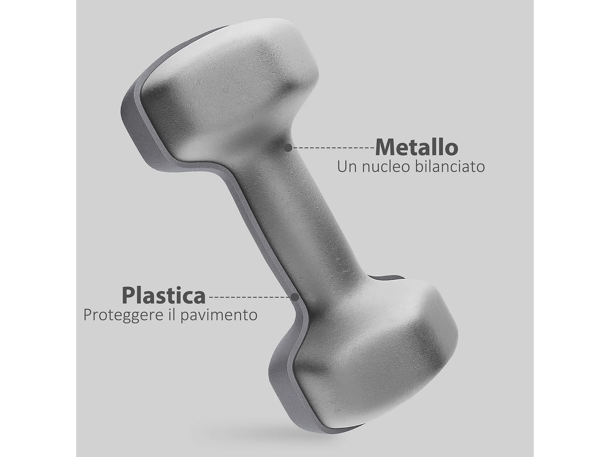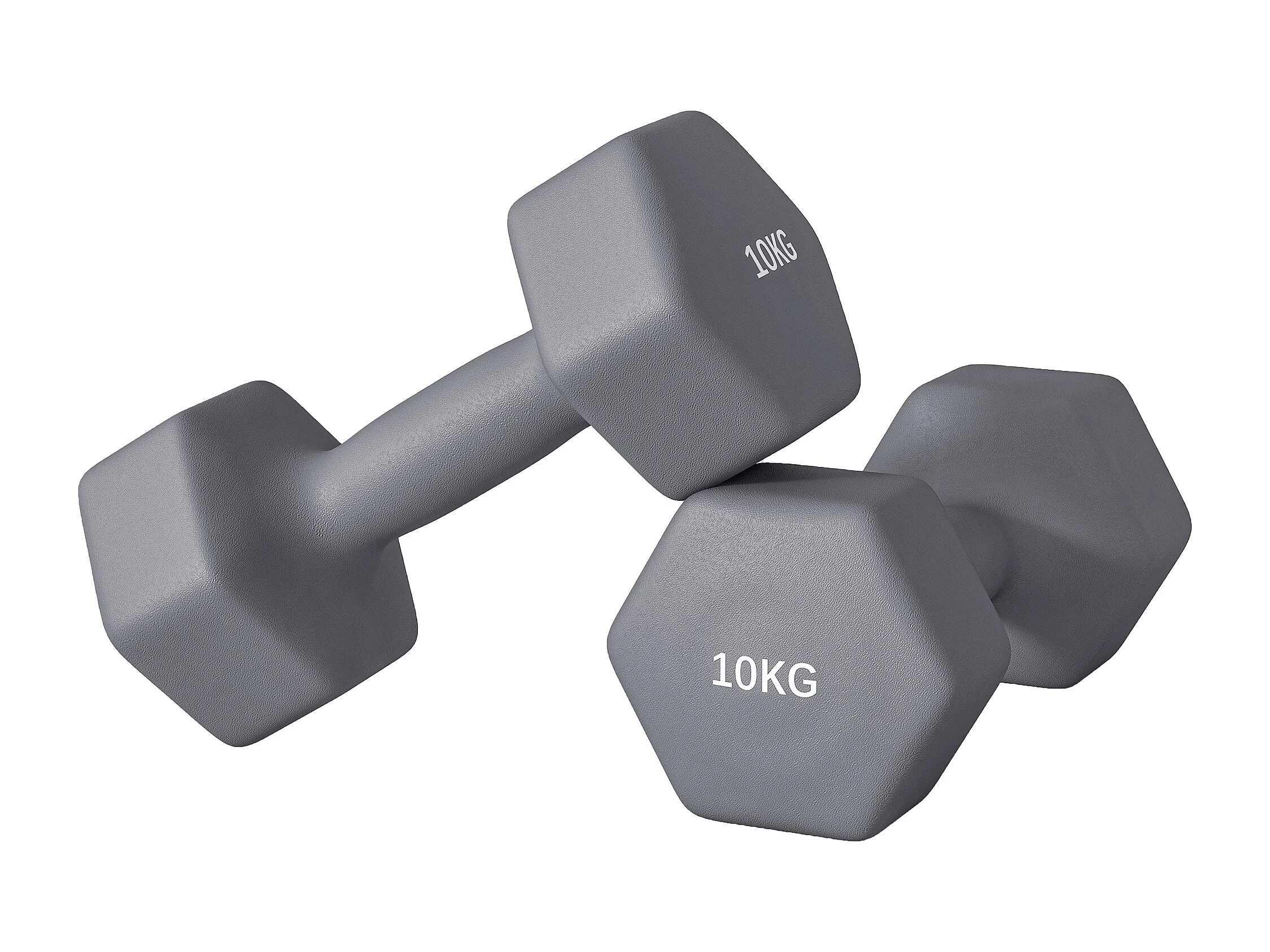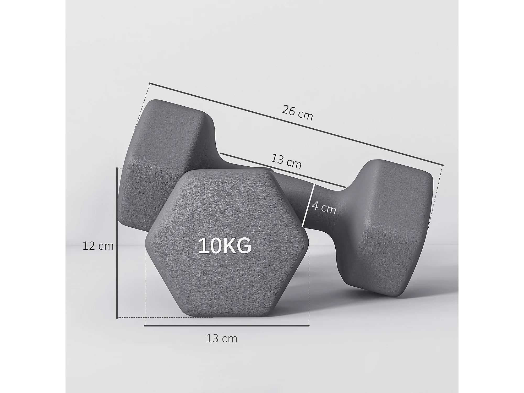 Set 2 manubri esagonali 10 kg in metallo e plastica 26x12x12 cm grigio