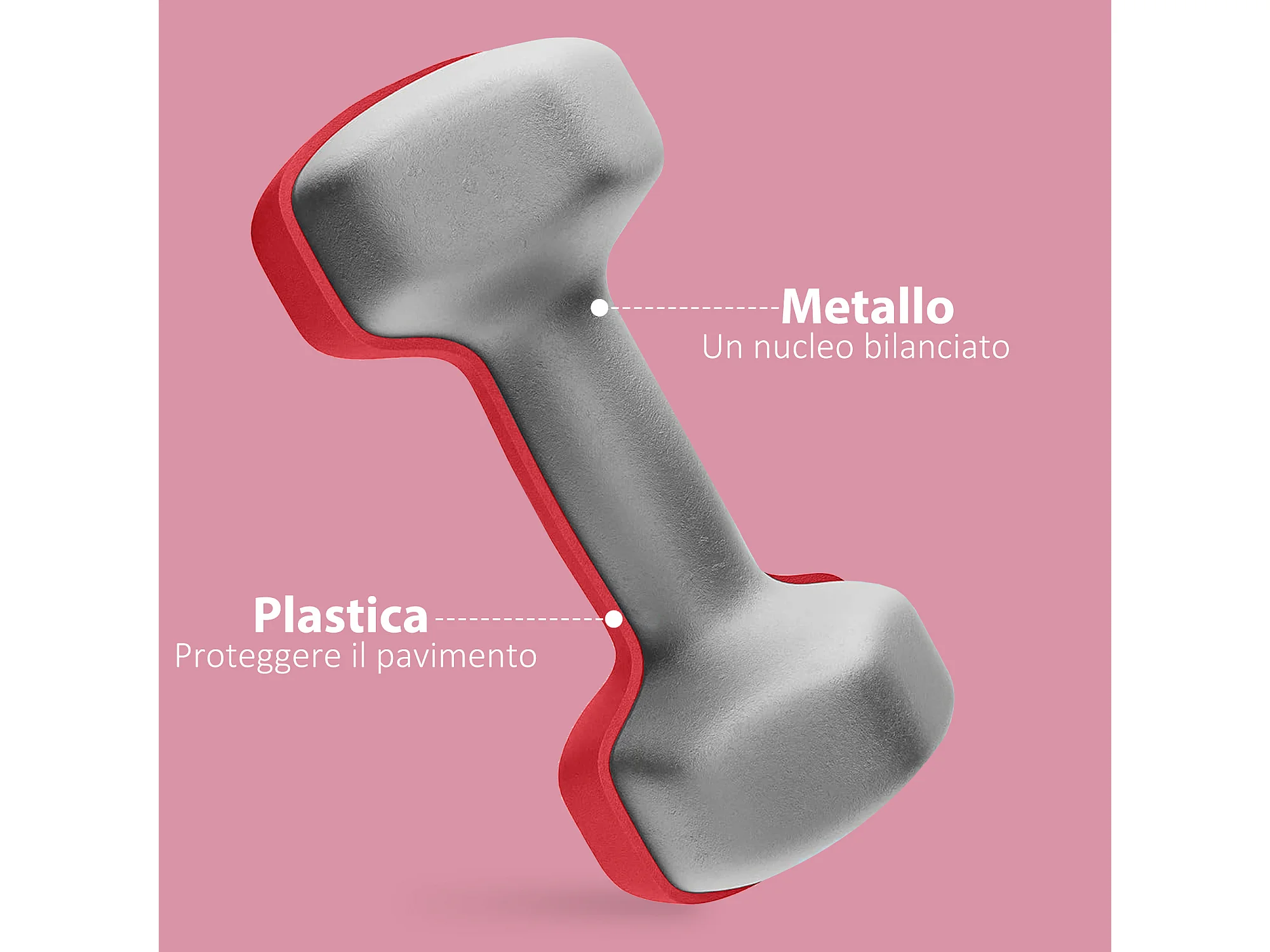 Set di manubri 2 in 1 da 20 kg, in ferro, plastica PP, rosso e nero (21,5x21,5x3,8 cm)
