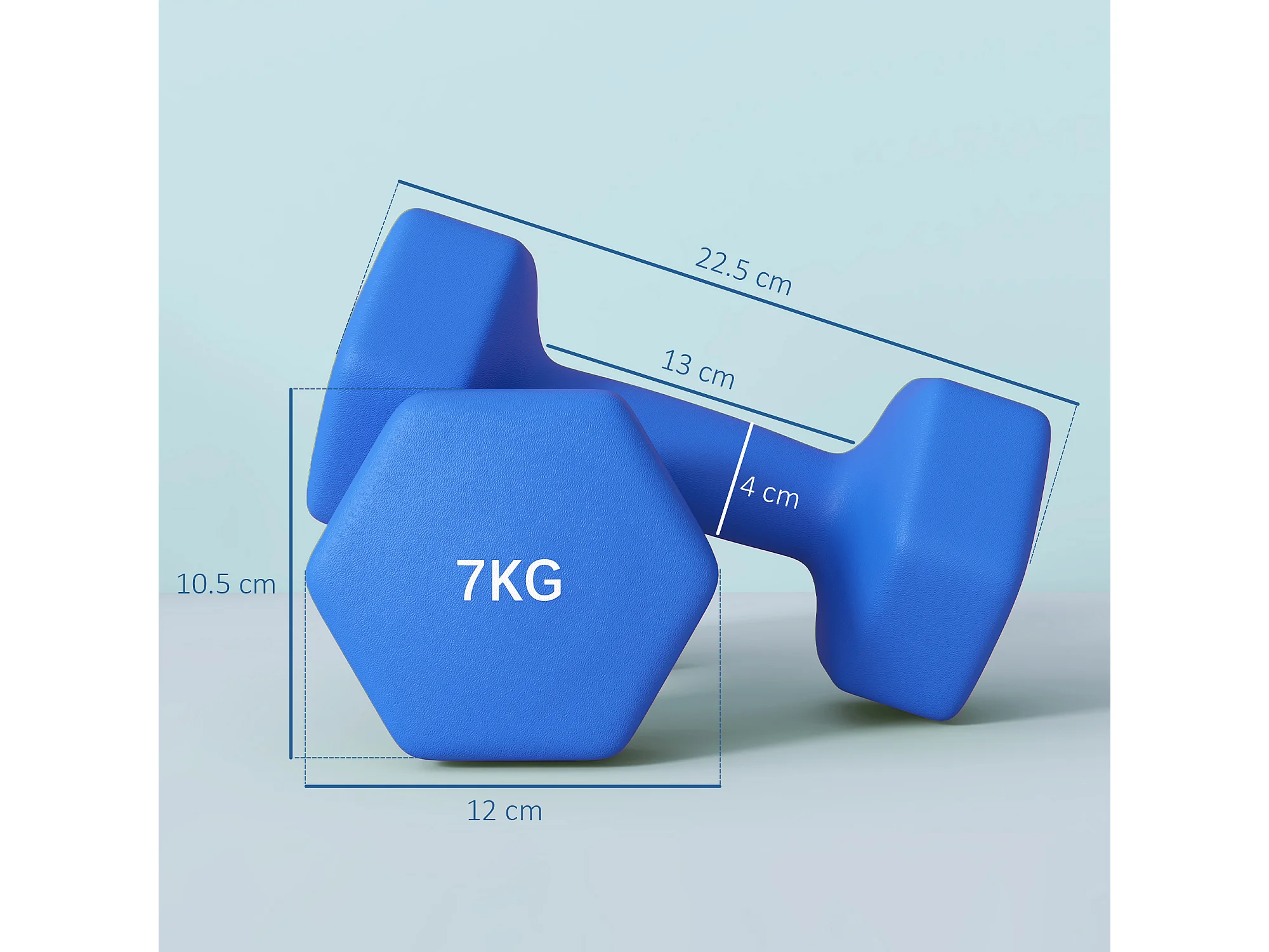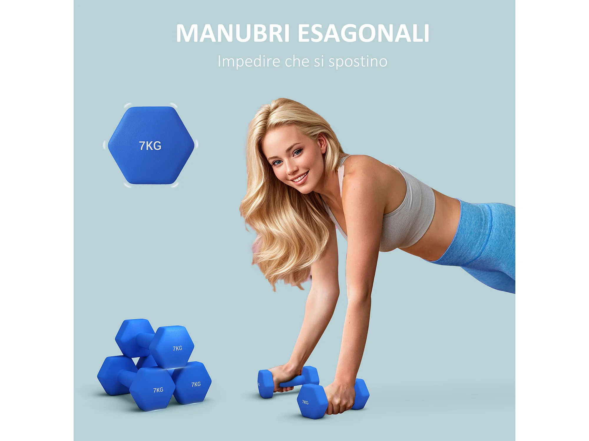 Set 2 manubri esagonali da 2x7kg in metallo e plastica blu